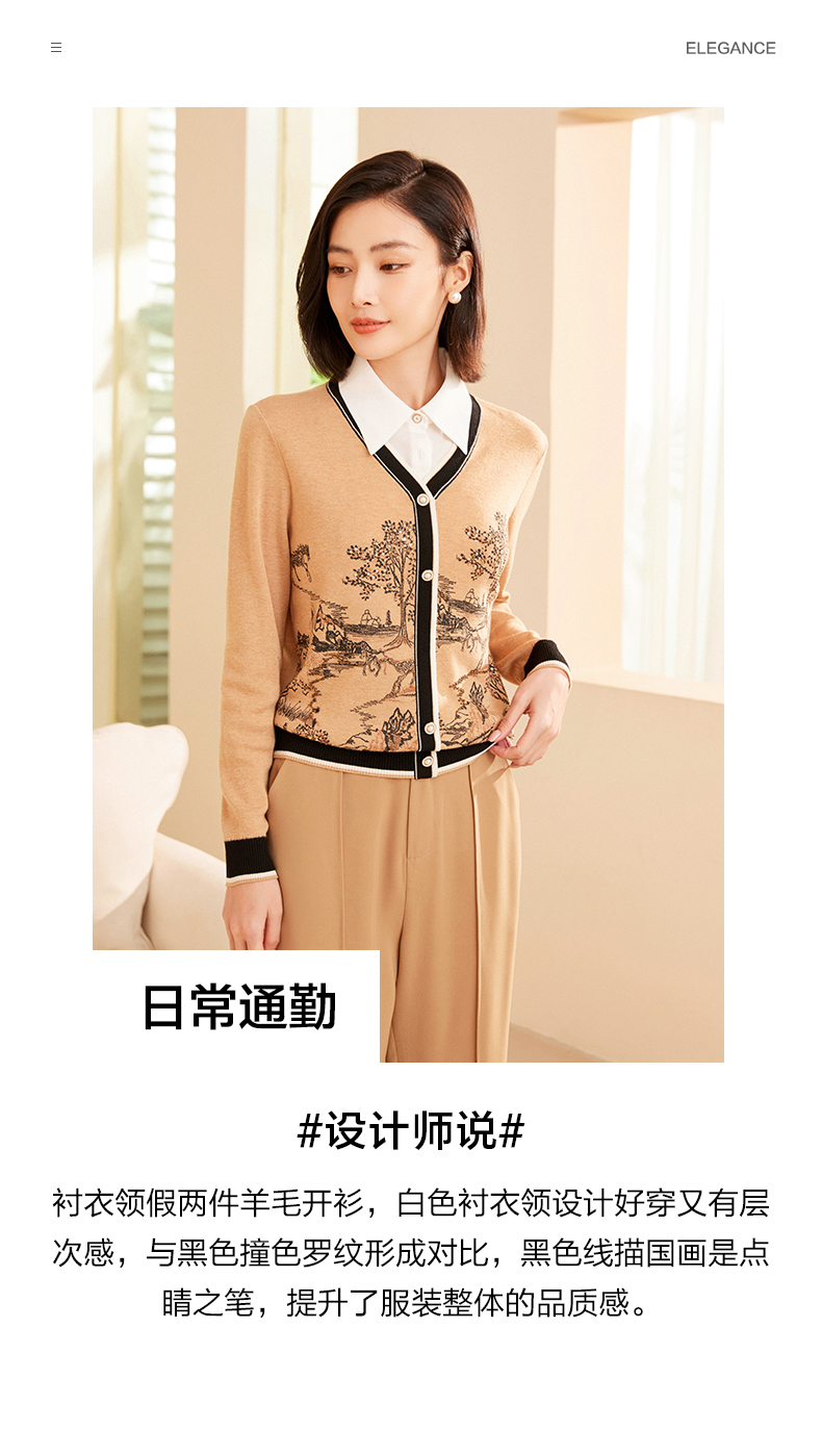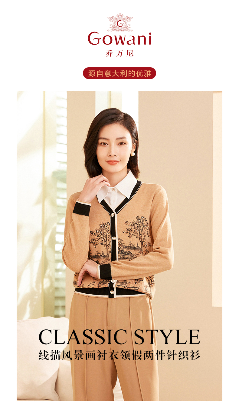 乔万尼针织衫女新款秋款国风设计假两件气质羊毛衫ET3M756