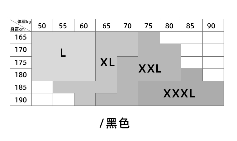 (如165cm50kg以下的,选L码)