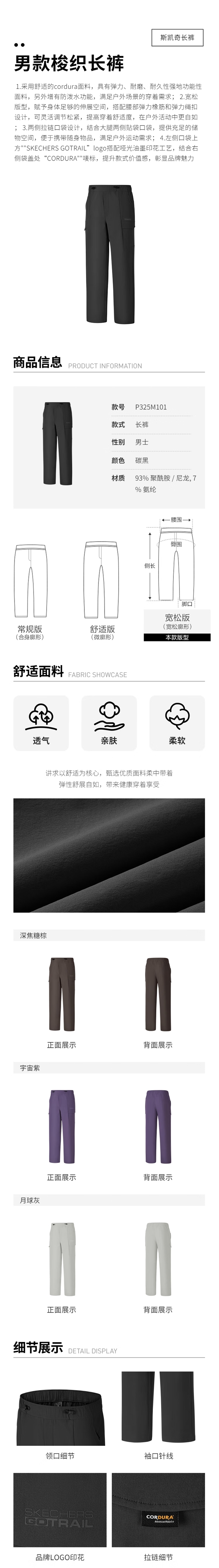 Skechers斯凯奇 男梭织长裤 P325M101-05U5