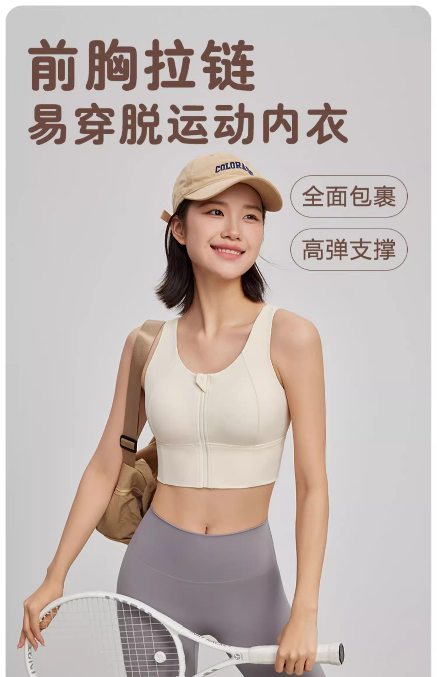 跃牌【轻匀系列】2025高强度前拉链运动内衣女防震防下垂裸感速干瑜伽服背心带胸垫WX407