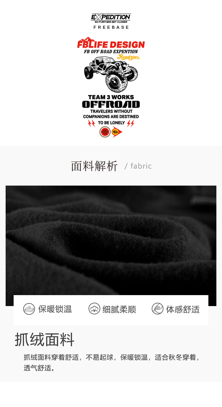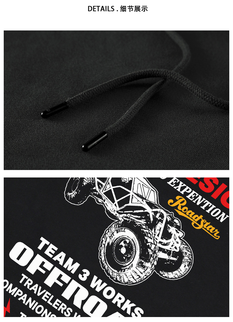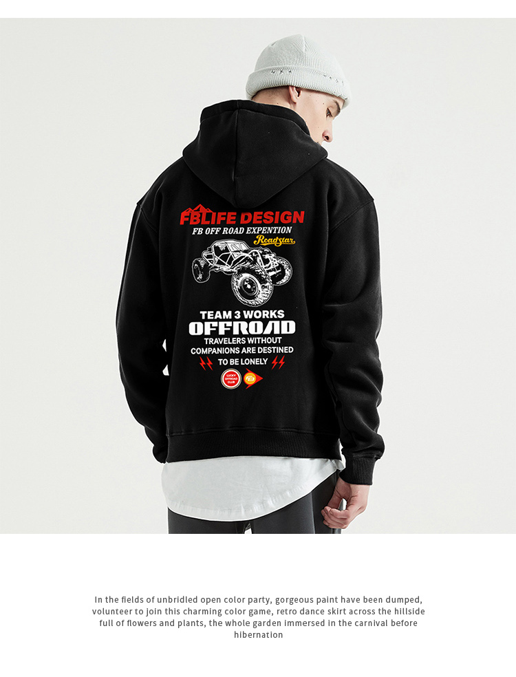 自由基地TEAM3穿越钢管越野车日系美式图案设计潮流落肩抓绒卫衣 NMT-2197