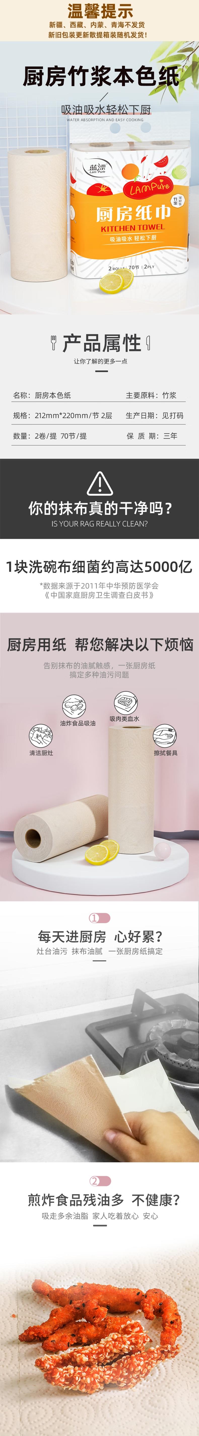 蓝漂 本色厨房卷纸70节2卷*2提 LP02T4J0T