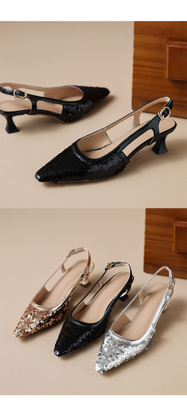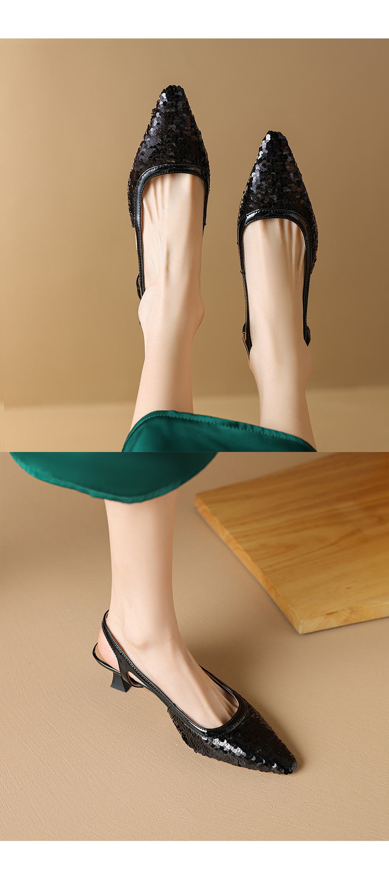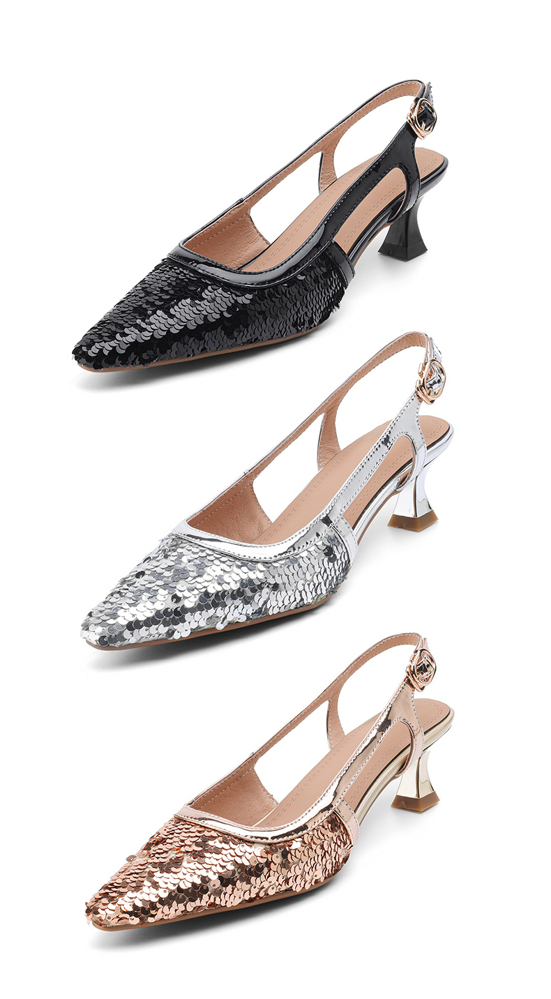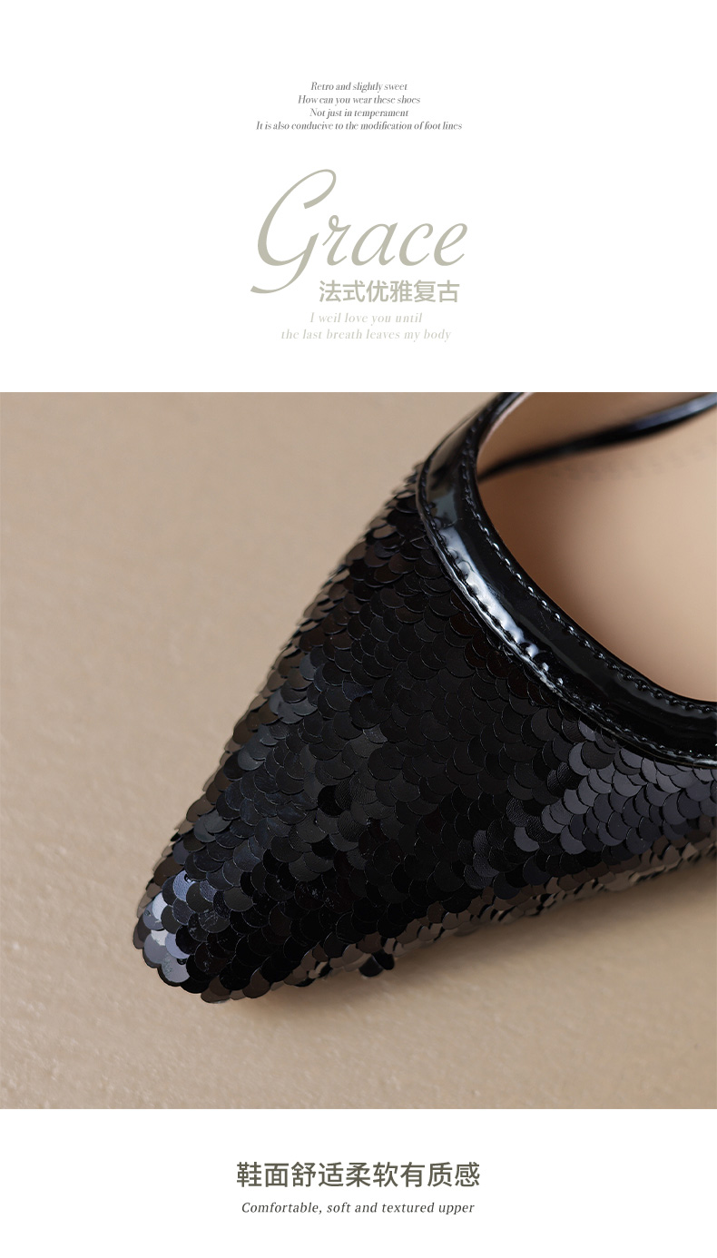 【预售5天】性感百搭,细跟后空珍珠亮片时尚单鞋JBH&24-9