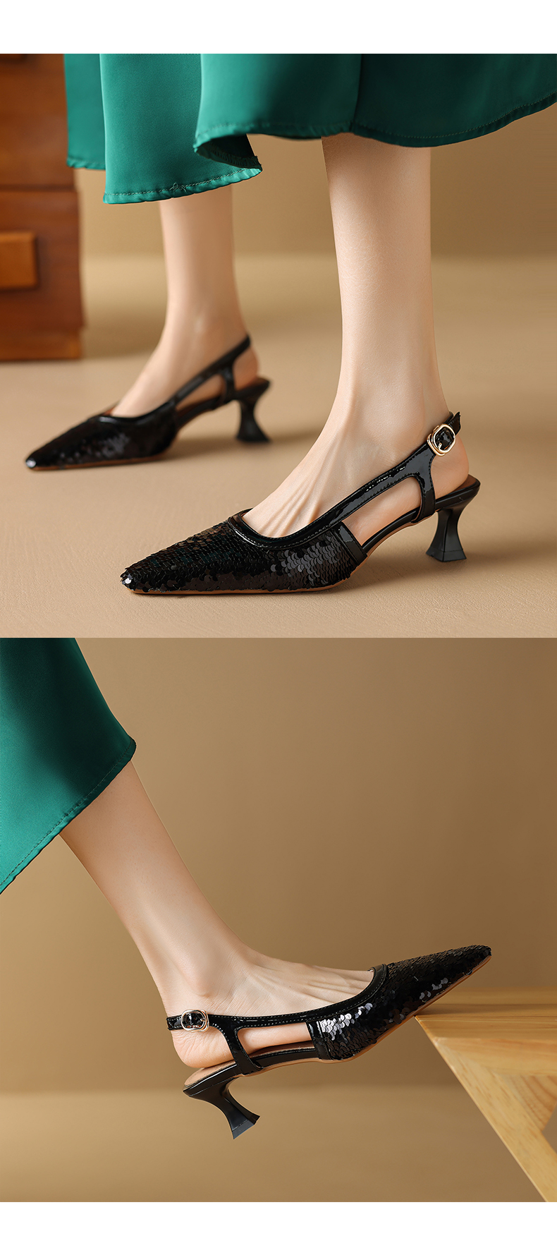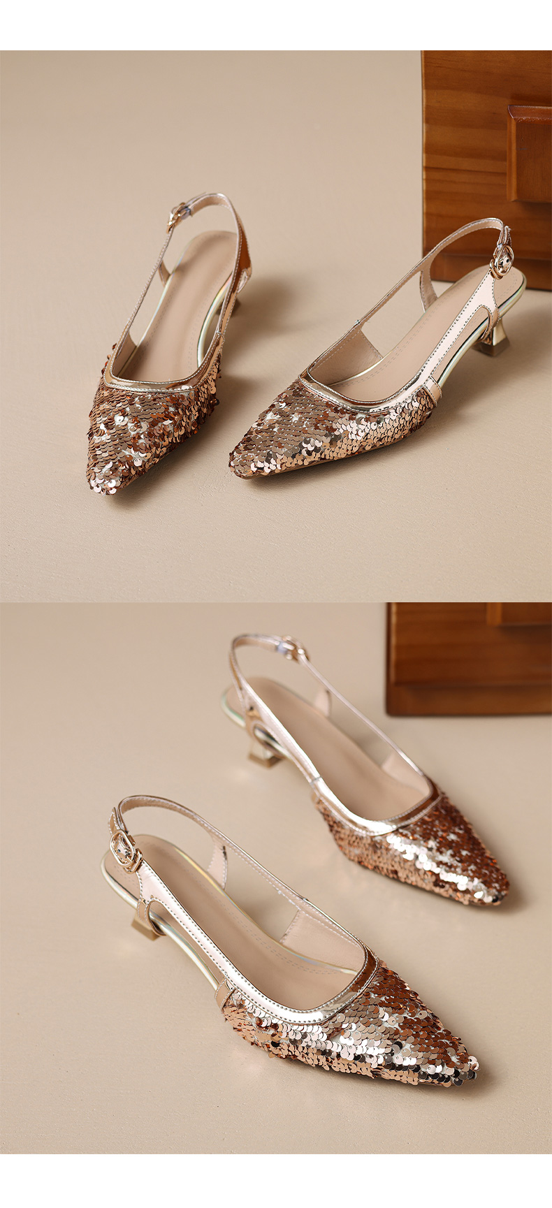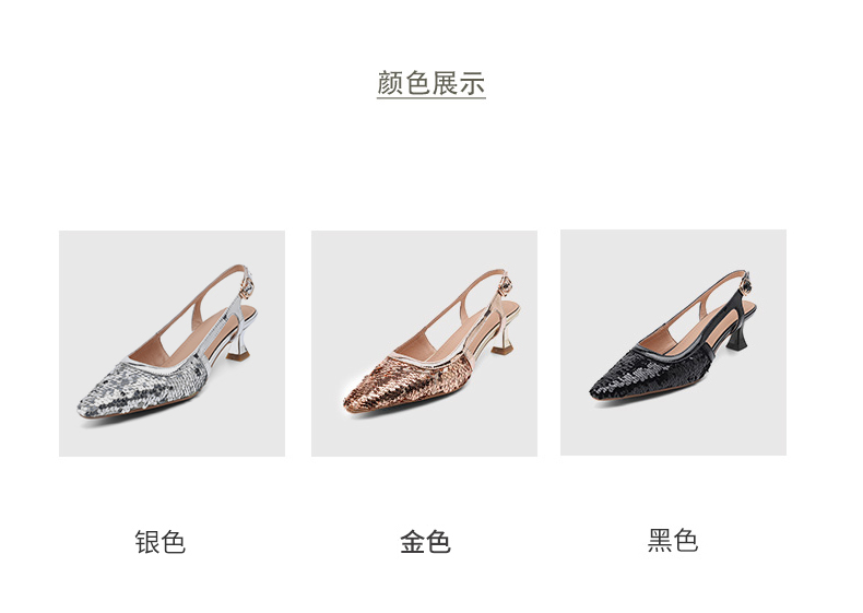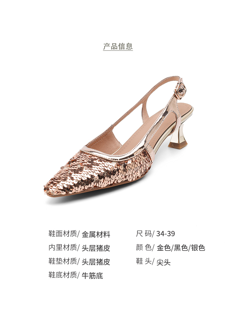 【预售5天】性感百搭,细跟后空珍珠亮片时尚单鞋JBH&24-9