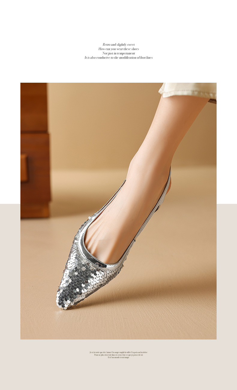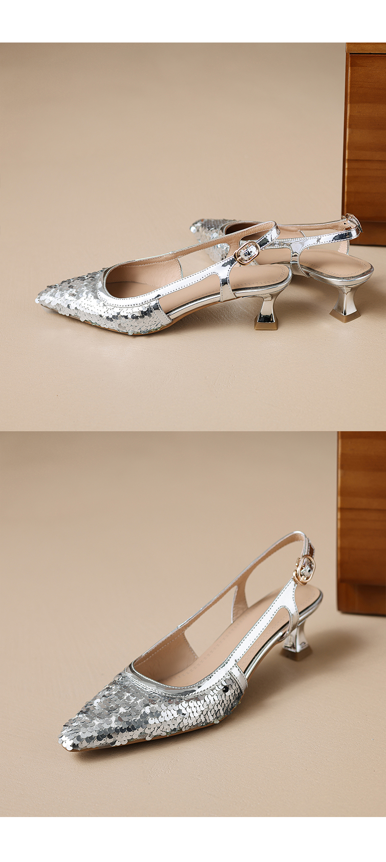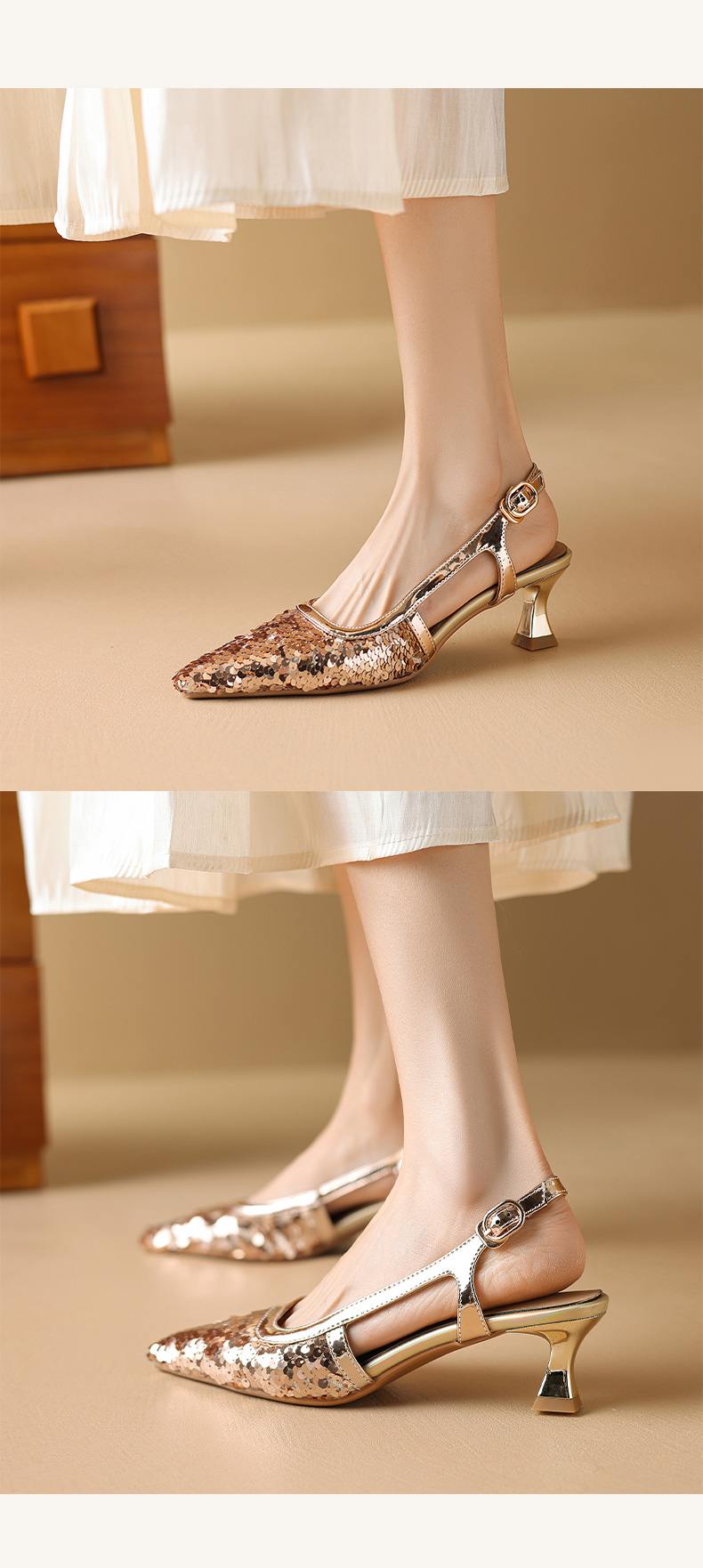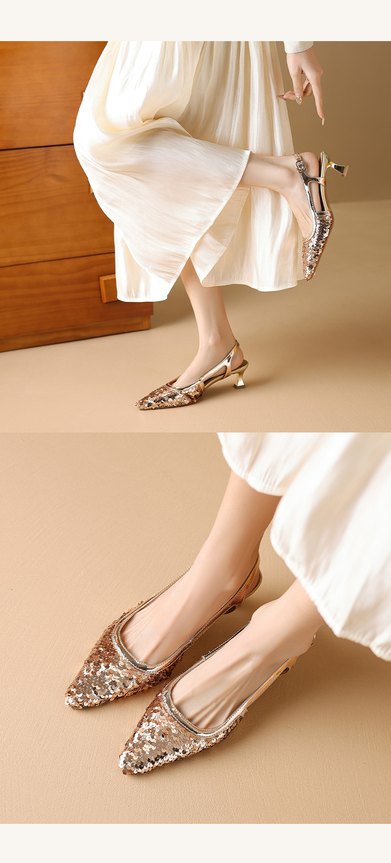 【预售5天】性感百搭,细跟后空珍珠亮片时尚单鞋JBH&24-9