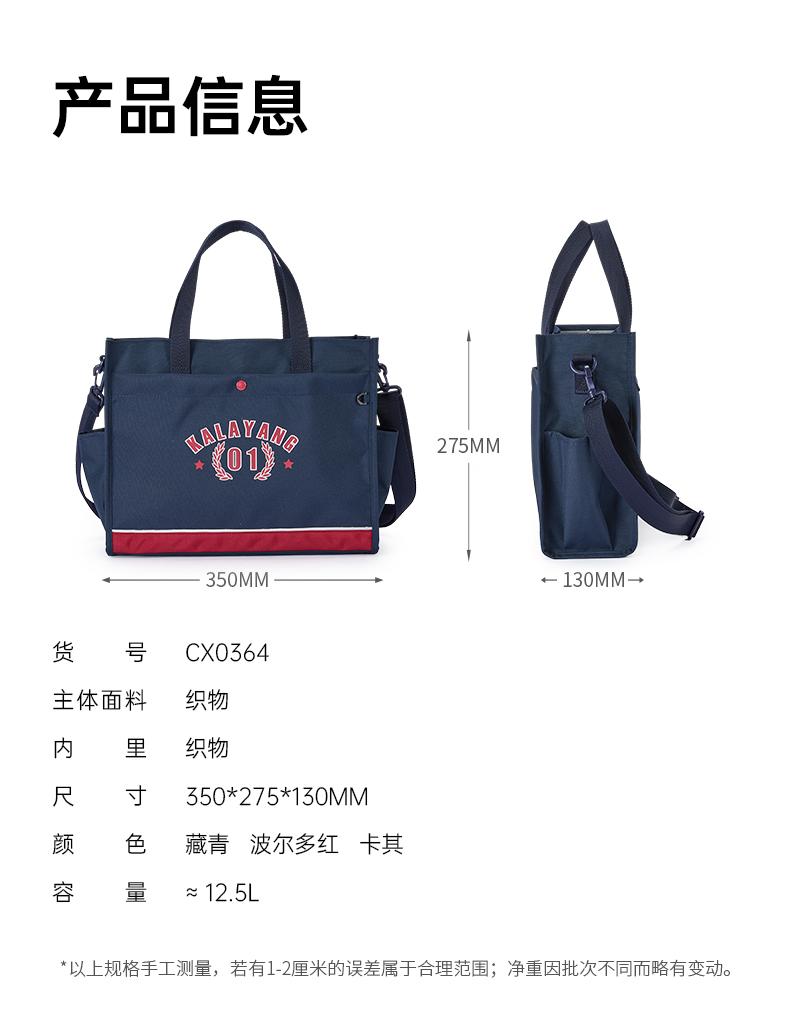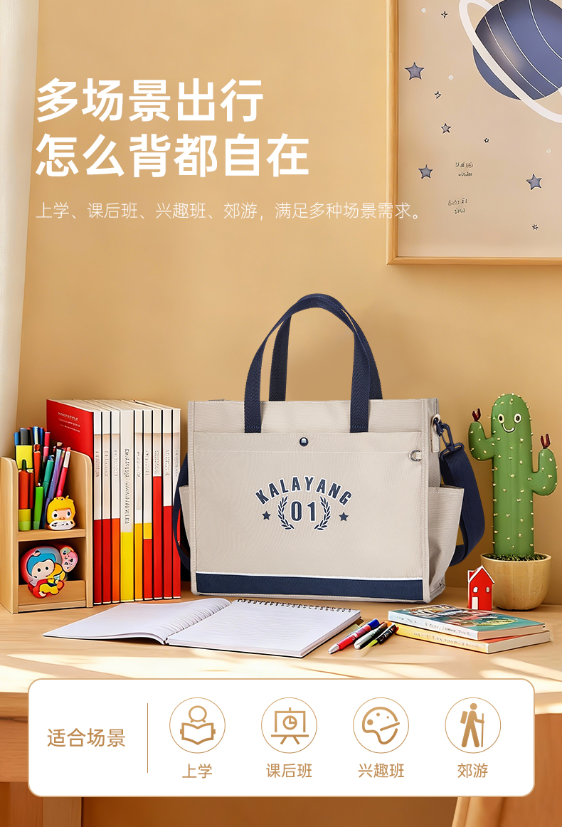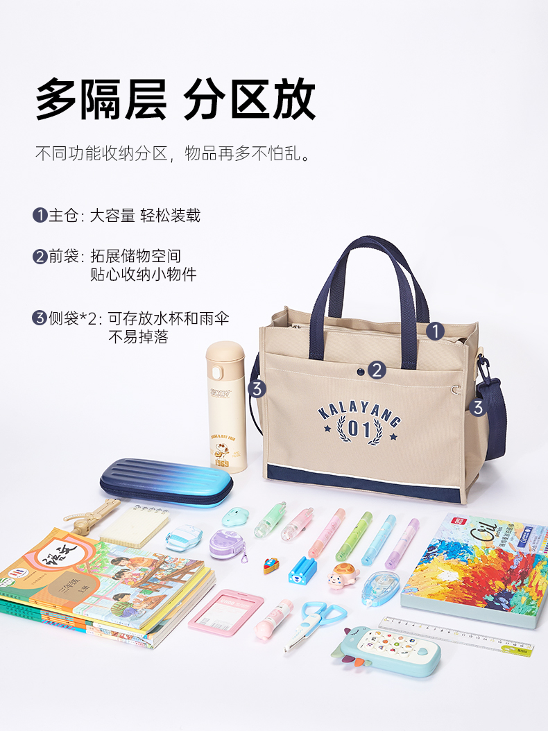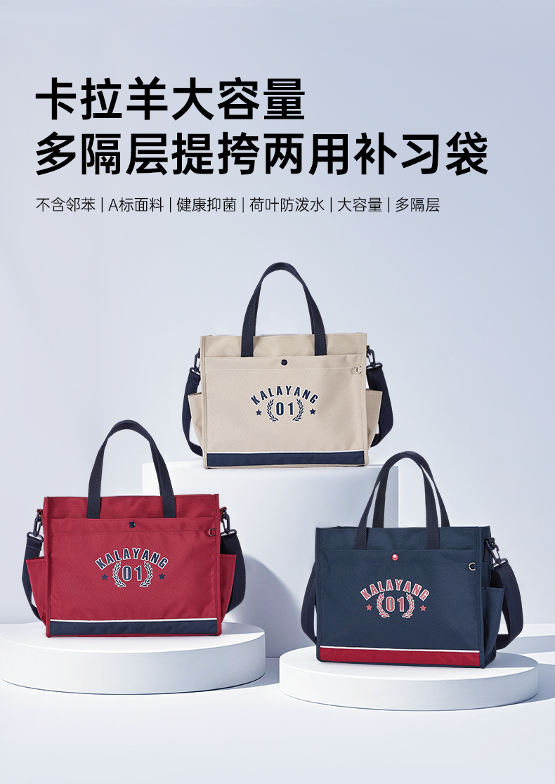 卡拉羊大容量多隔层提胯两用补习袋学生课外补课袋乐天派系列 CX0364