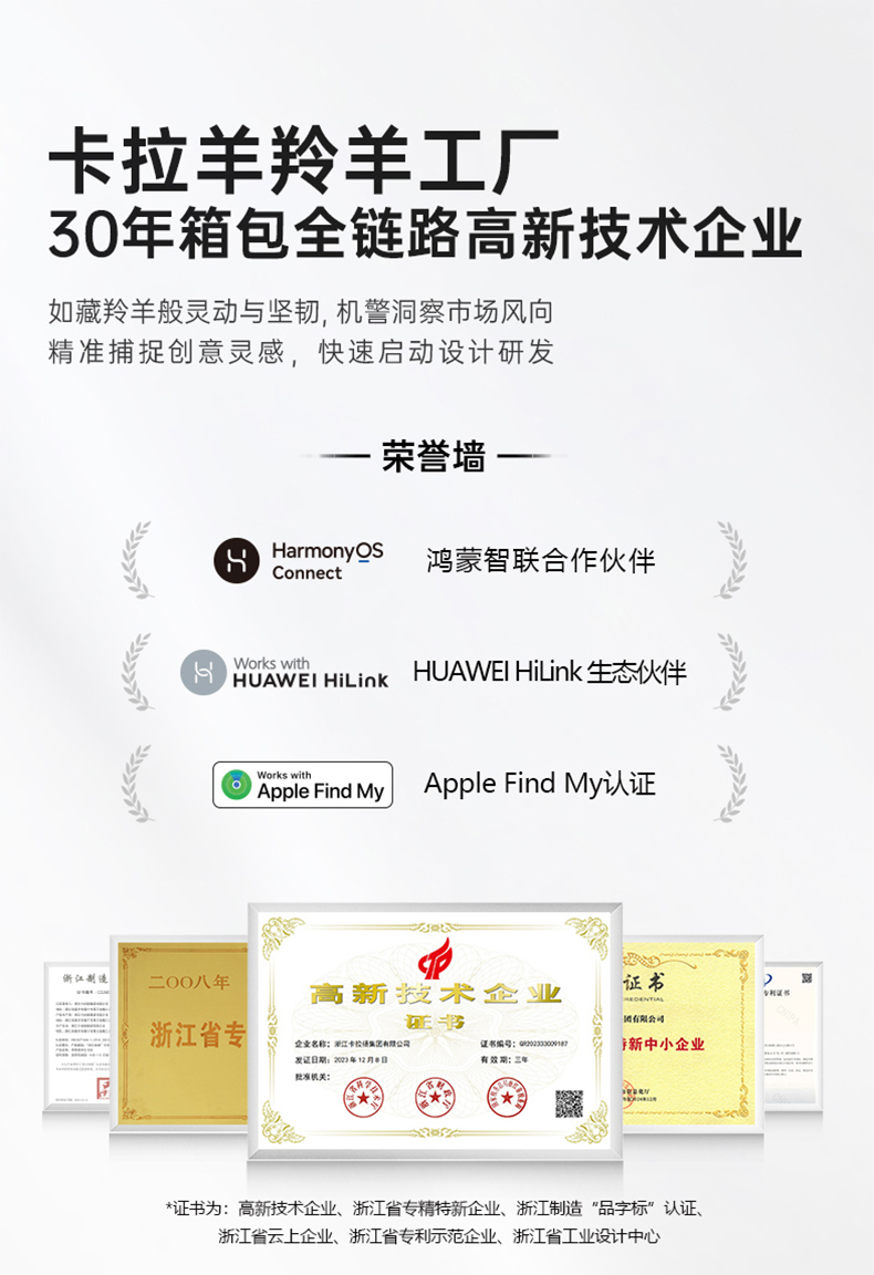 - 浙江卡拉扬集团有限公司专注箱包27年,旗下有卡拉羊和9UM两大品牌,有浙江海宁和江苏沭阳两大工厂,拥有多项知识产权,是集智能化、设计生产、品牌营销为一体的综合型企业。
