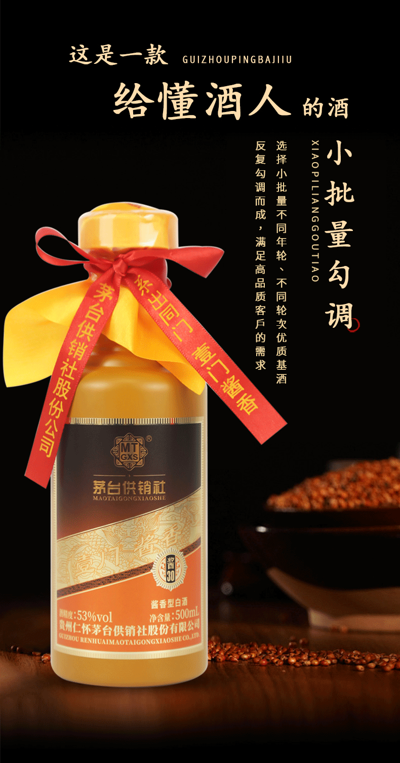 疯抢中!!【送高端礼盒】【茅台供销社·酱30】茅香口感 53度酱香型白酒 500ml*2瓶/送手提礼袋