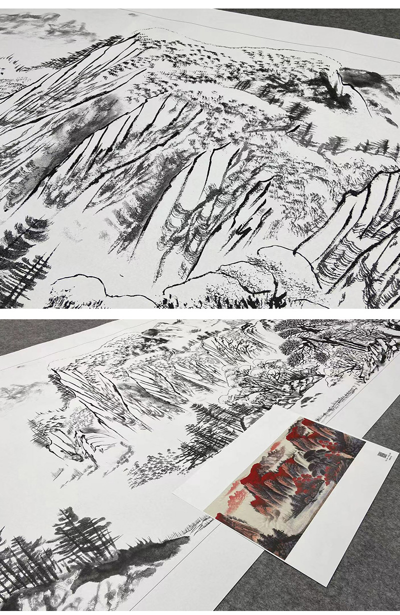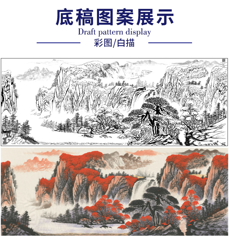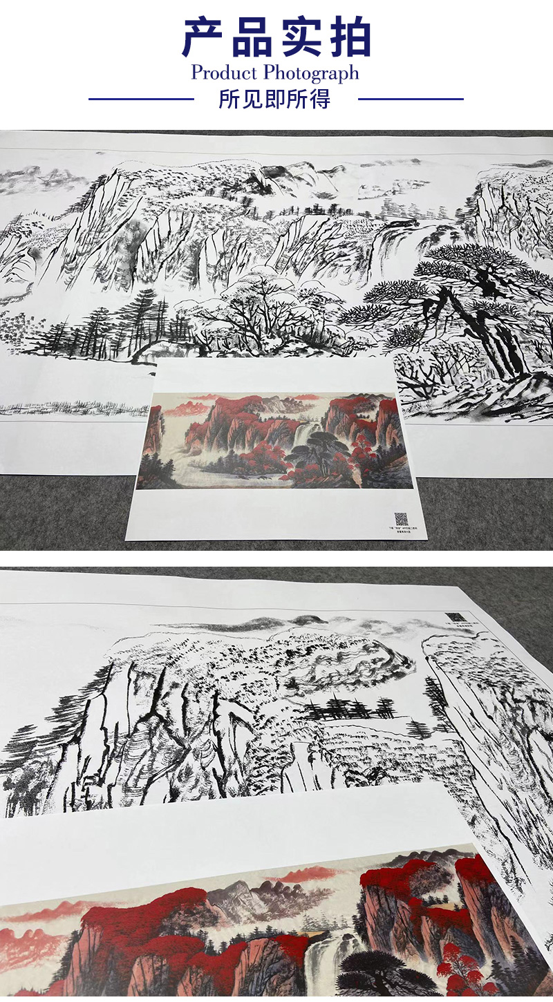 【大彩图】横幅工笔画白描底稿《鸿运当头》临摹勾线山水底稿FS08