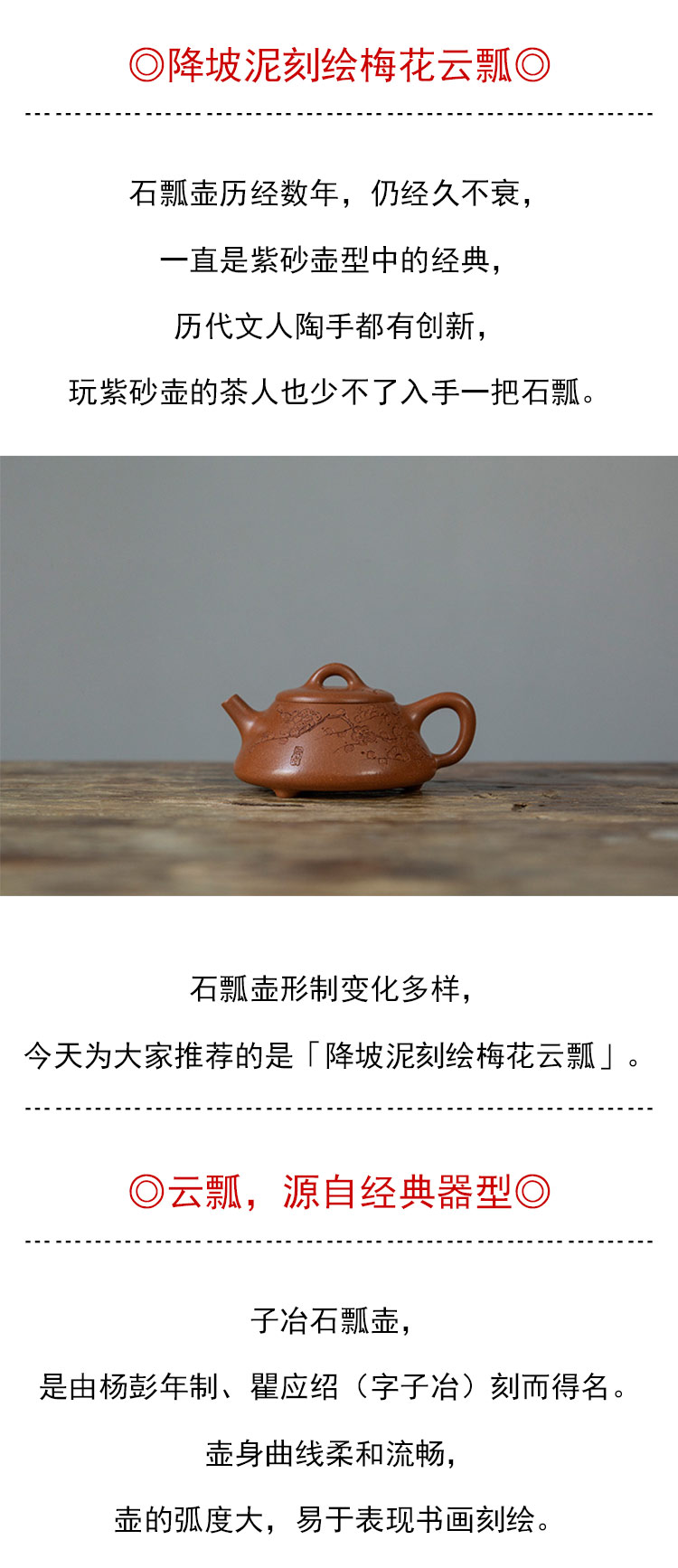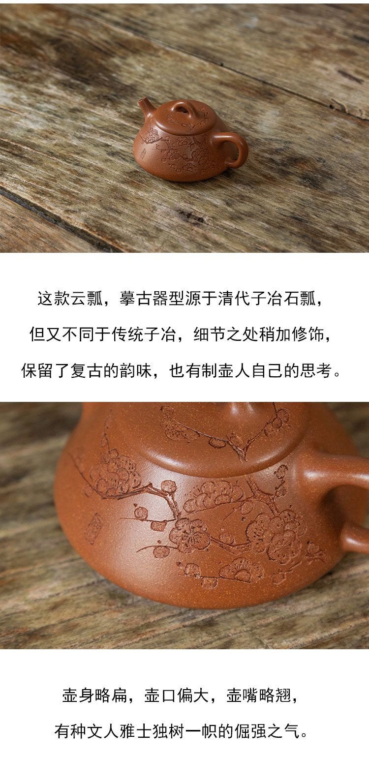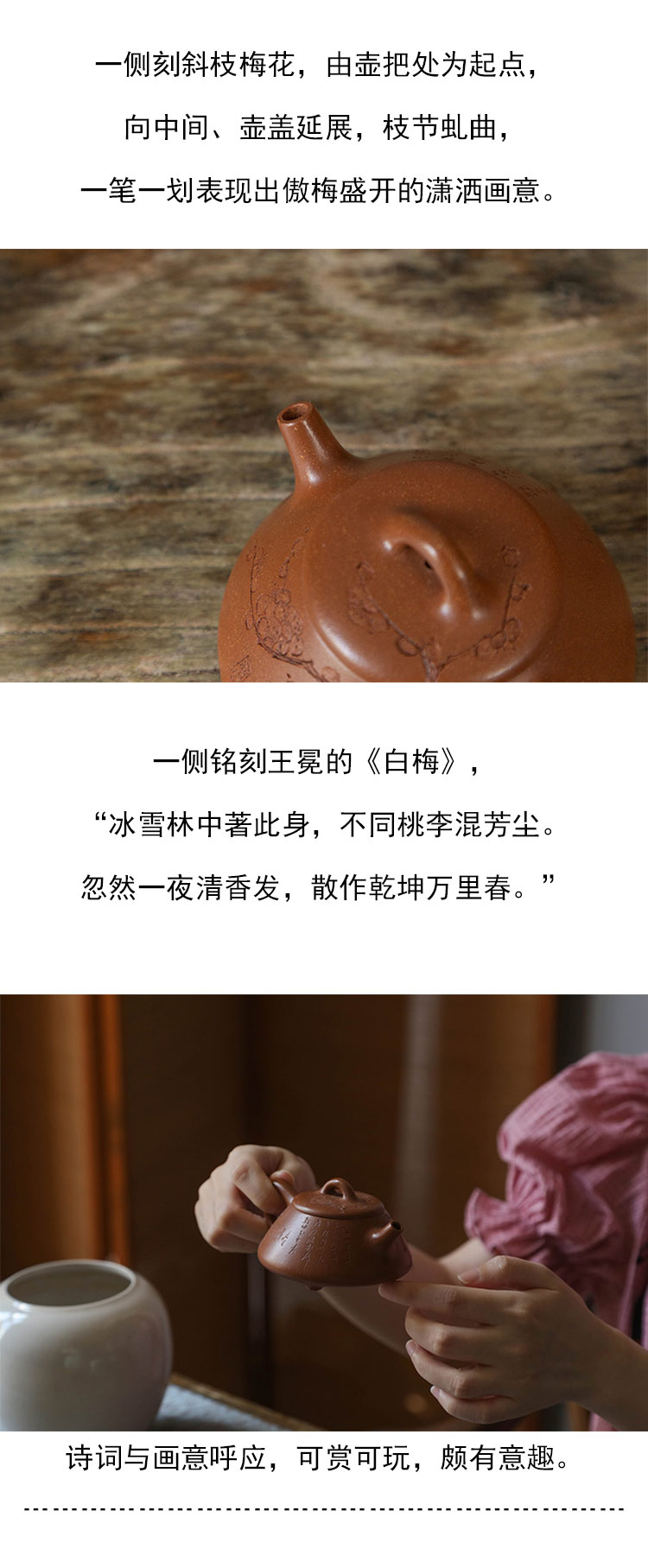 茶香记 紫砂壶 降坡泥刻绘 茶壶 梅花云瓢 经典器型 手工刻绘 诗情画意