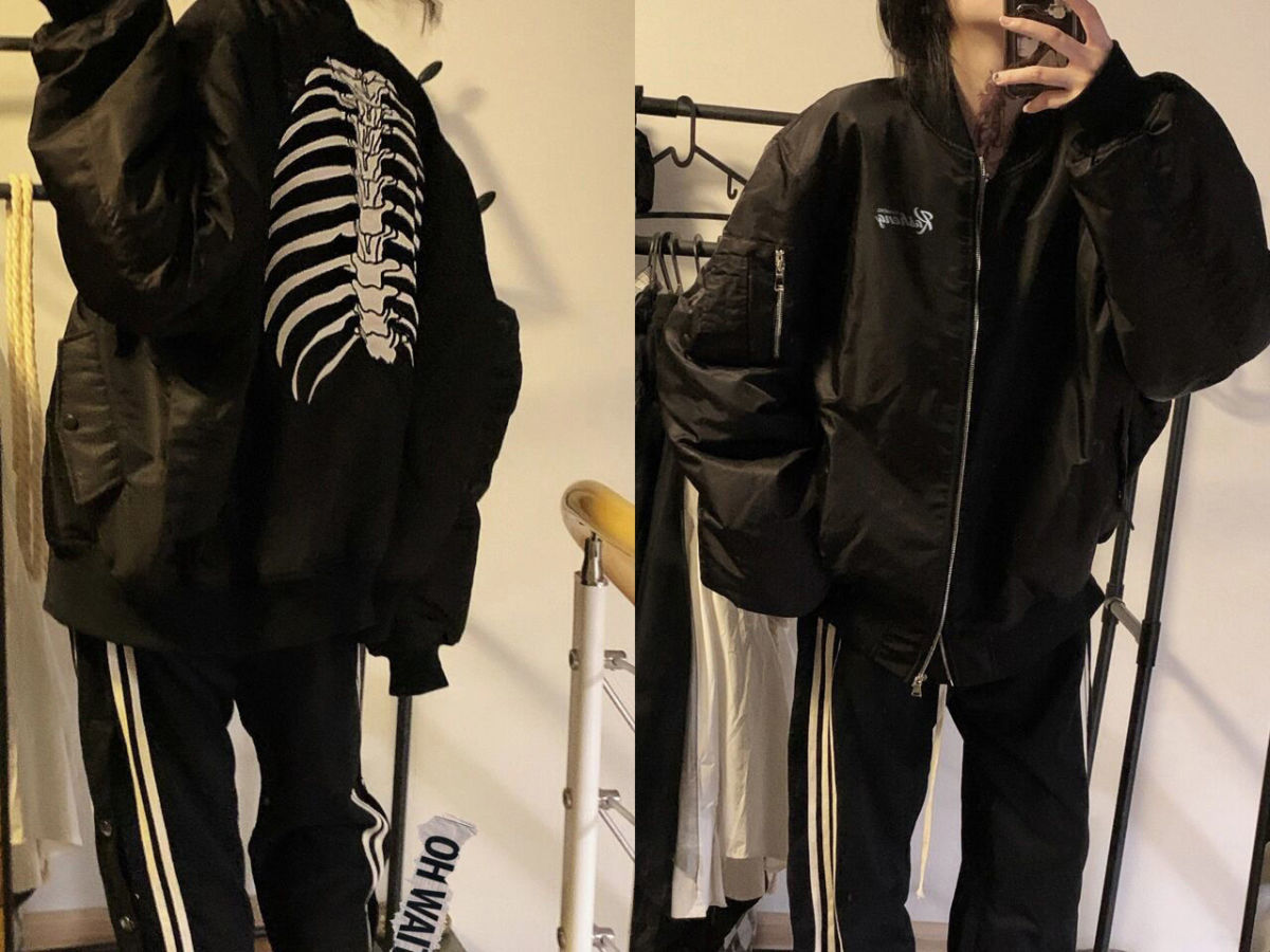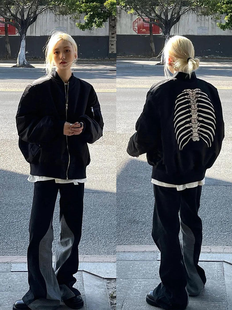 情侣飞行服重工刺绣骨架廓形夹克MA1暗黑风百搭宽松机车外套