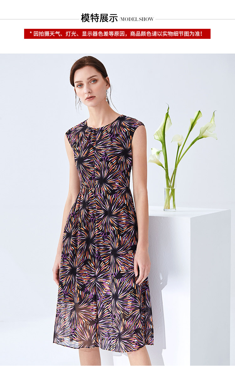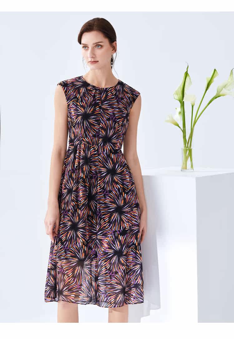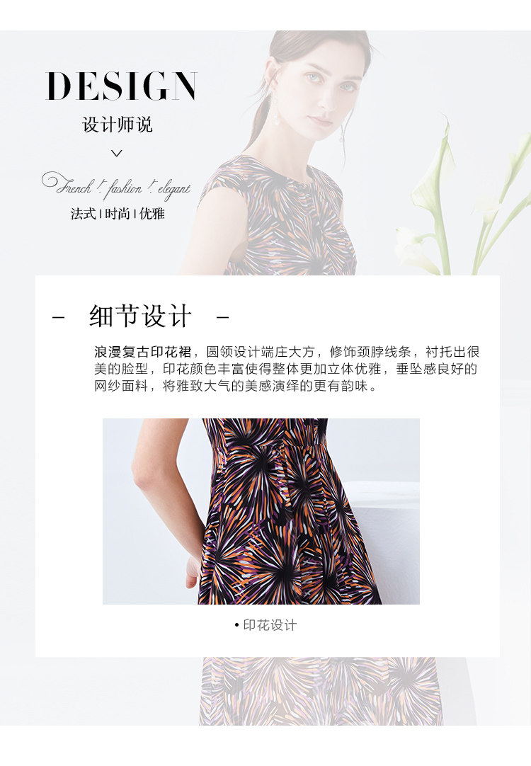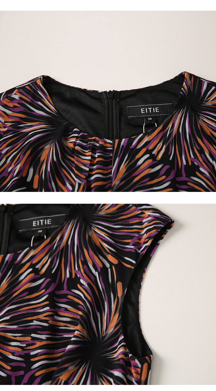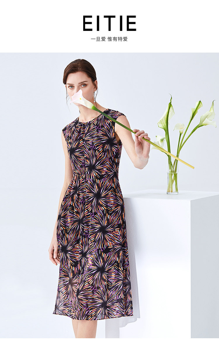 EITIE爱特爱夏季新款时尚减龄包肩袖收腰印花连衣裙女裙5907650