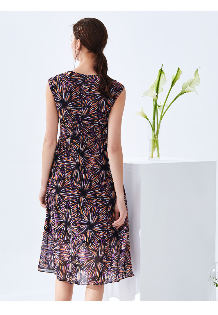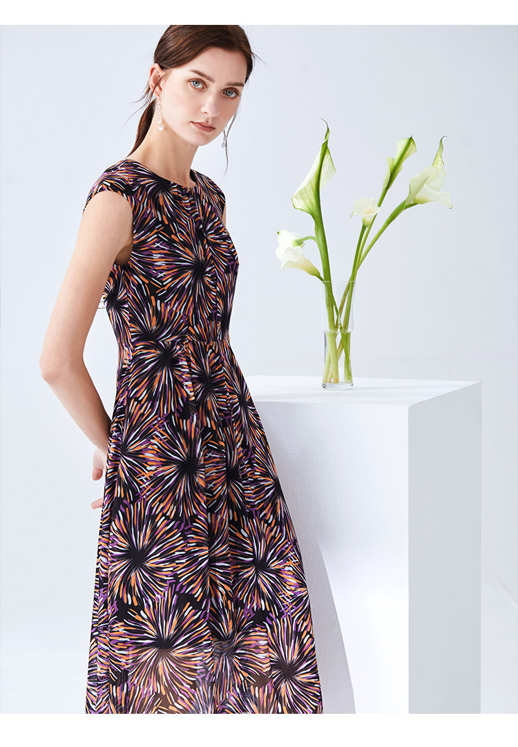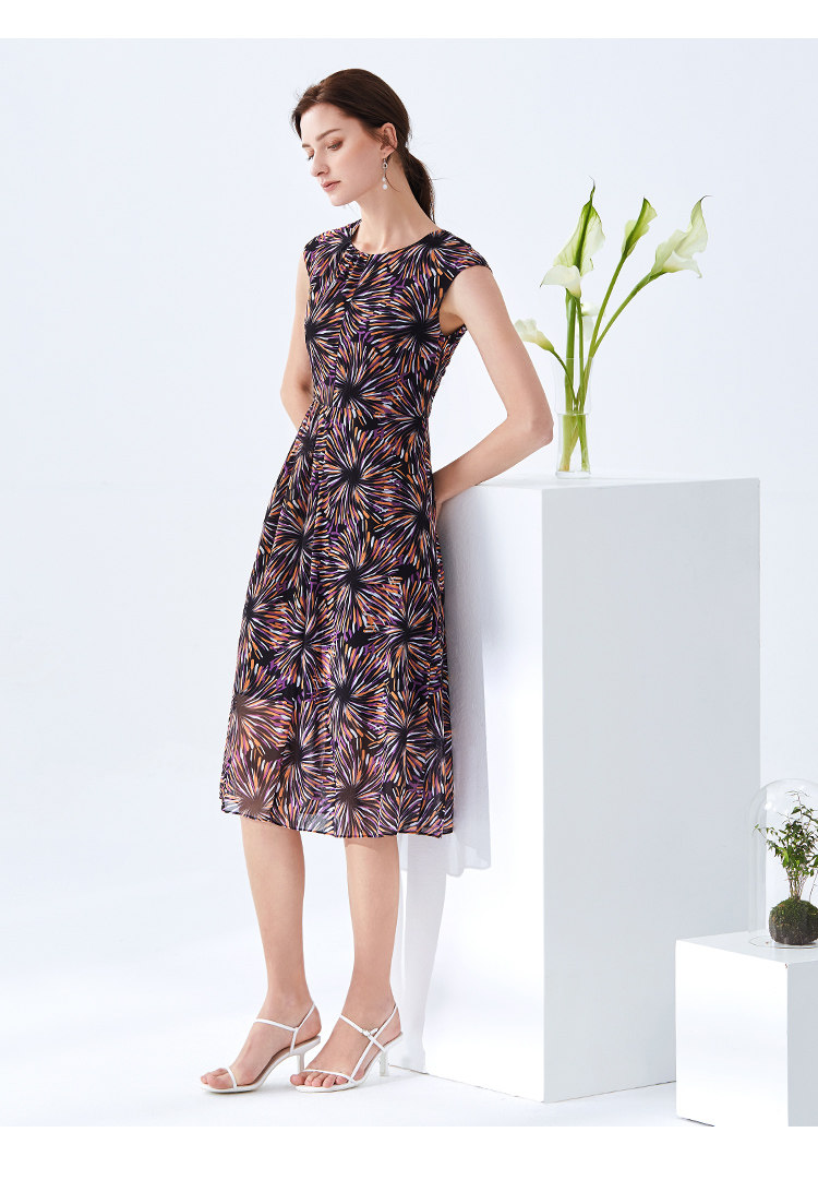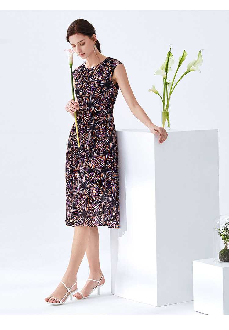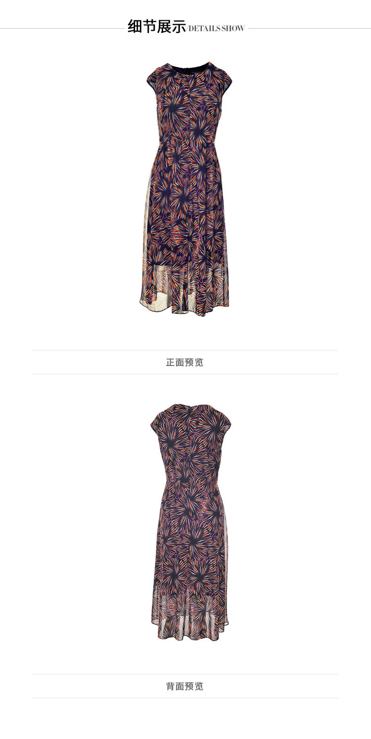 EITIE爱特爱夏季新款时尚减龄包肩袖收腰印花连衣裙女裙5907650