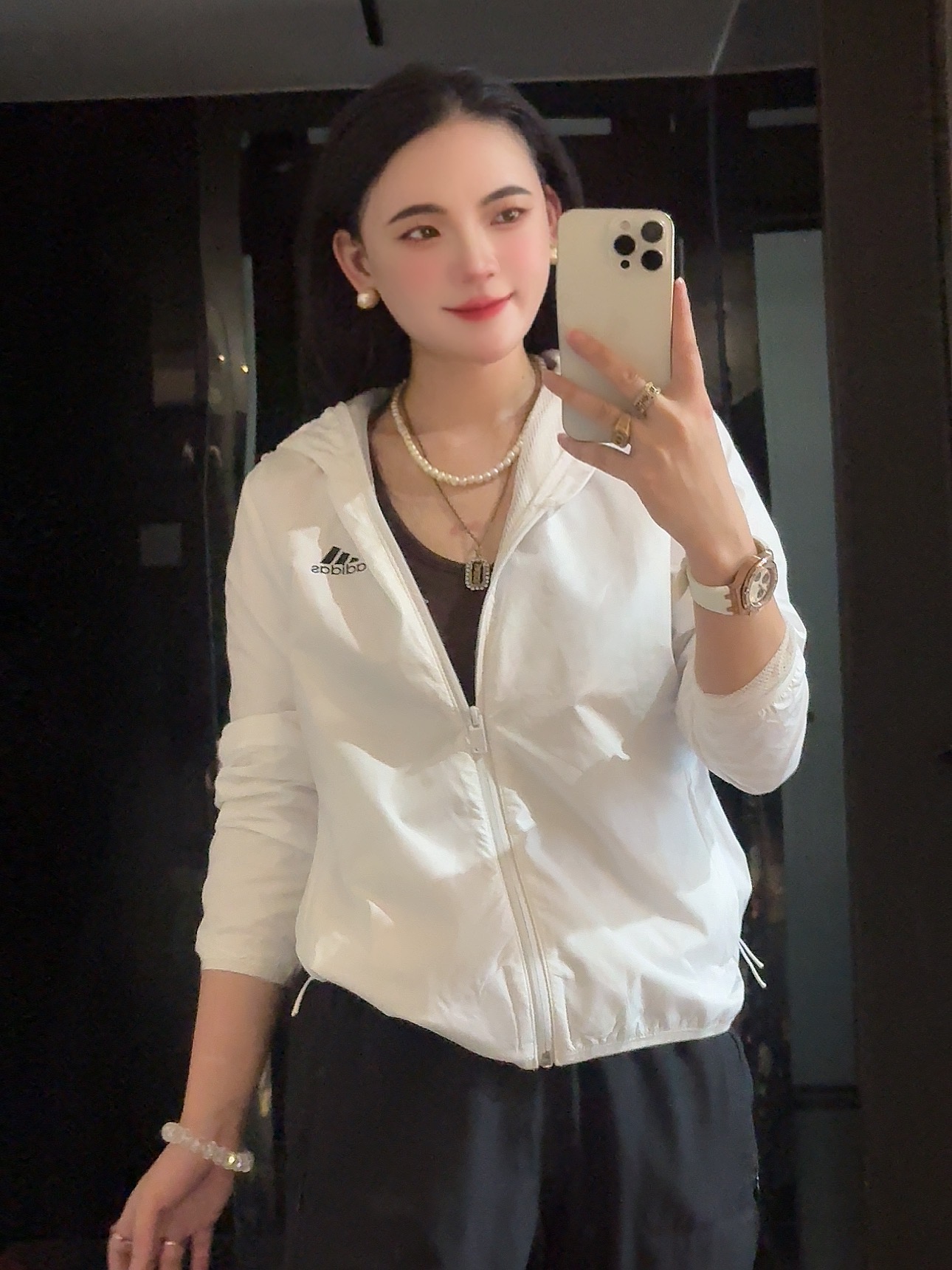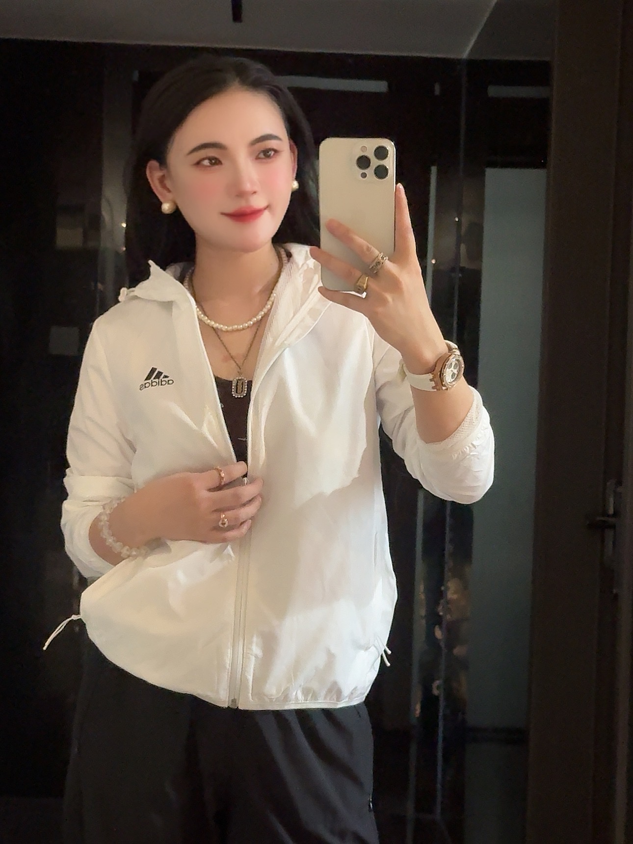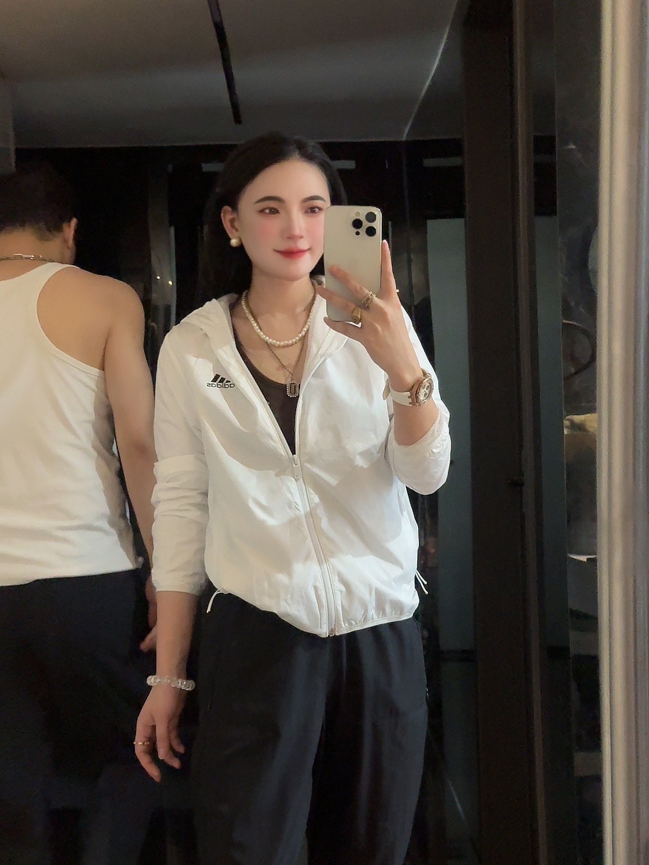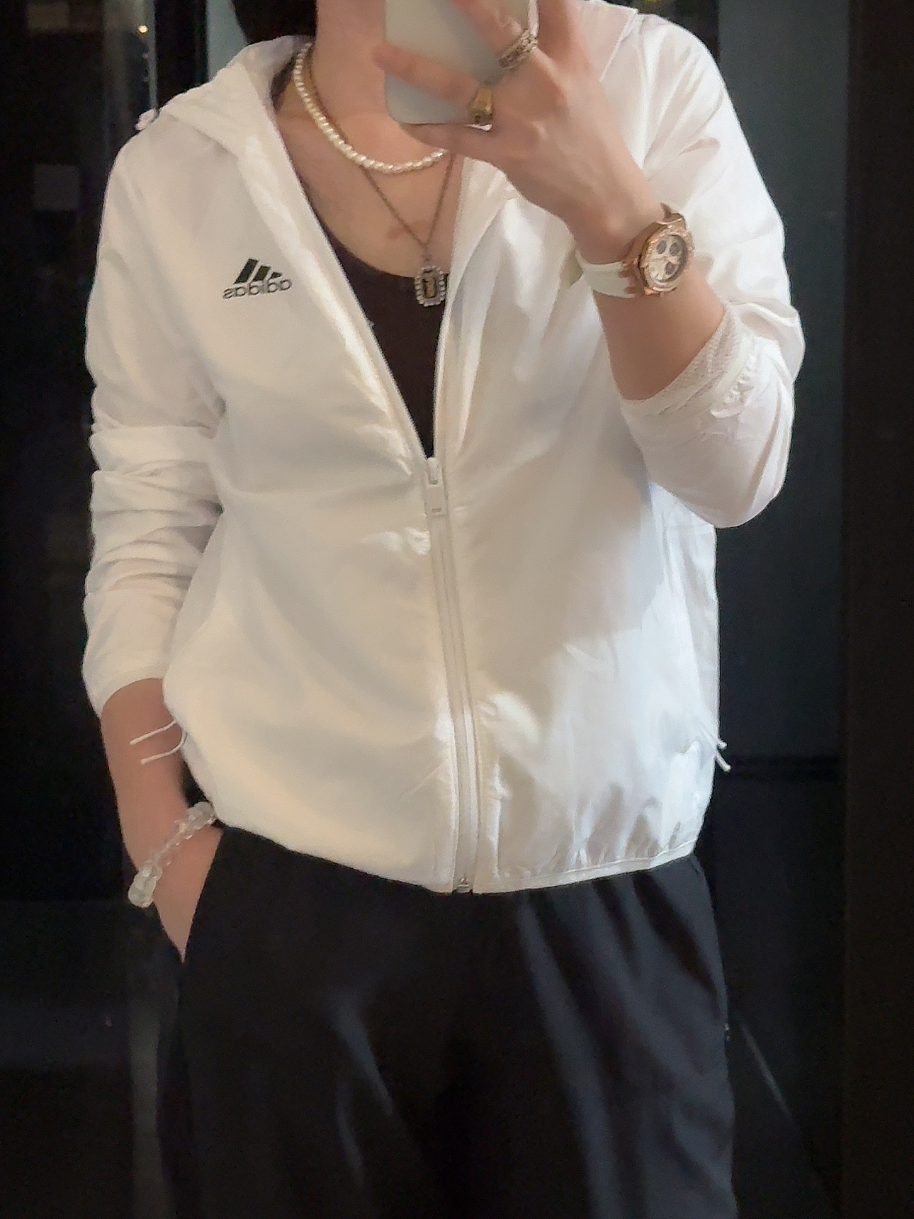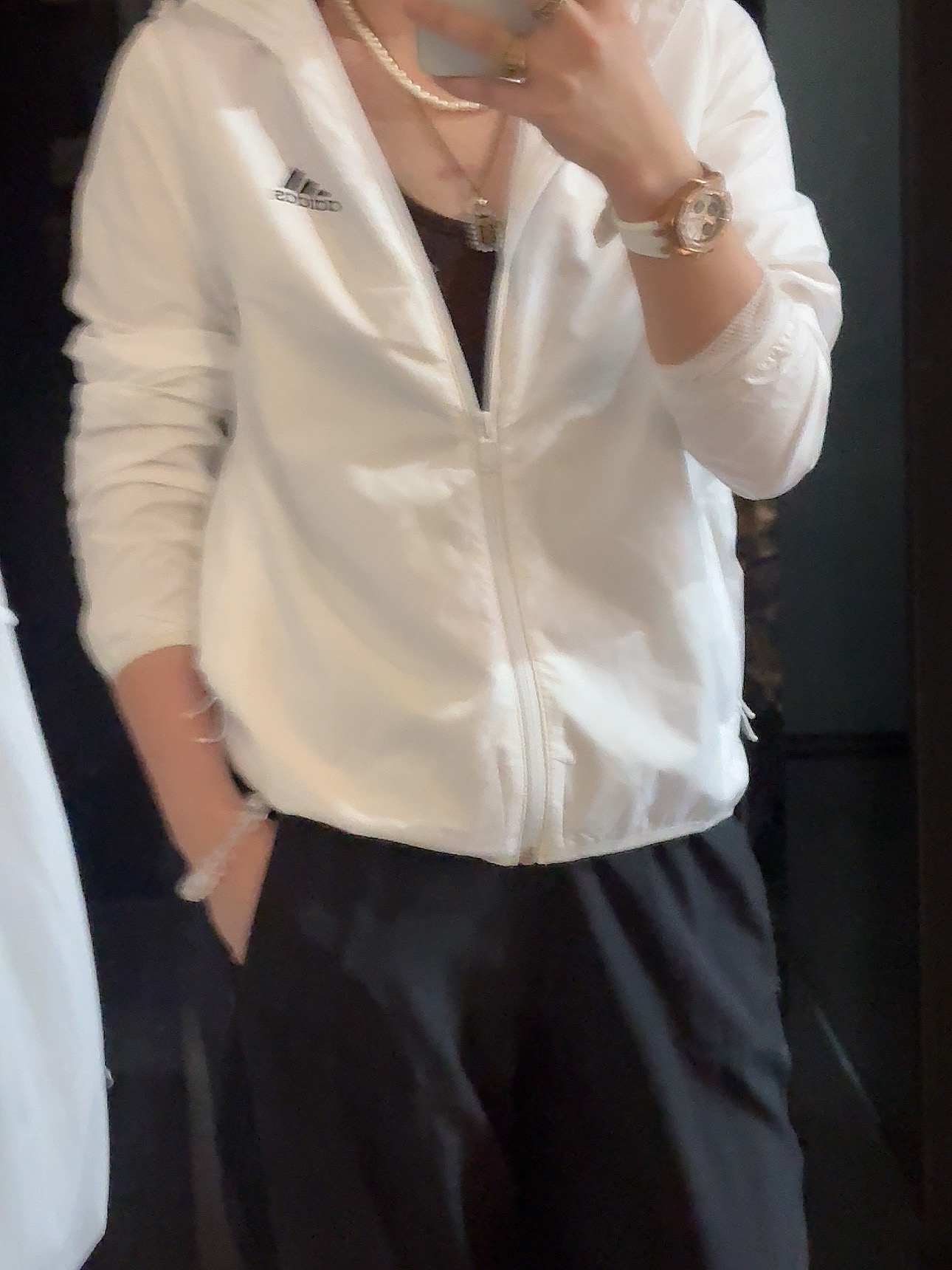 还在找一件能兼顾运动活力与日常时髦的外套r?阿迪达斯这款白色连帽夹克,直接把“舒适”“颜值”“品质”焊死在身上 纯净的白色百搭又显气质。胸前的品牌小logo低调地彰显着品质。连帽设计很贴心,帽子上的猪鼻🐽扣可以自由调节,既能在运动时抵御微风,又能为造型增添几分随性。细节之处更见用心。内里满是透气网,每次运动时,即便出了不少汗,也能快速排湿,让我始终保持干爽舒适的状态。YKK品牌拉链的运用更是加分项,不管是主拉链还是口袋拉链,都顺滑耐用,用多久都不用担心损坏。S码90斤以内⚠️ XL码130斤以内⚠️