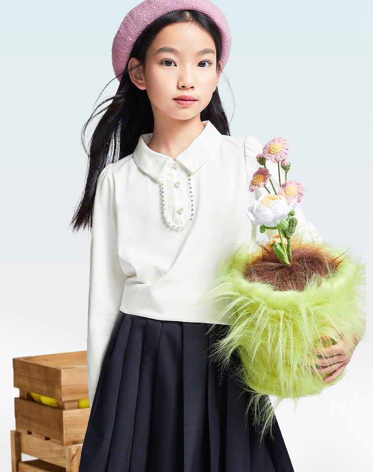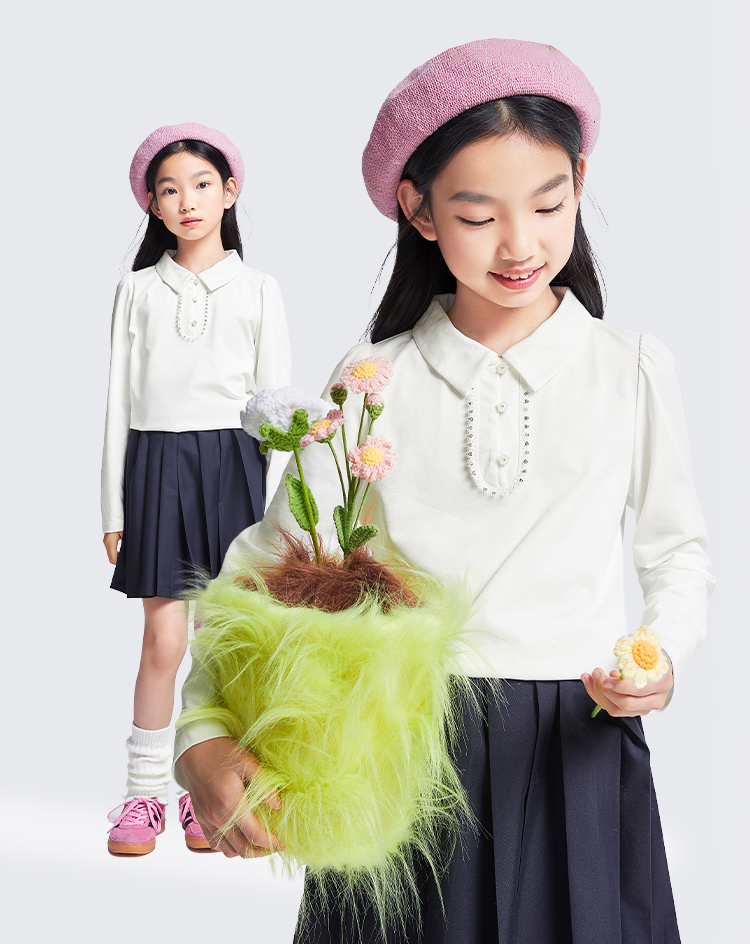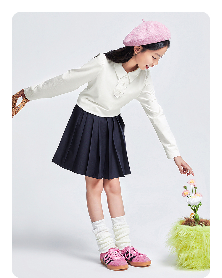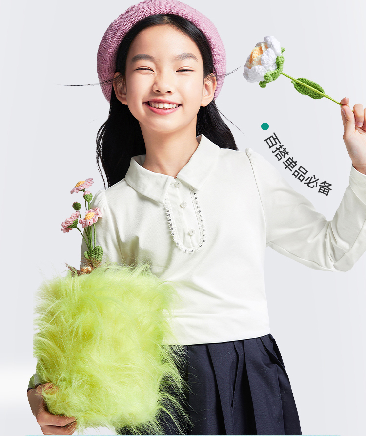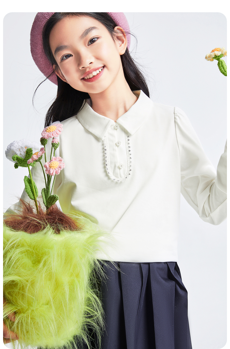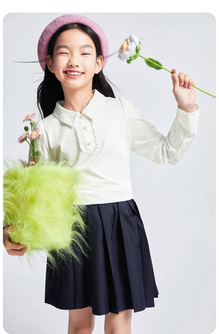 女童SORONA翻领长袖POLO衫春季新款安奈儿童装EG511007