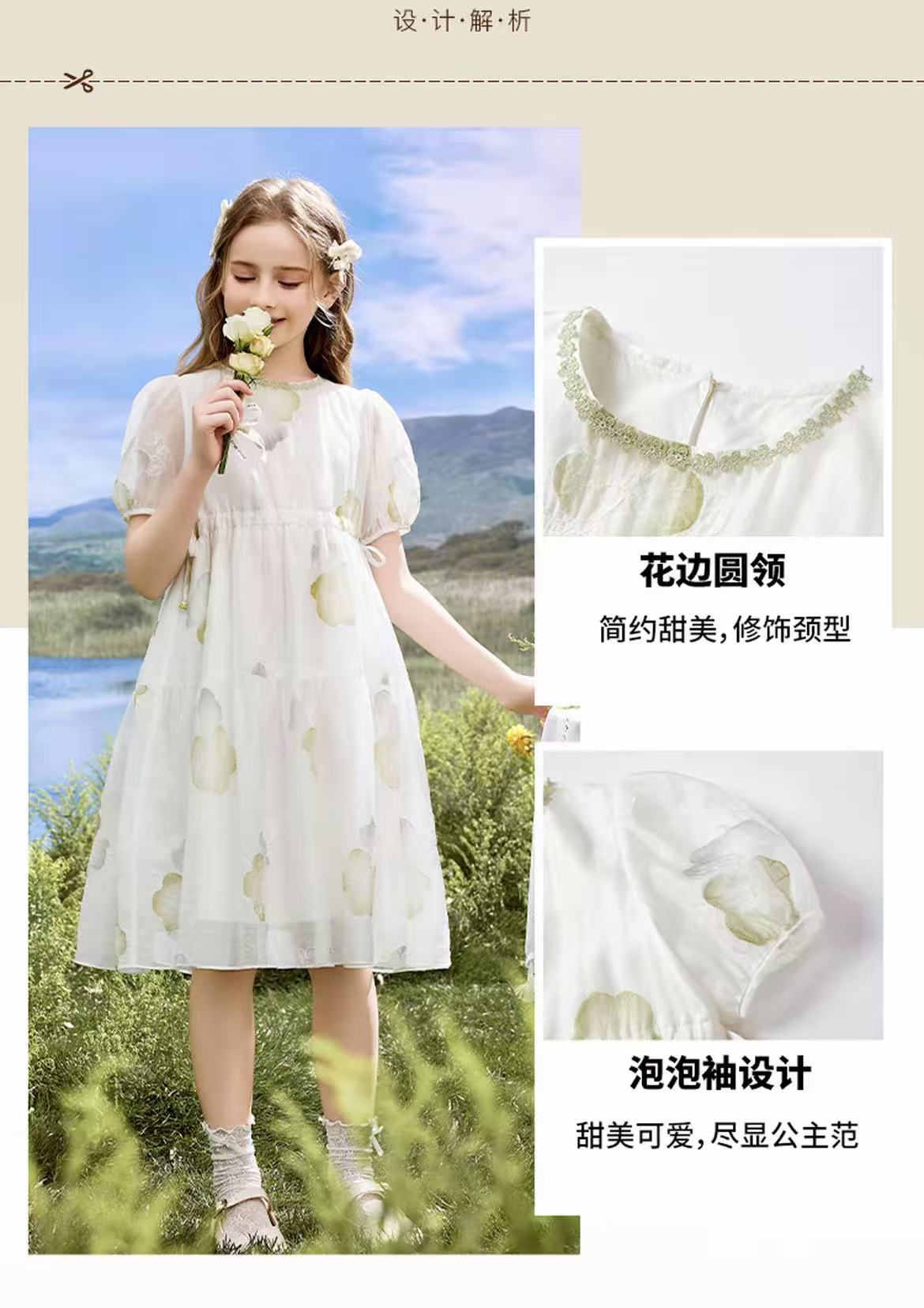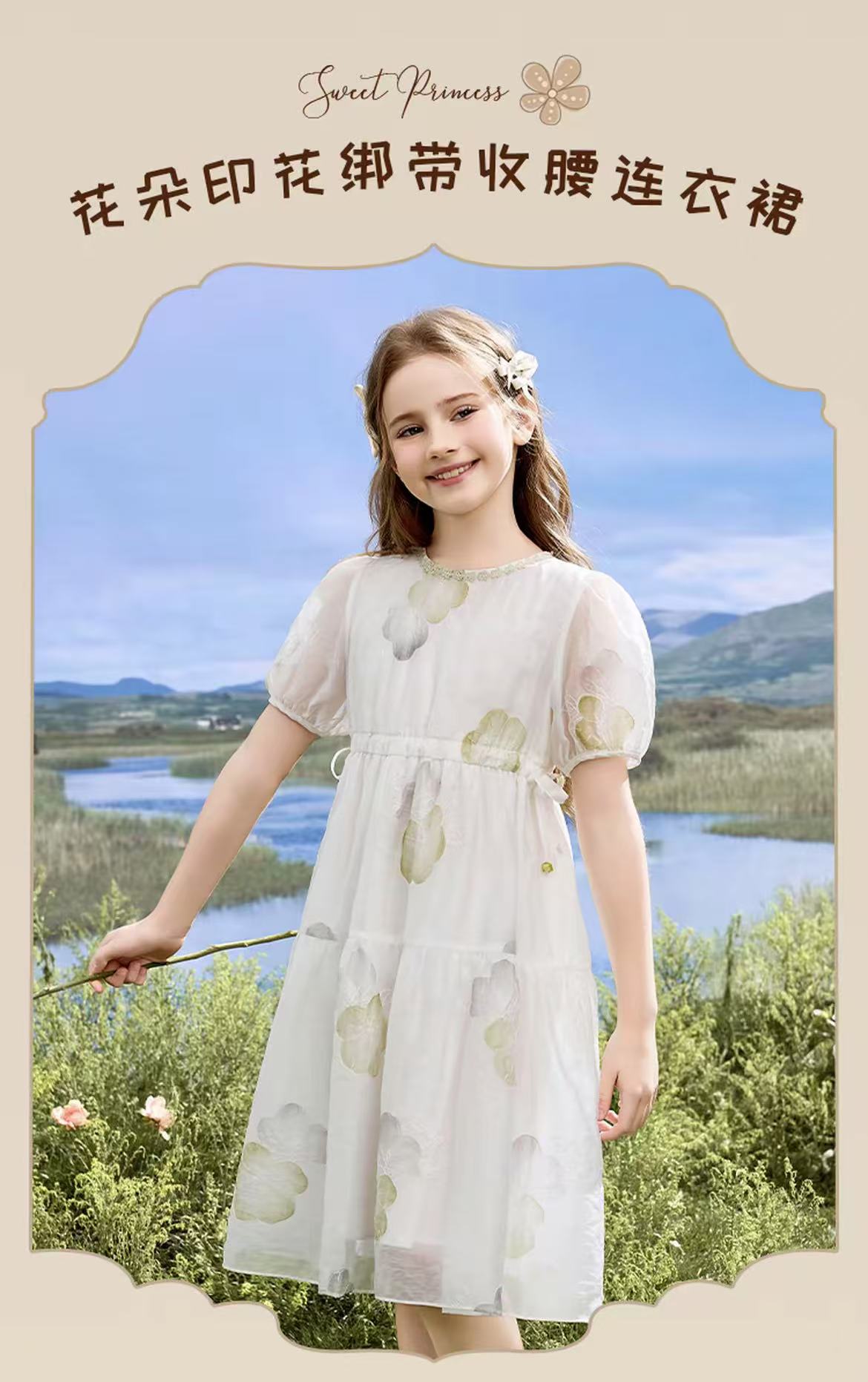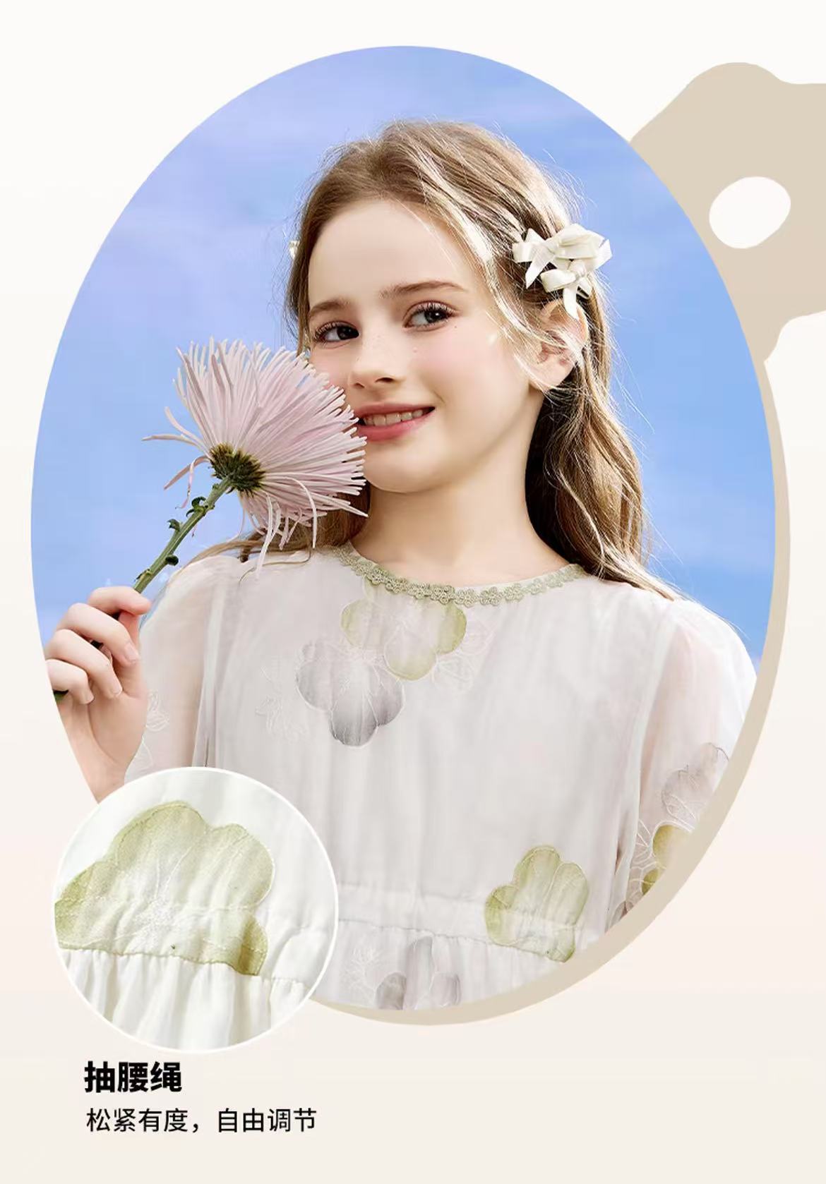 【孩提精灵】2112 抽绳刺绣提花清新童连衣裙-喜出