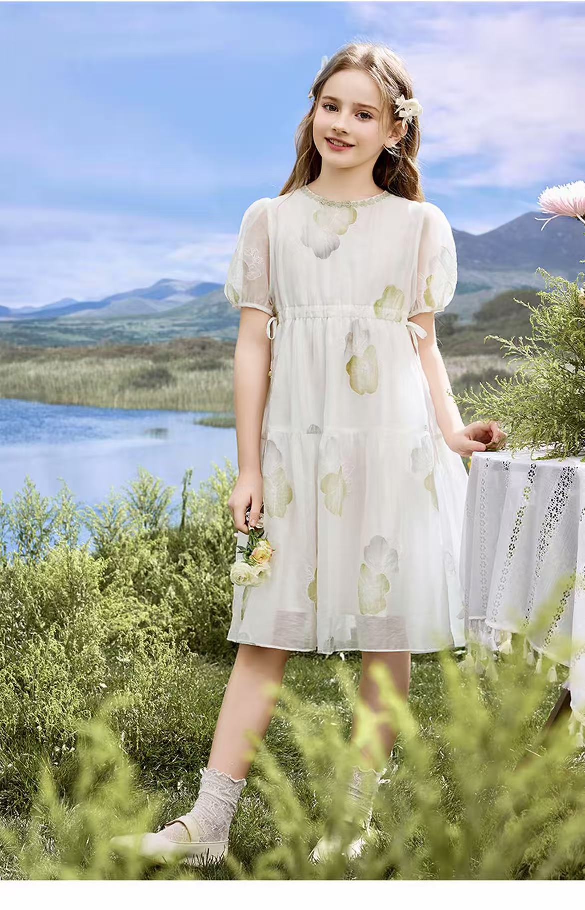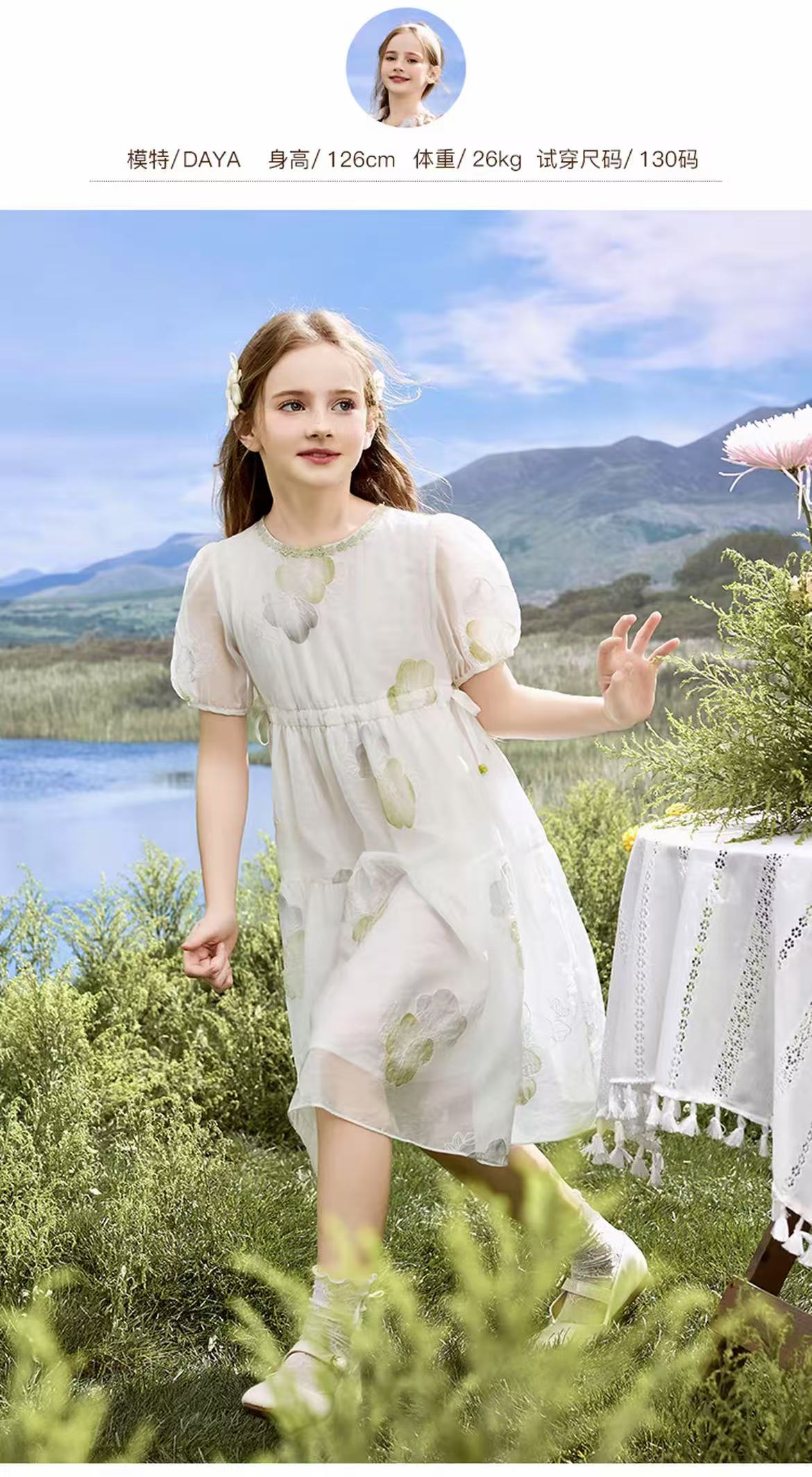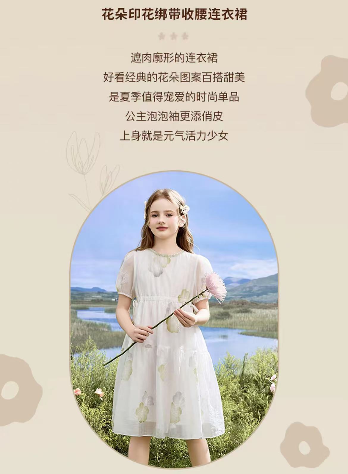 【孩提精灵】2112 抽绳刺绣提花清新童连衣裙-喜出