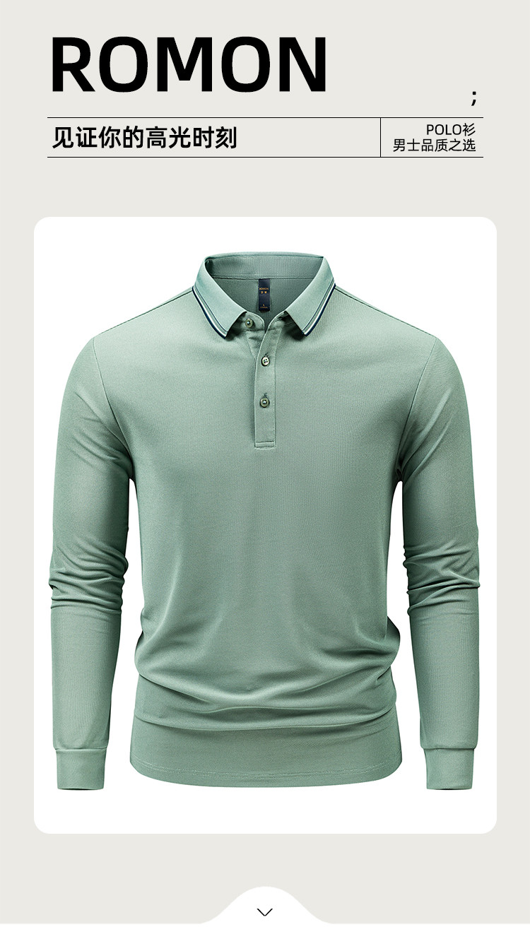 罗蒙【7A抗菌】经典商务休闲polo衫男长袖t恤男春秋打底衫男