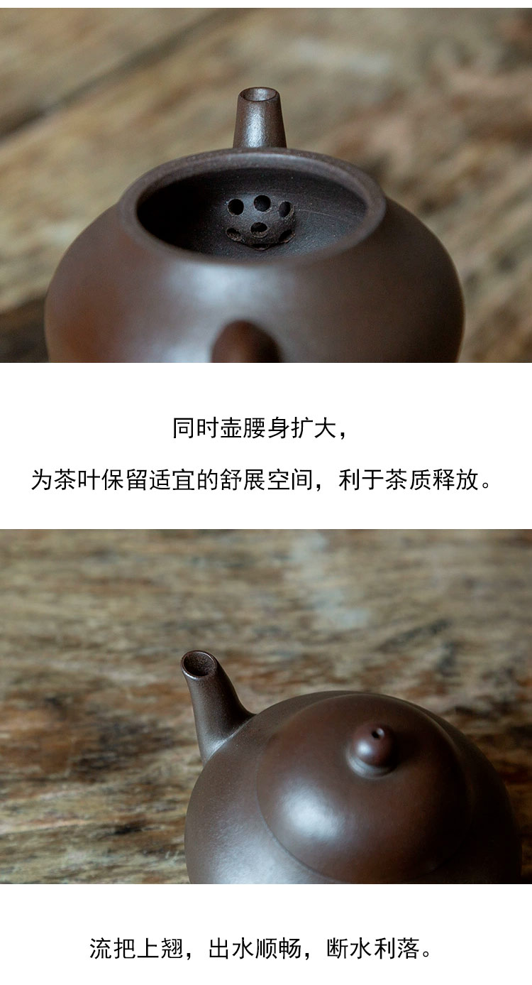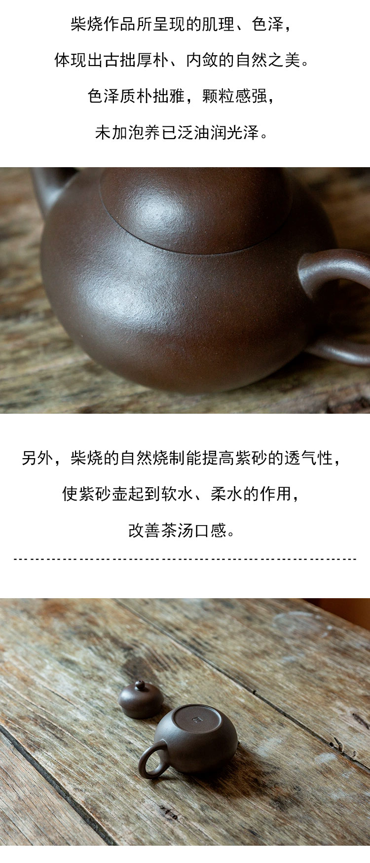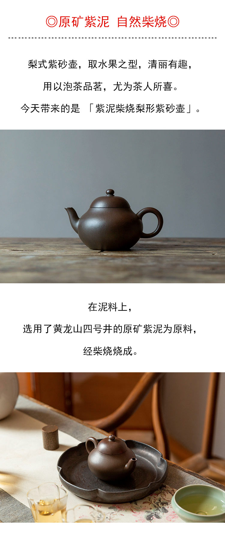 茶香记 紫泥柴烧梨形紫砂壶 原矿紫泥 自然柴烧 轻巧好上手 茶壶