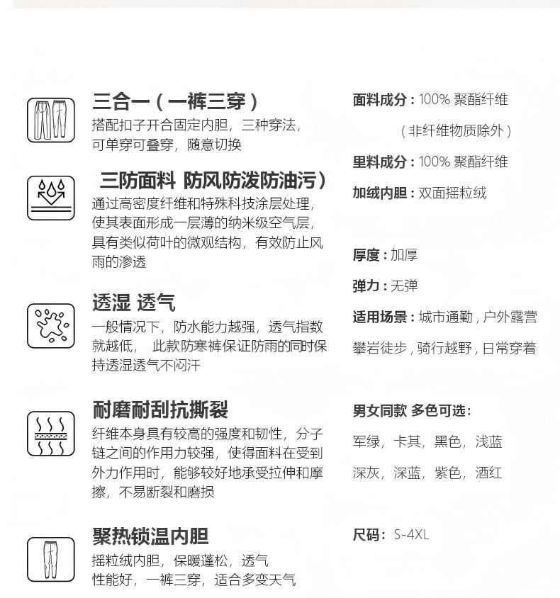 【加内胆更保暖 三防面料 一裤三穿】户外三合一可拆卸双面摇粒绒内胆防寒裤【爆款2-5内发货】