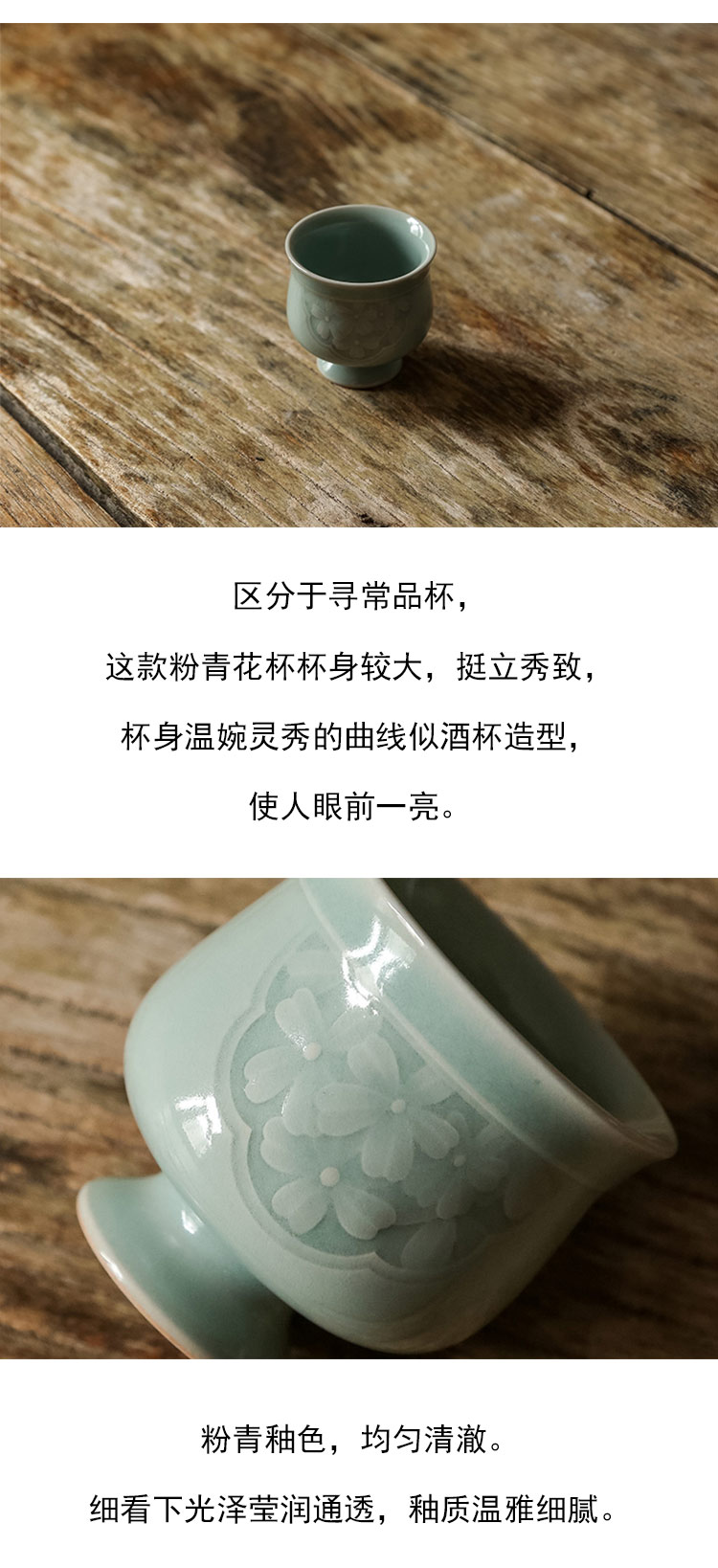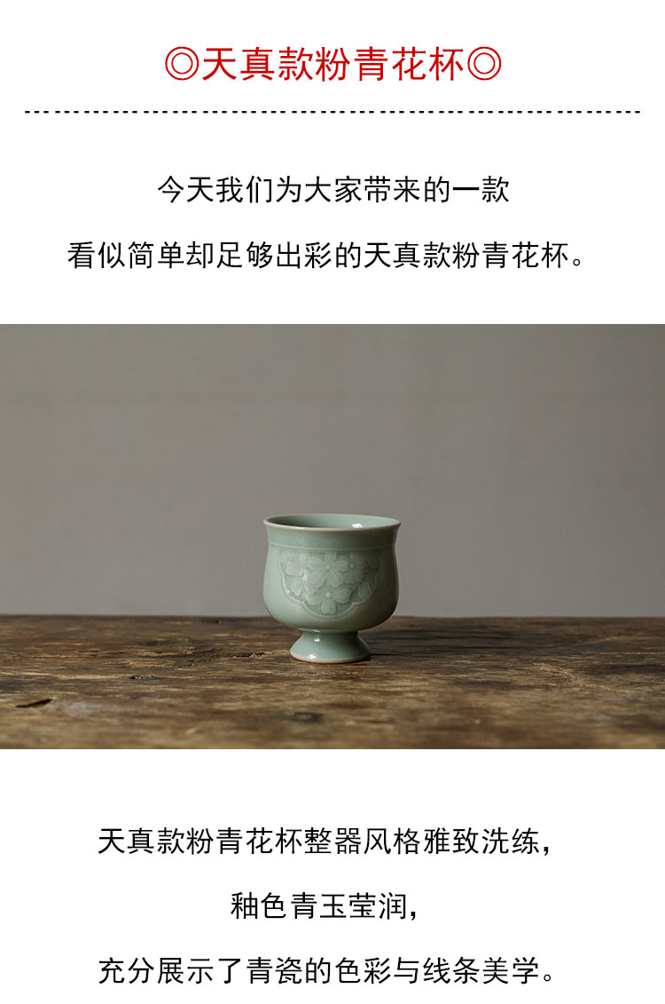 茶香记 天真款粉青花杯 青玉莹润 雅致洗练 青瓷 主人杯 茶杯
