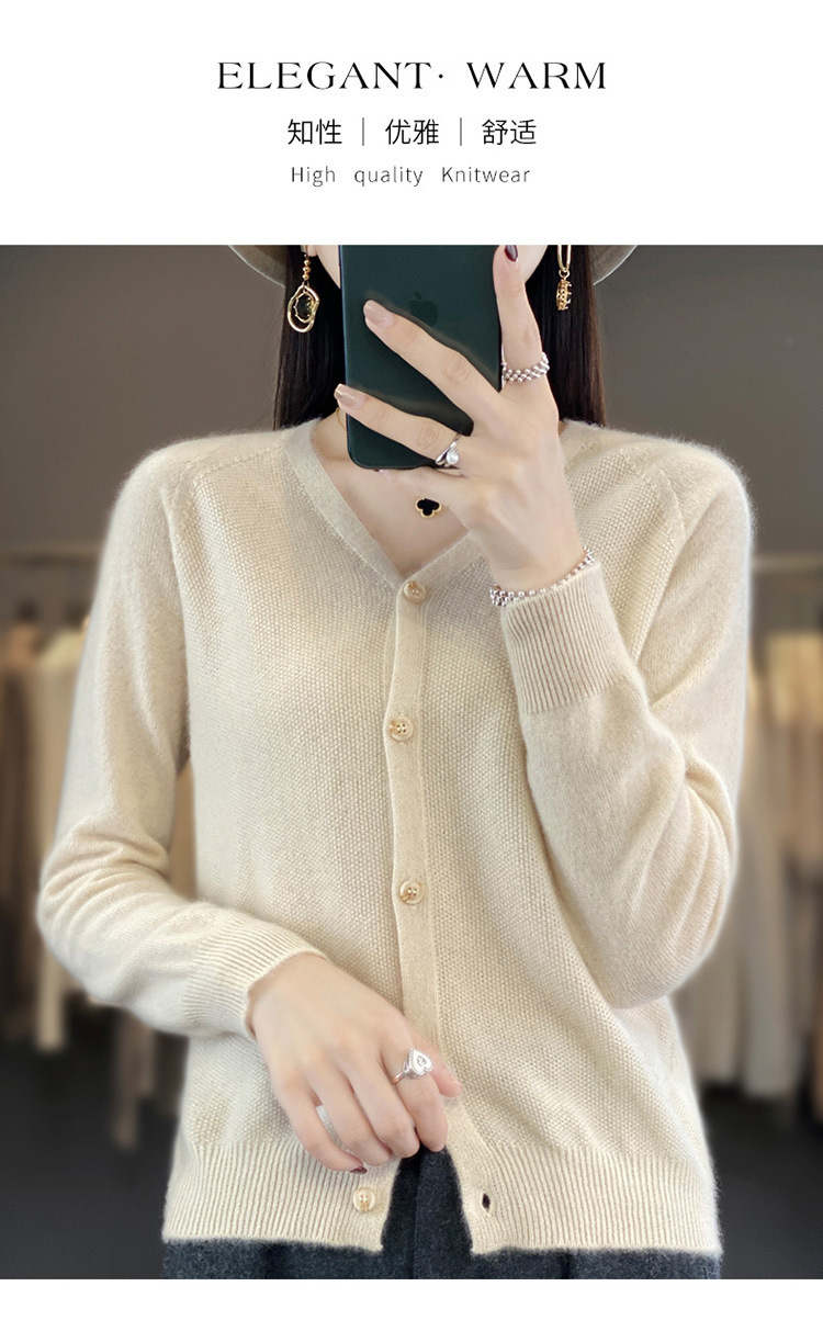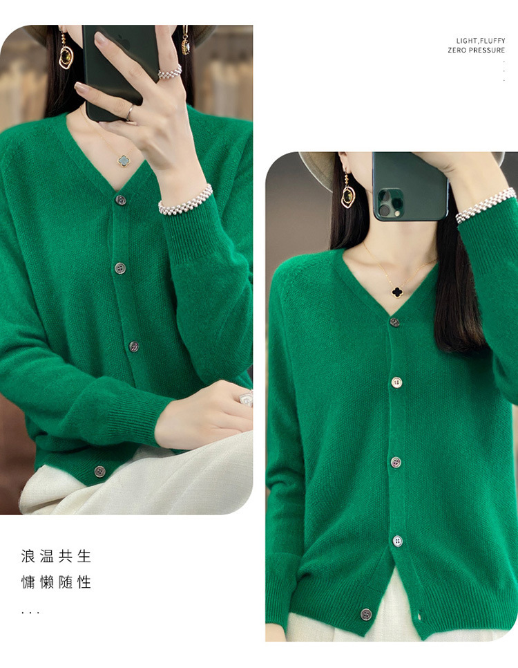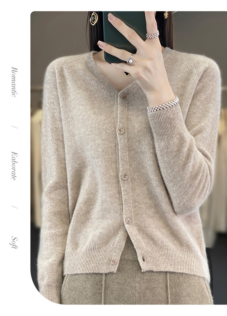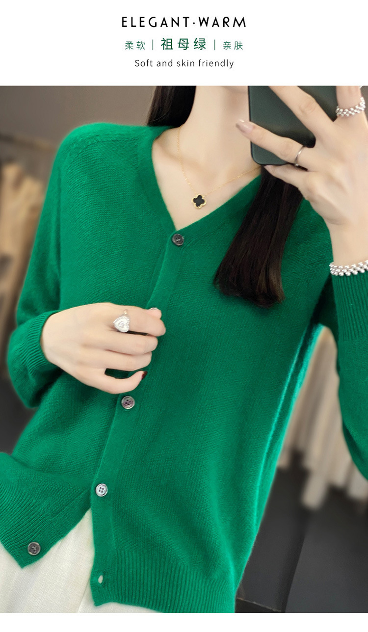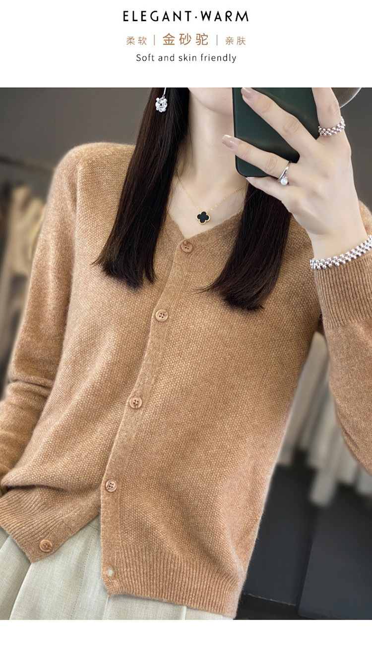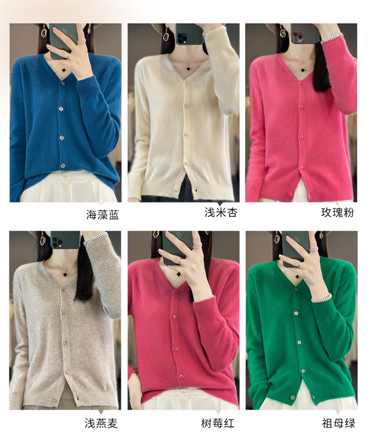 QH-RY110早秋开衫女短款长袖韩版宽松毛衣纯色百搭气质法式针织上衣小外套
