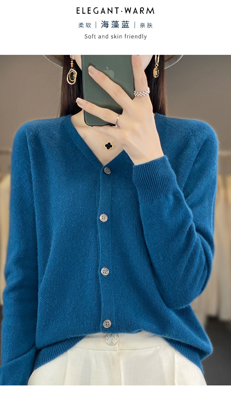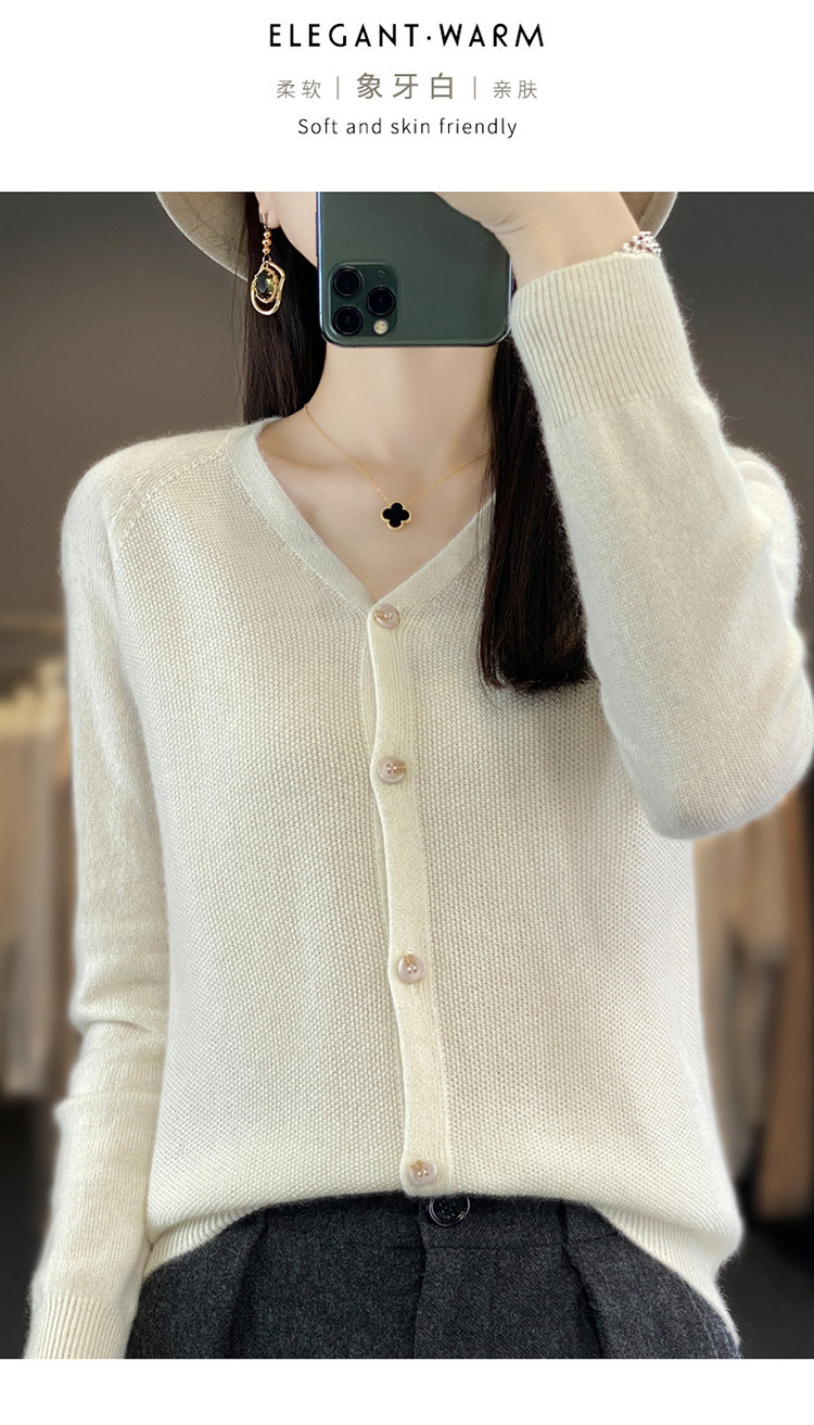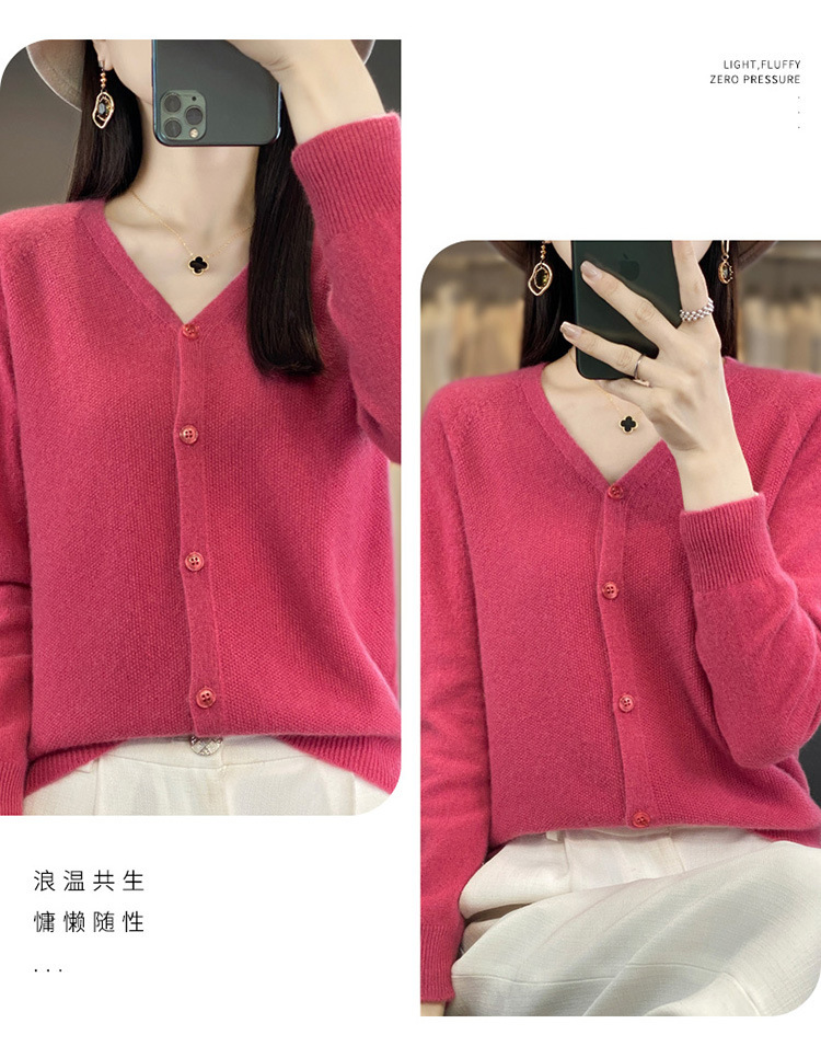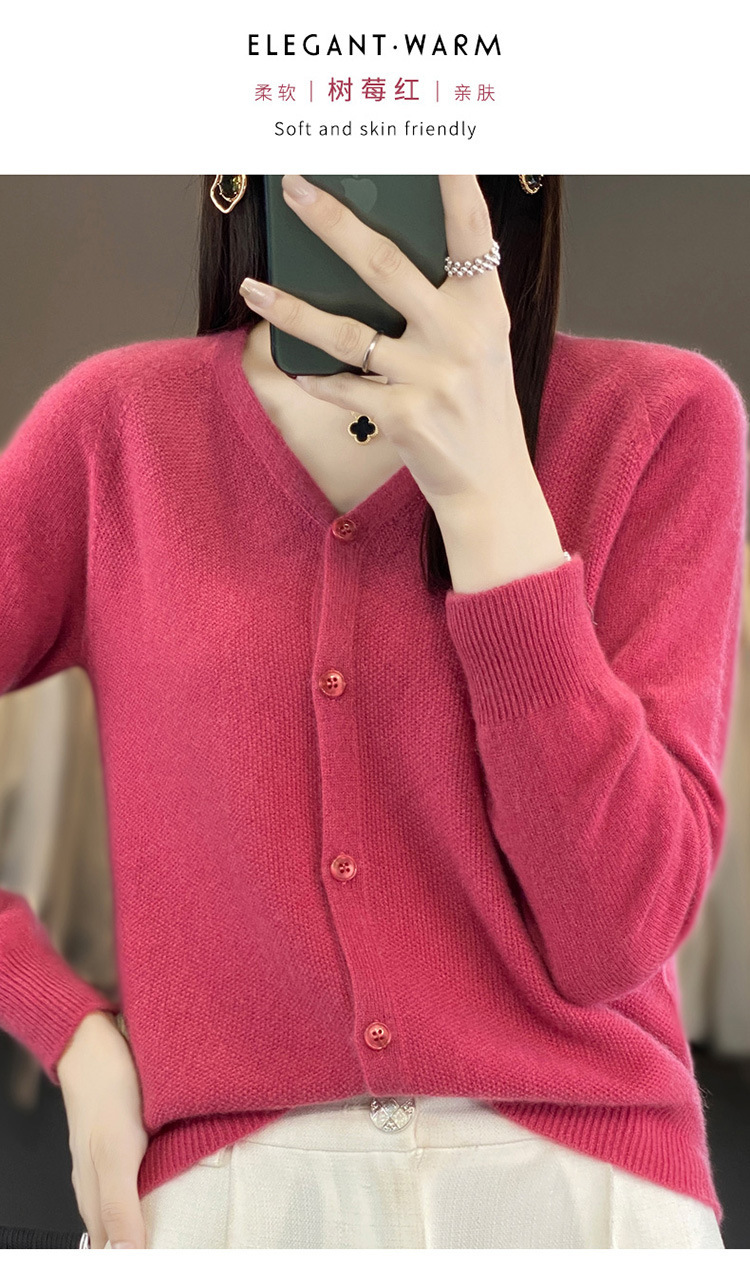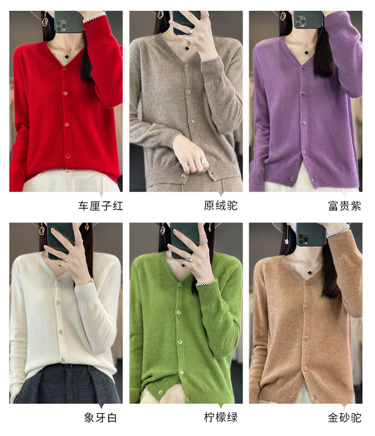 QH-RY110早秋开衫女短款长袖韩版宽松毛衣纯色百搭气质法式针织上衣小外套
