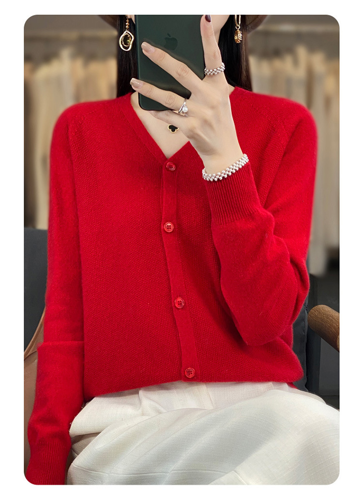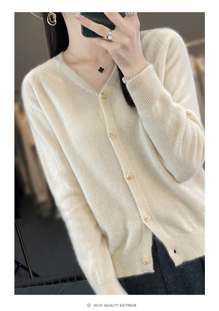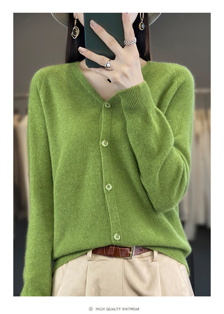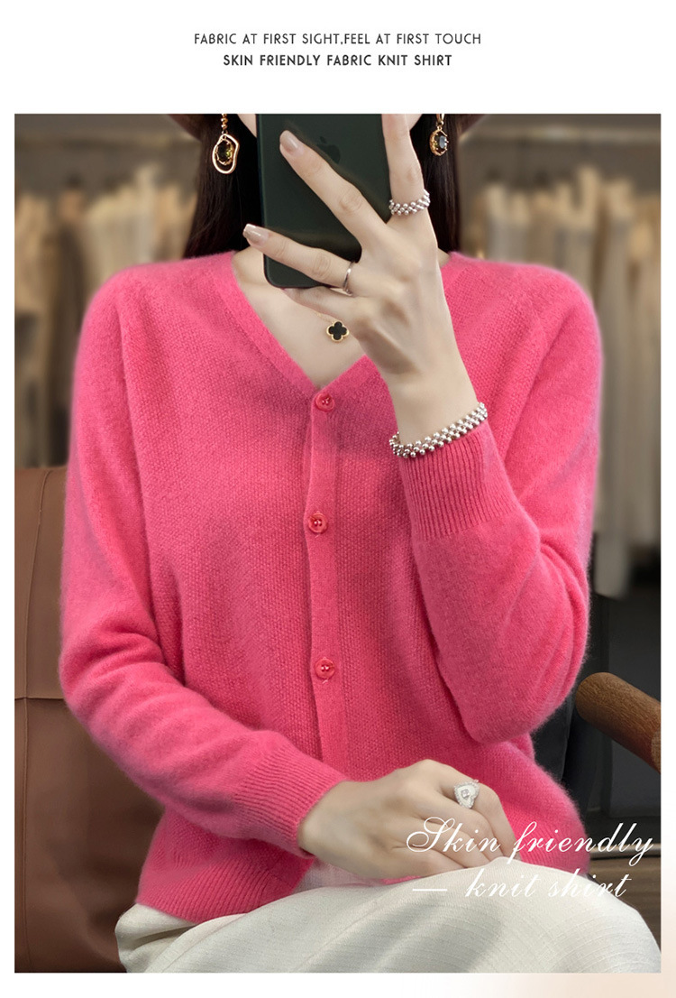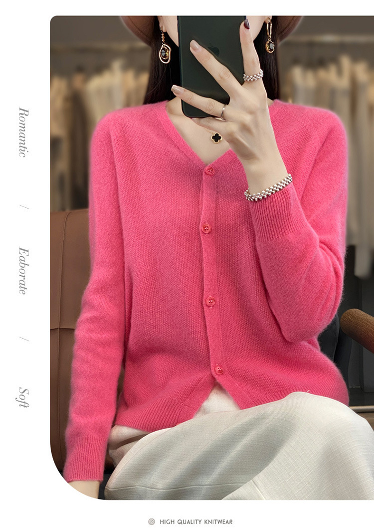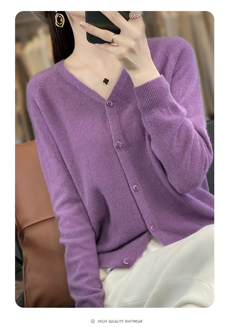 QH-RY110早秋开衫女短款长袖韩版宽松毛衣纯色百搭气质法式针织上衣小外套