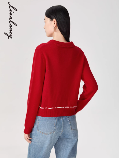 朗姿 【马踏春风】2026羊毛羊绒简约POLO领针织衫LAHADAKPR001R11