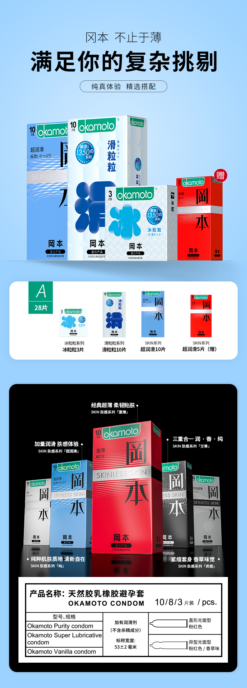【限时赠5片】日本冈本冰粒粒滑粒粒超薄套男用裸入润滑组合装 共28只