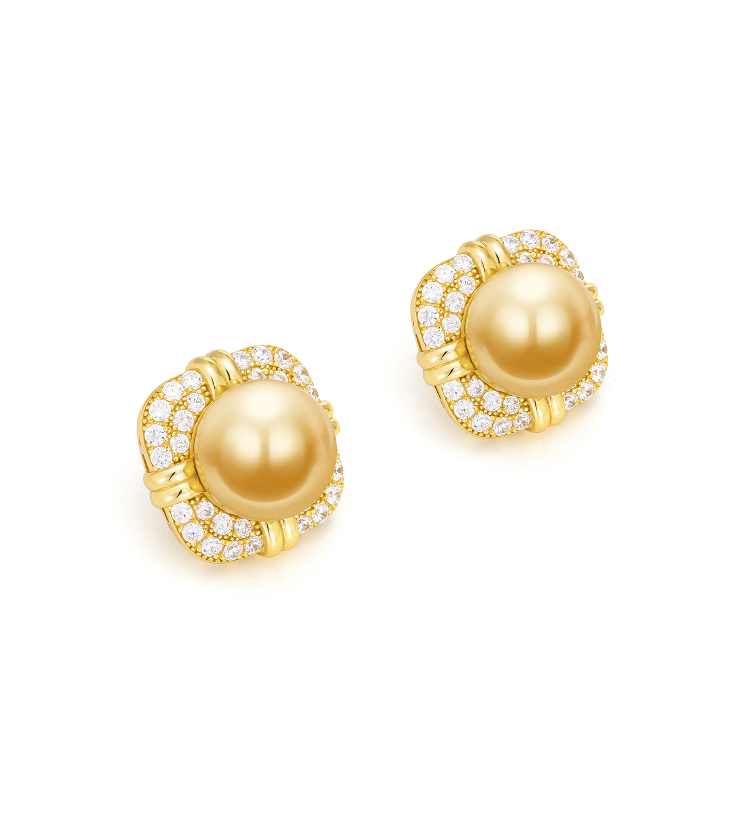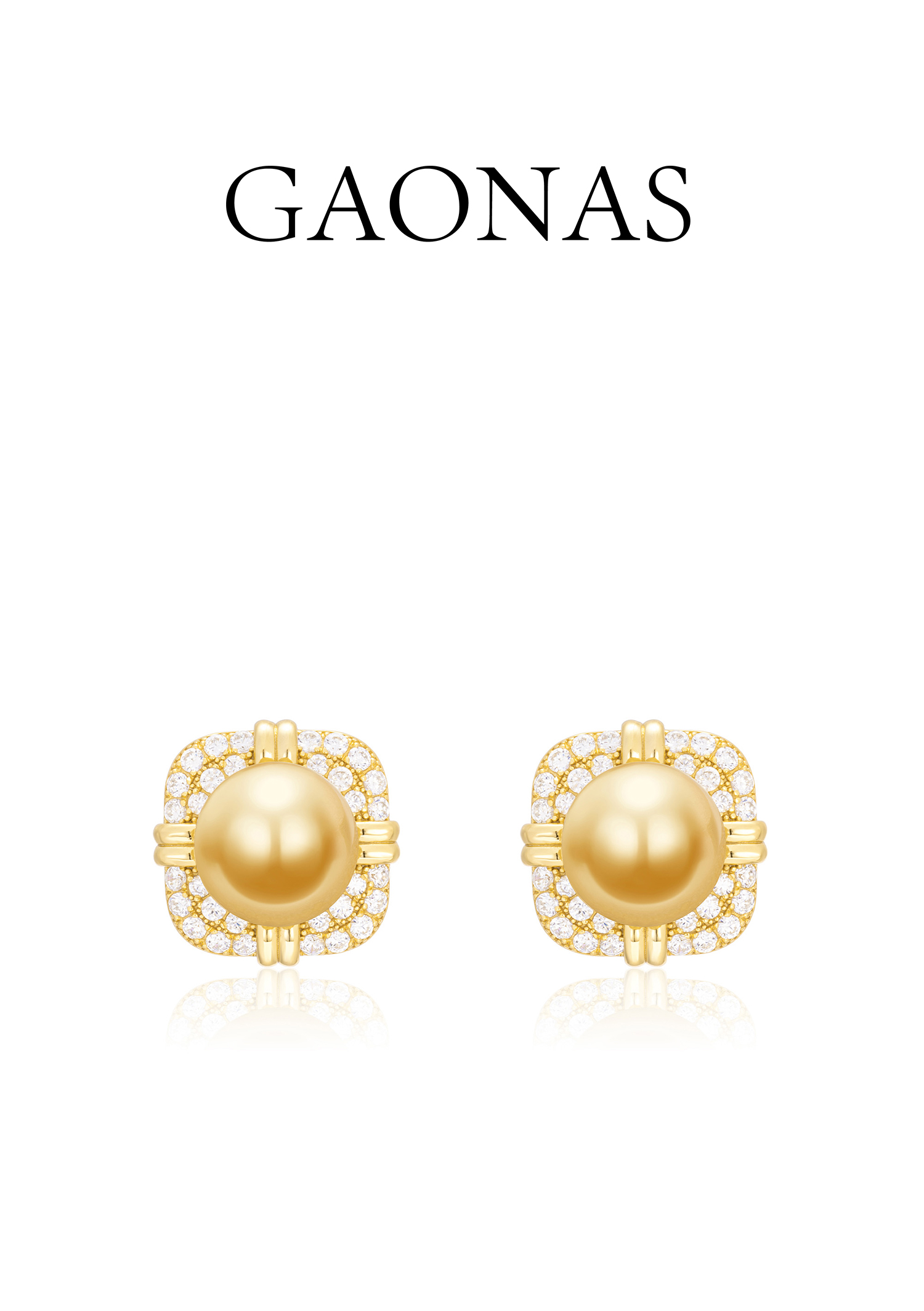 GAONAS 925银仿珍珠耳饰 错彩镂金 贵气14mm金色珠耳钉 11151EGO