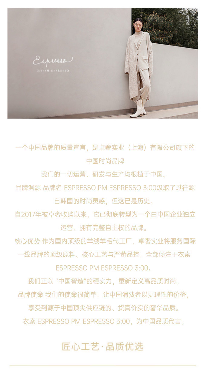 ESPRESSO松密度鸡心领套衫羊绒衫 精选高品质羊绒材质,触感柔软细腻,轻盈贴肤,带来极致穿着体验。设计简约自然,适合日常搭配,展现温柔气质。CWF101084E