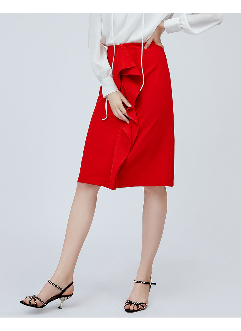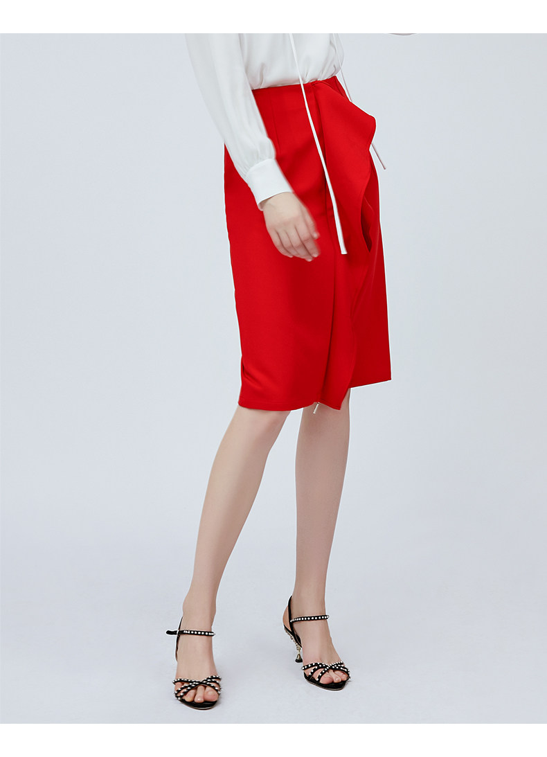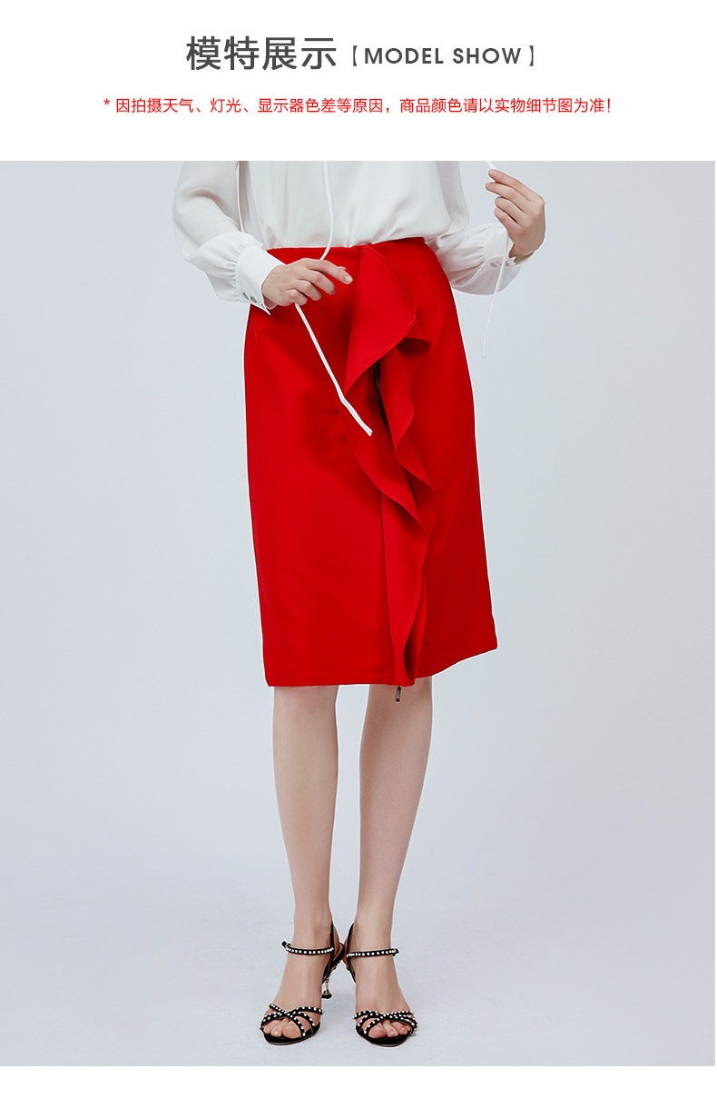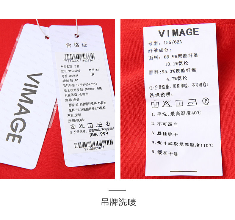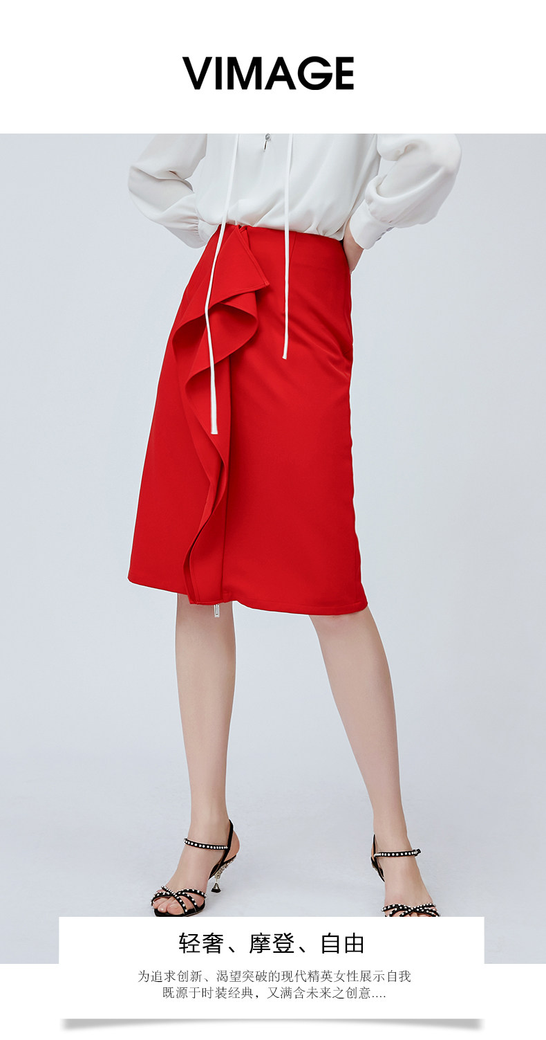 vimage纬漫纪夏季日式工装裙时尚百搭红色半身裙女高腰V1106705
