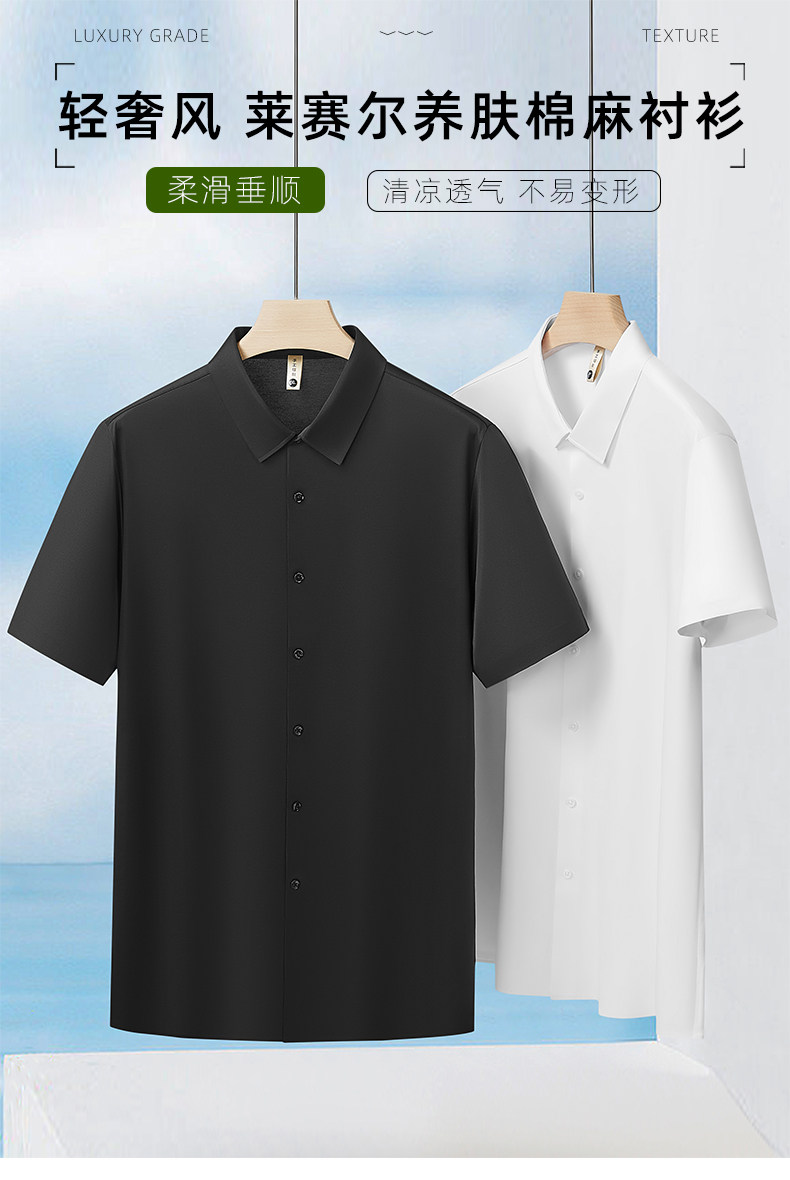 【DG】【莱赛尔棉】大依优型大码男装夏季亚麻纯色衬衫短袖商务休闲T恤