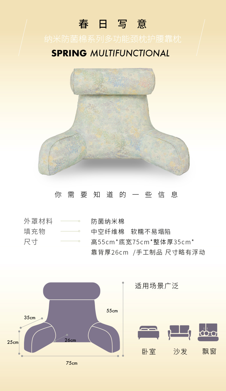 春日写意多功能靠枕床头靠垫软包大靠背