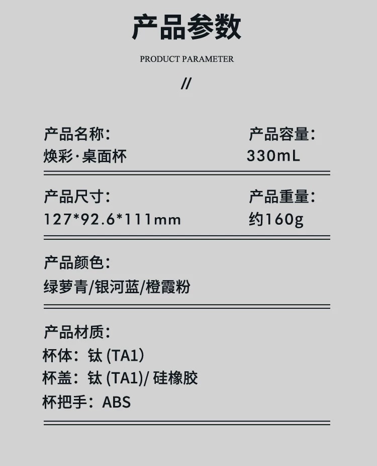 太可纯钛桌面杯,TZMB- T330