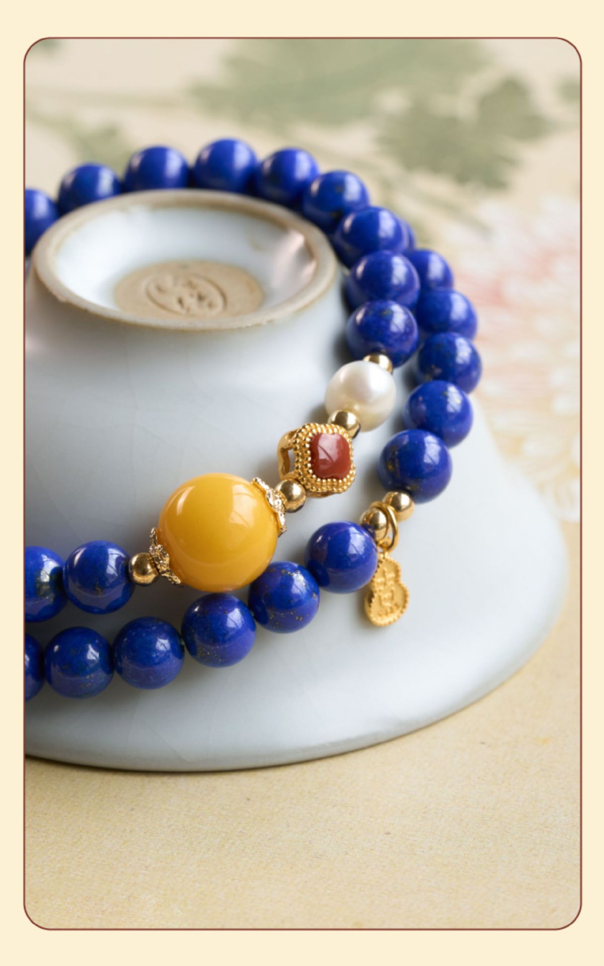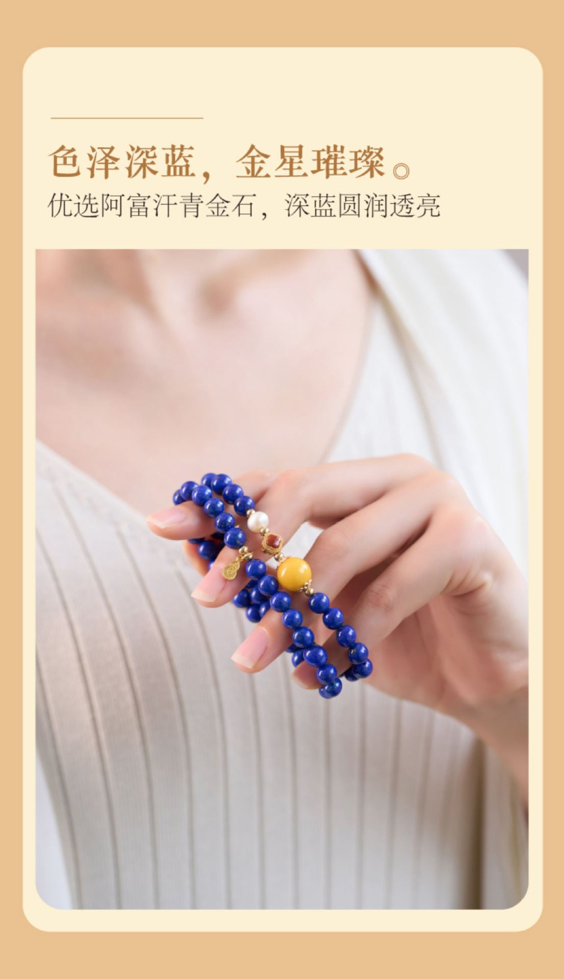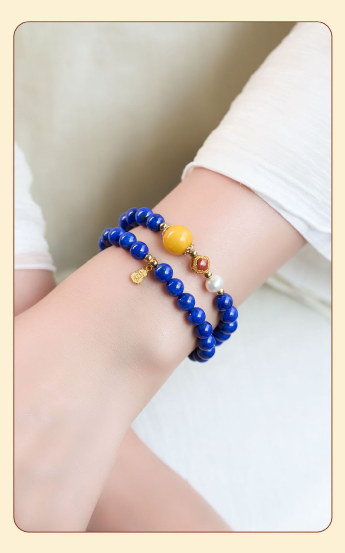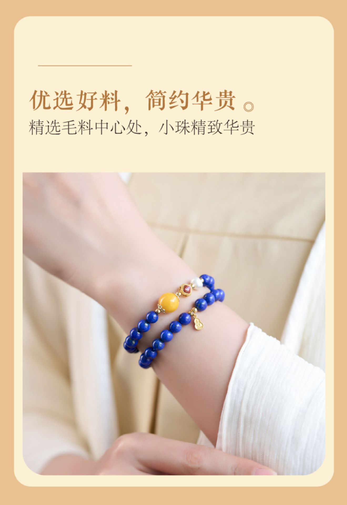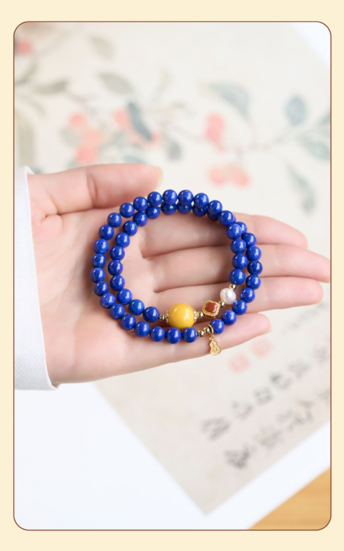 丁摩 保真青金石手串帝王青蓝色情绪稳定手链天然蓝宝石双圈5ZF-65551