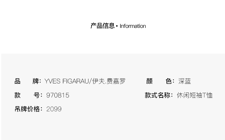 YvesFigarau伊夫·费嘉罗新款休闲短袖T恤970815