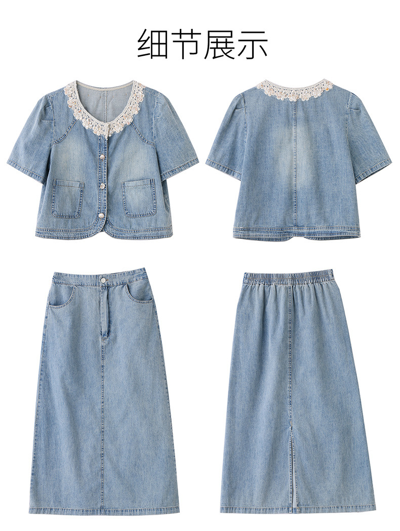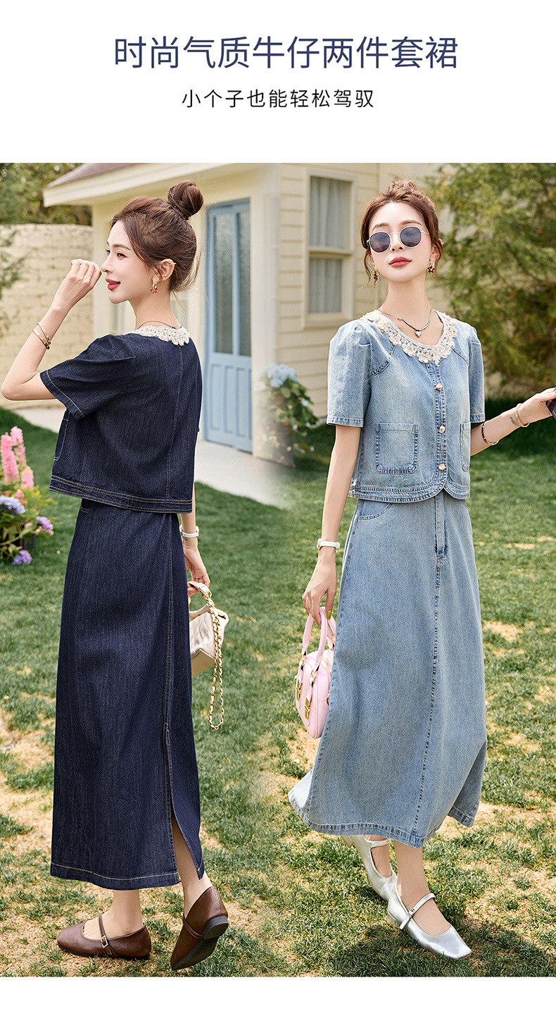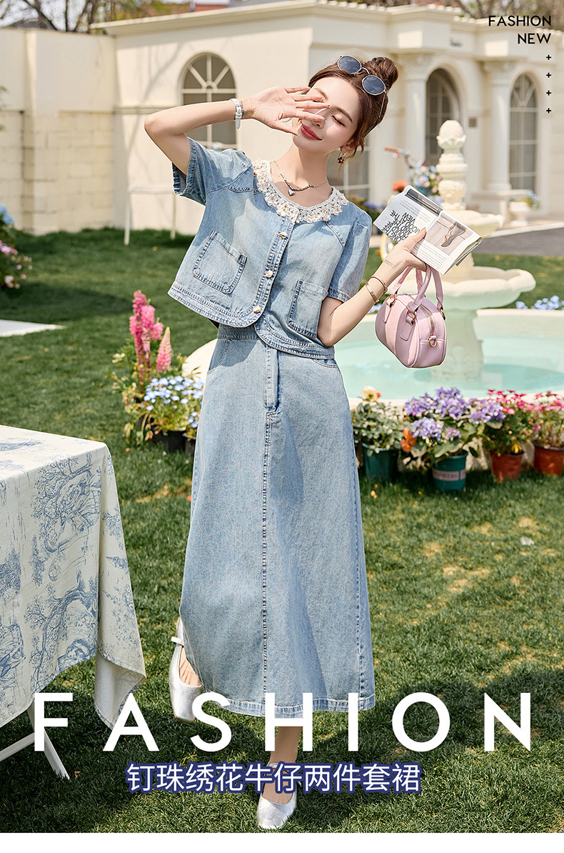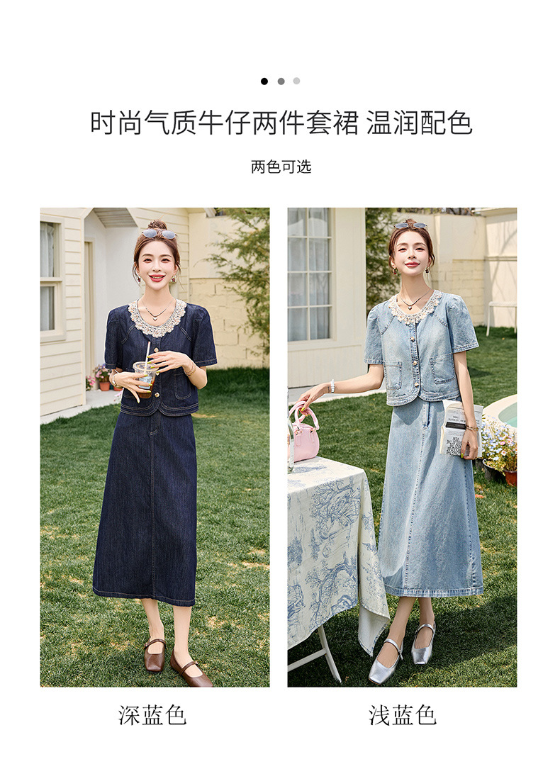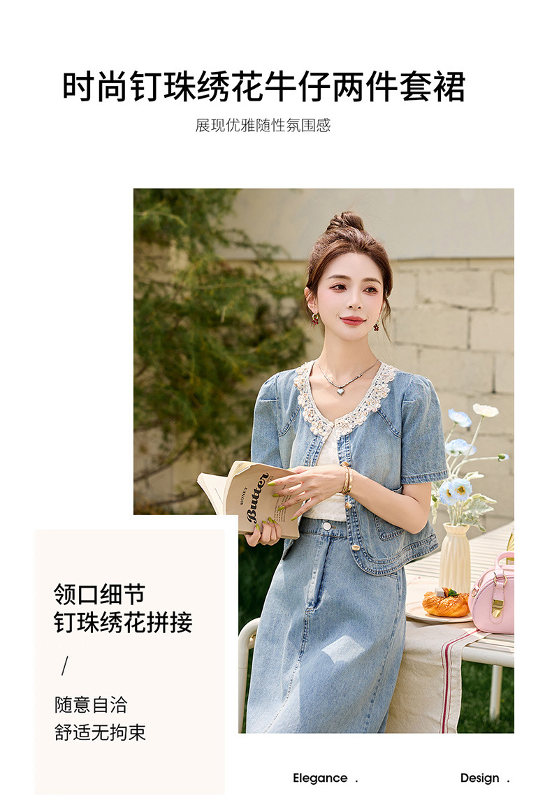 时尚甜美拼接牛仔套装两件套HRYZ2072