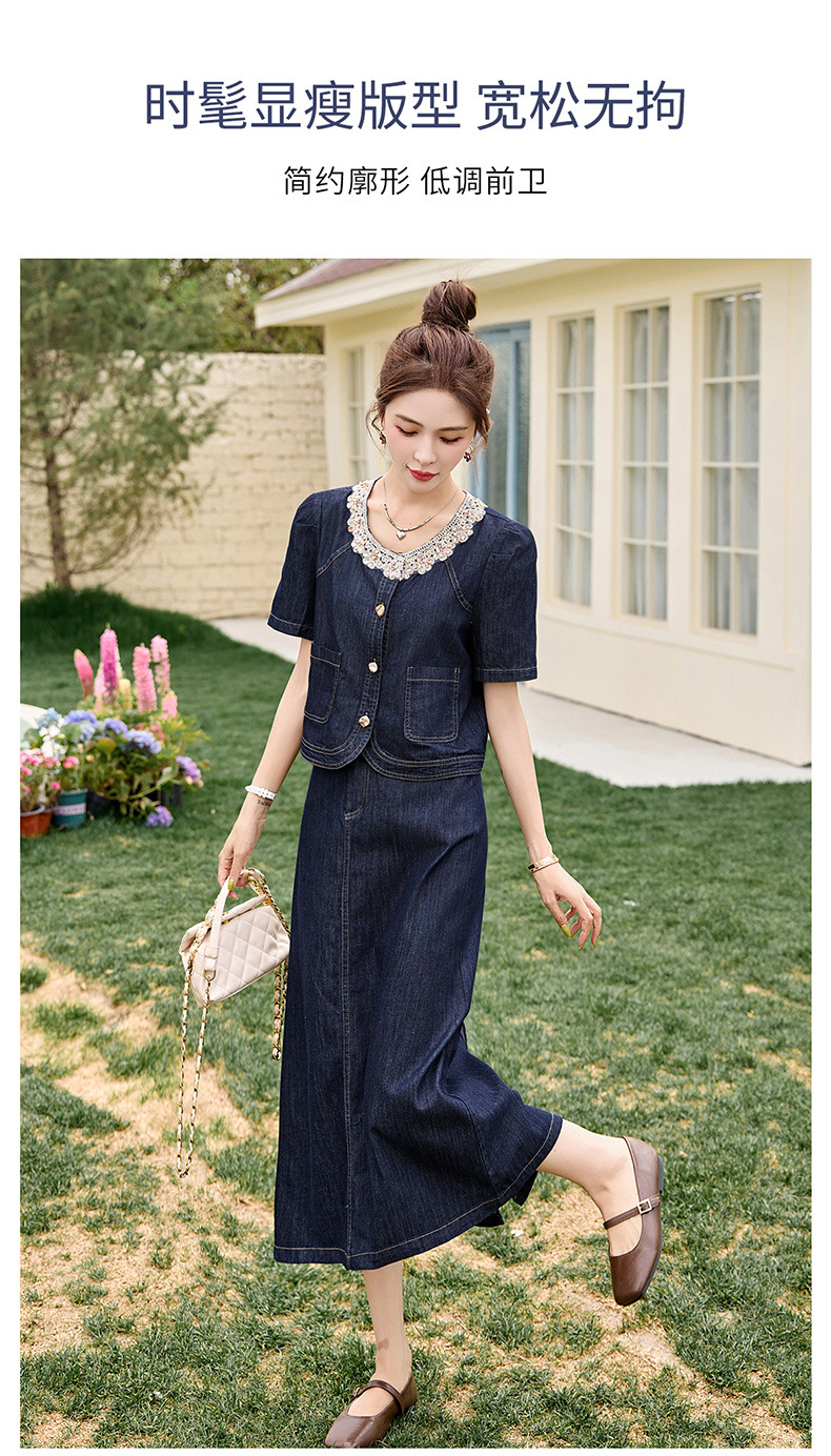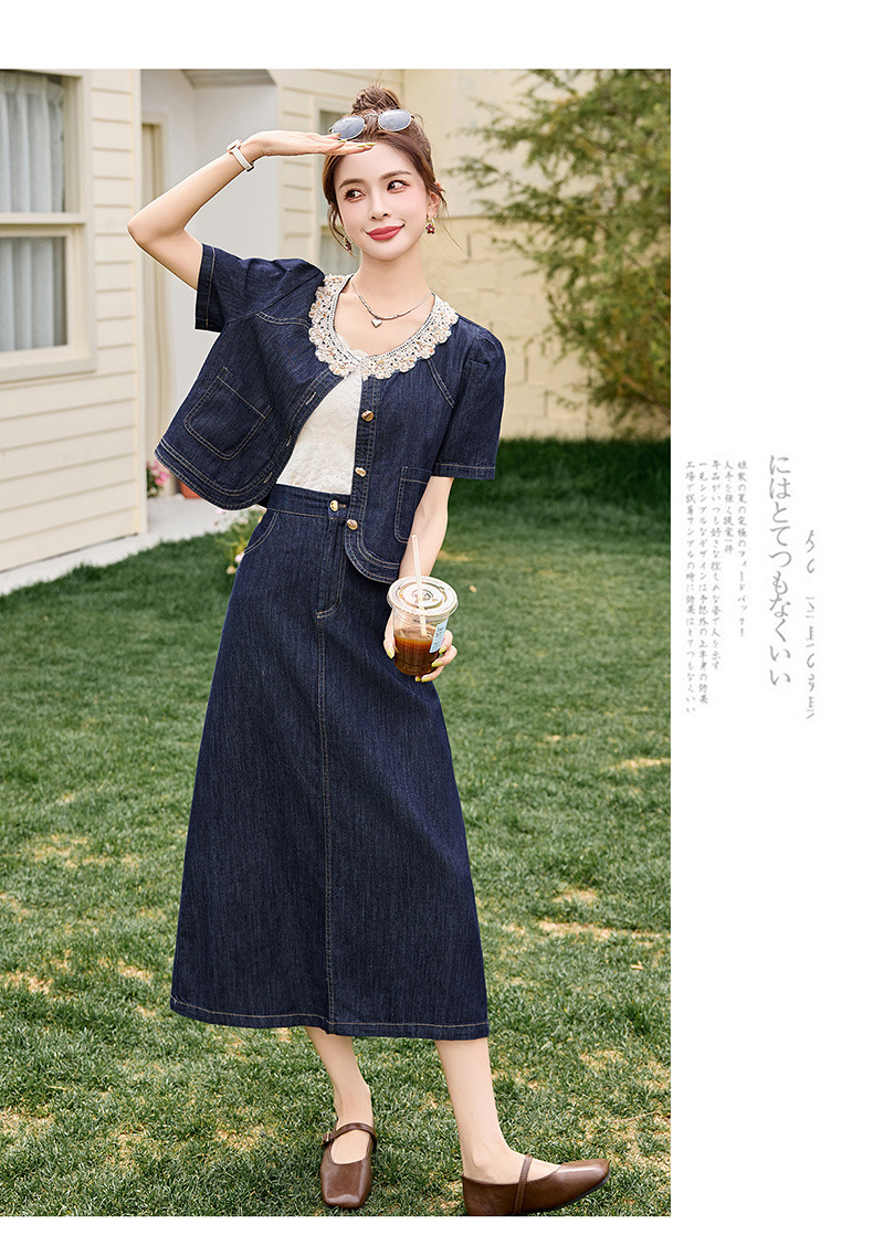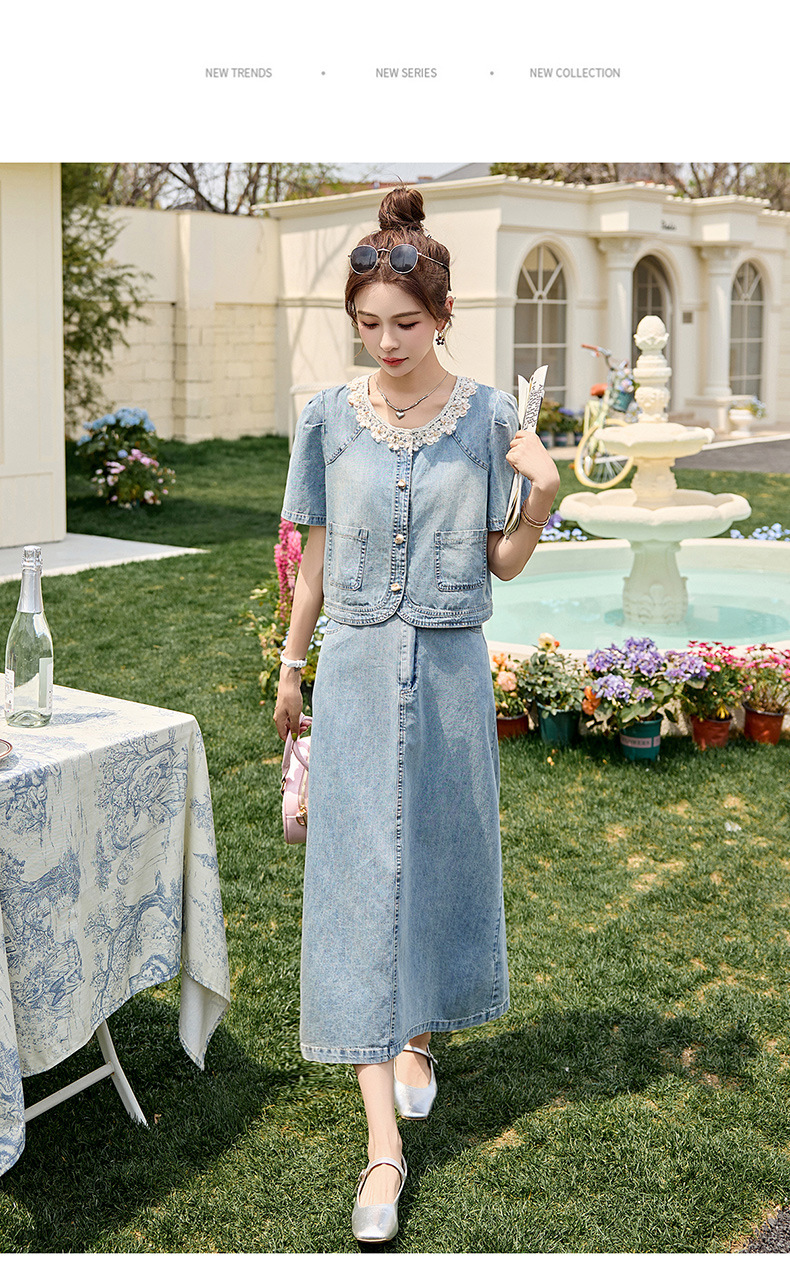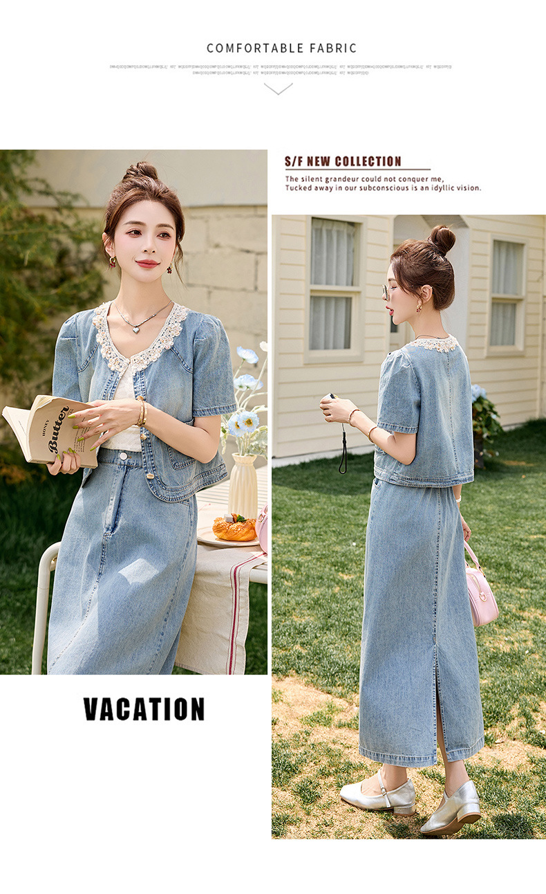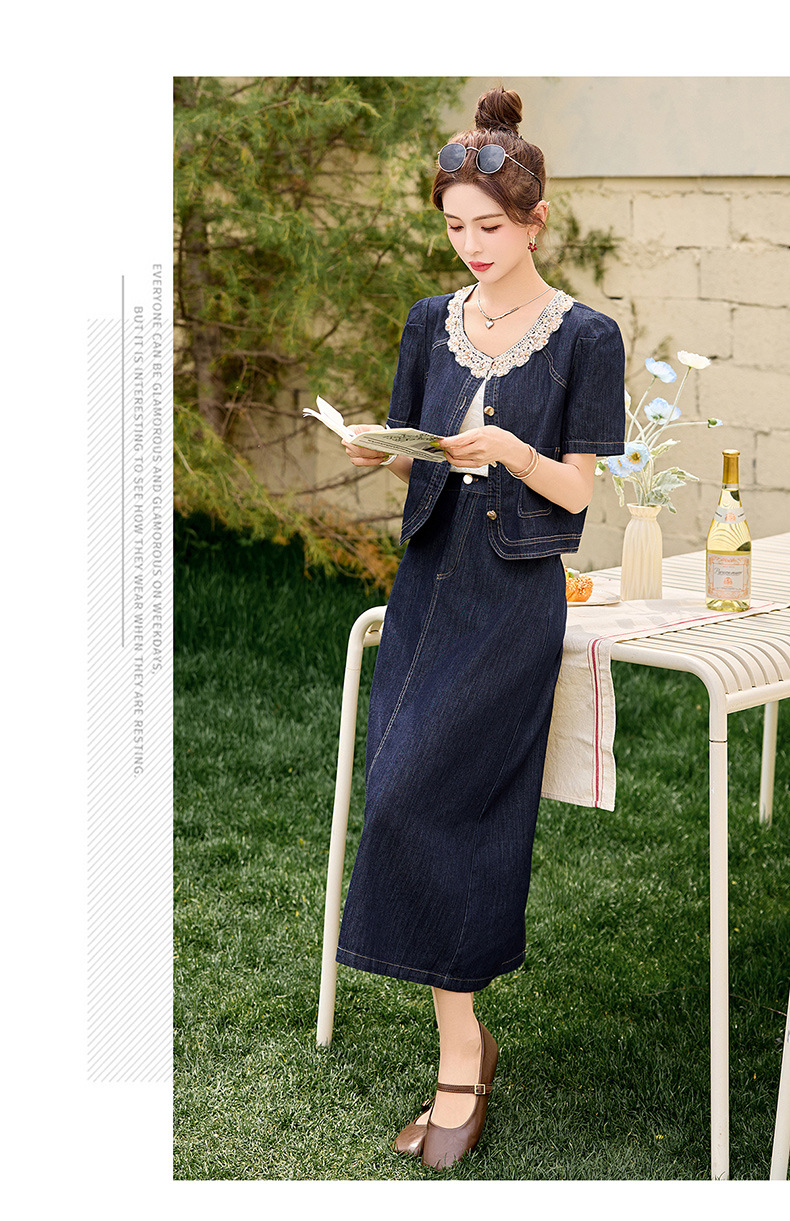 时尚甜美拼接牛仔套装两件套HRYZ2072