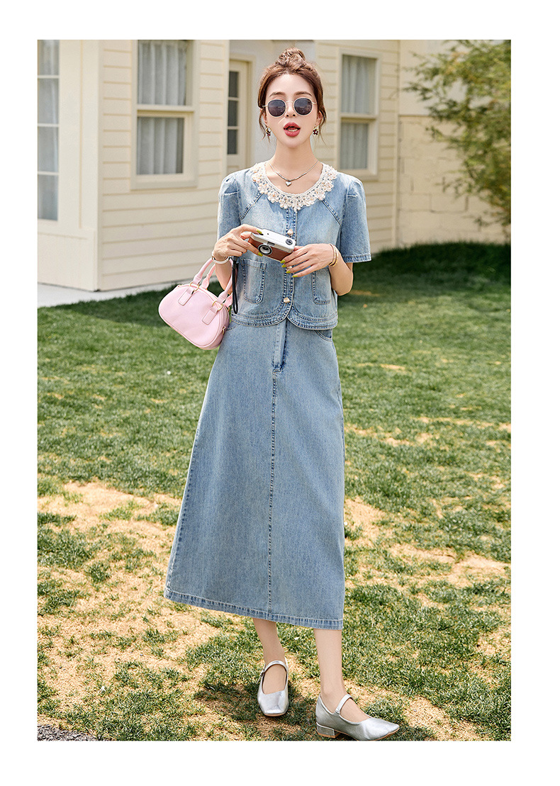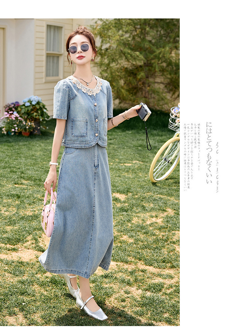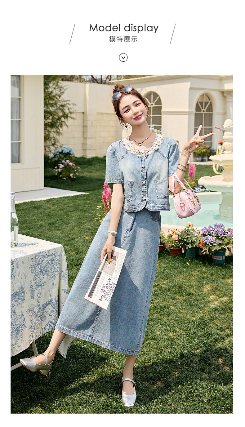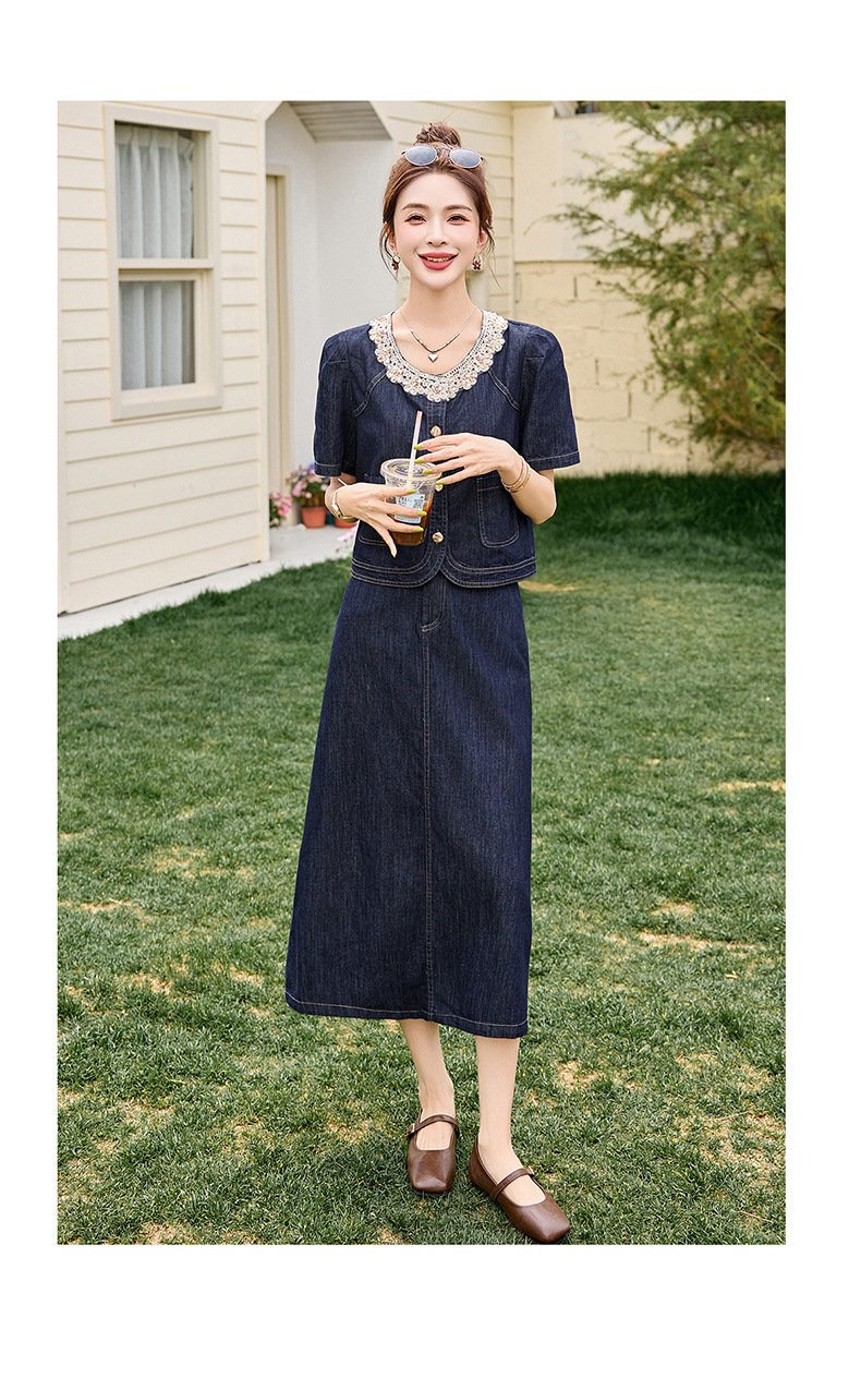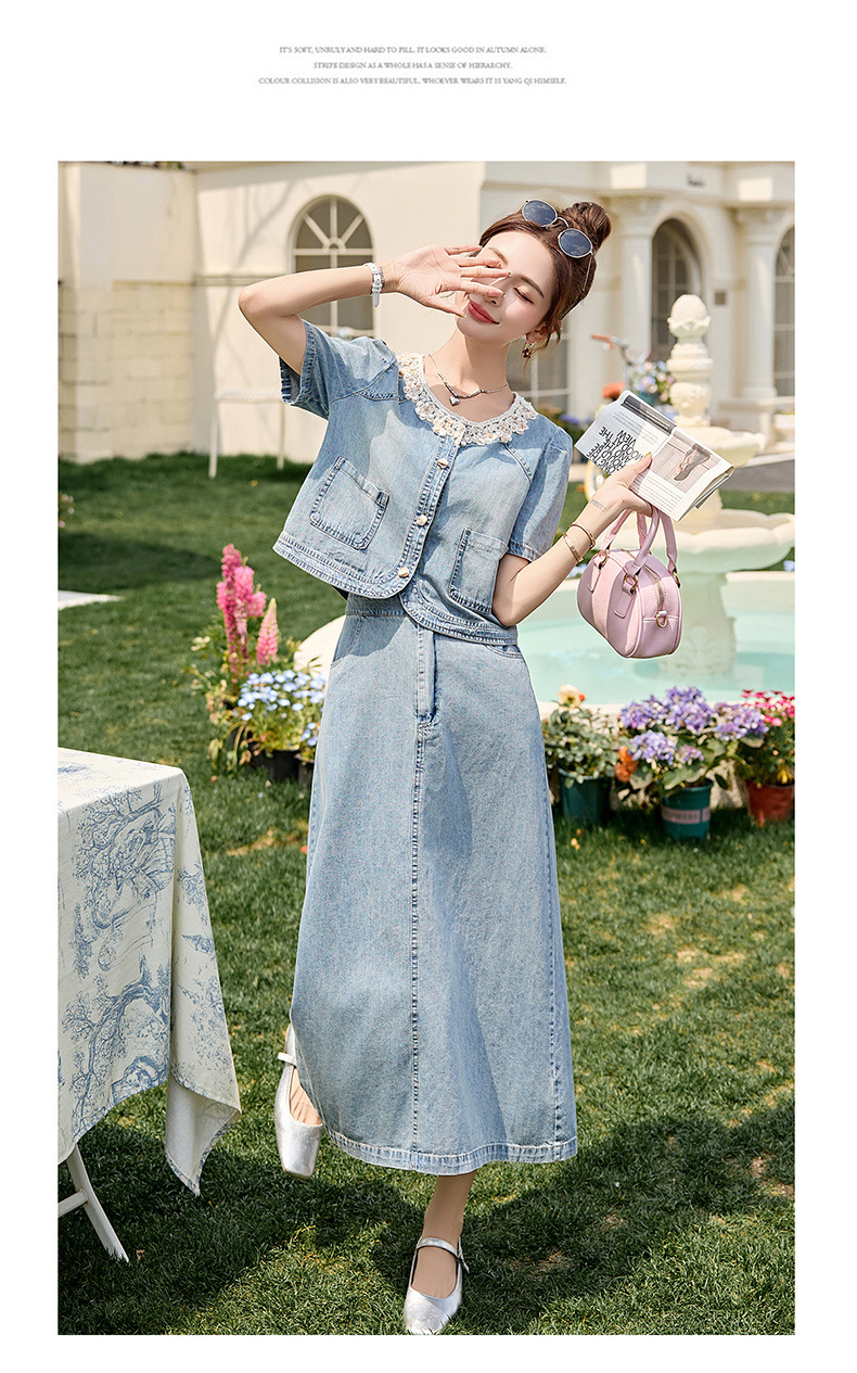 时尚甜美拼接牛仔套装两件套HRYZ2072