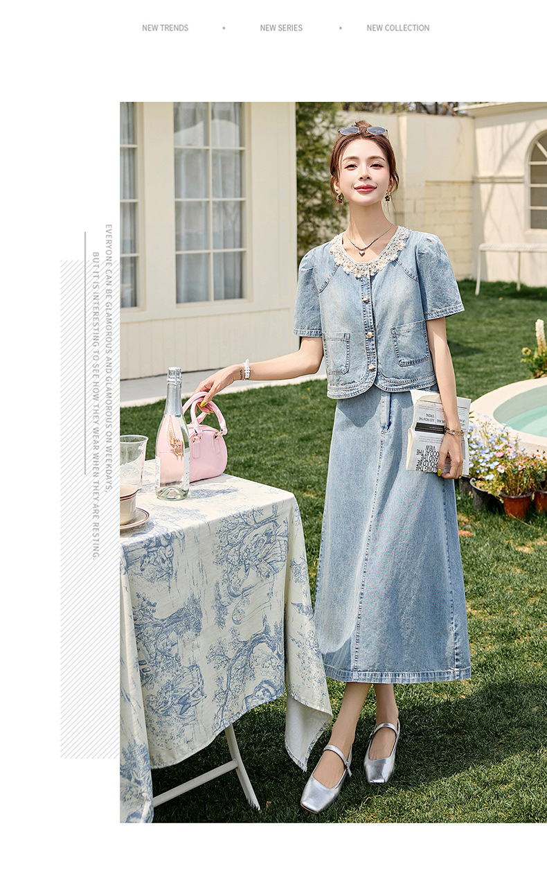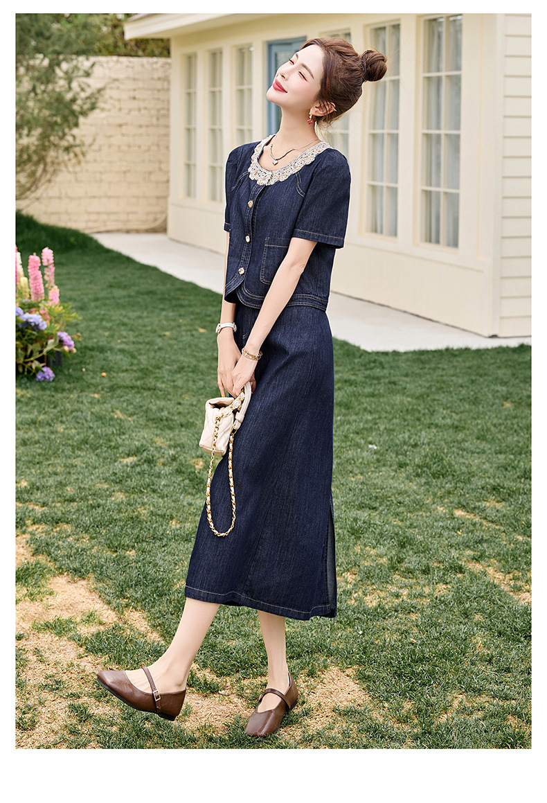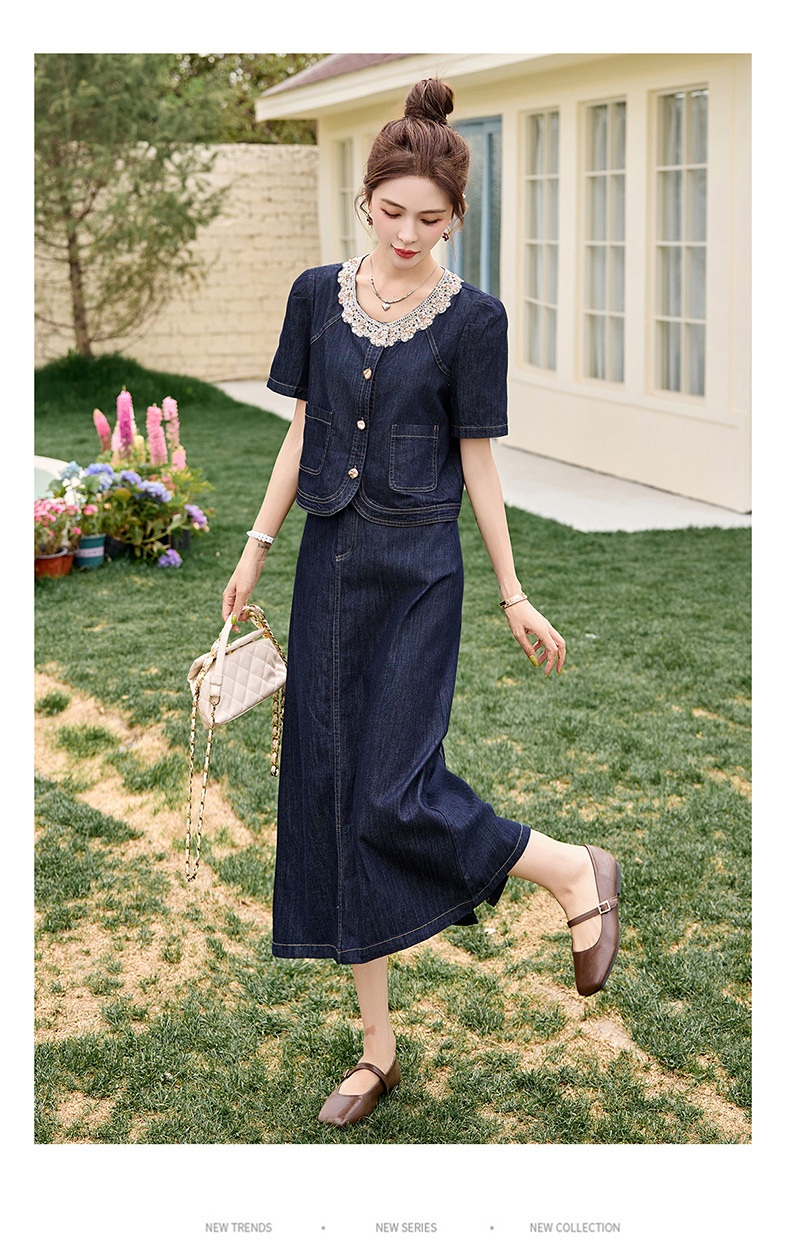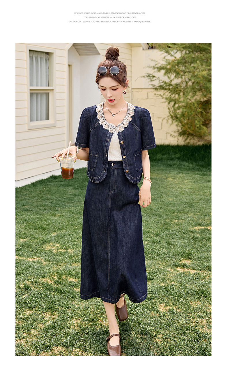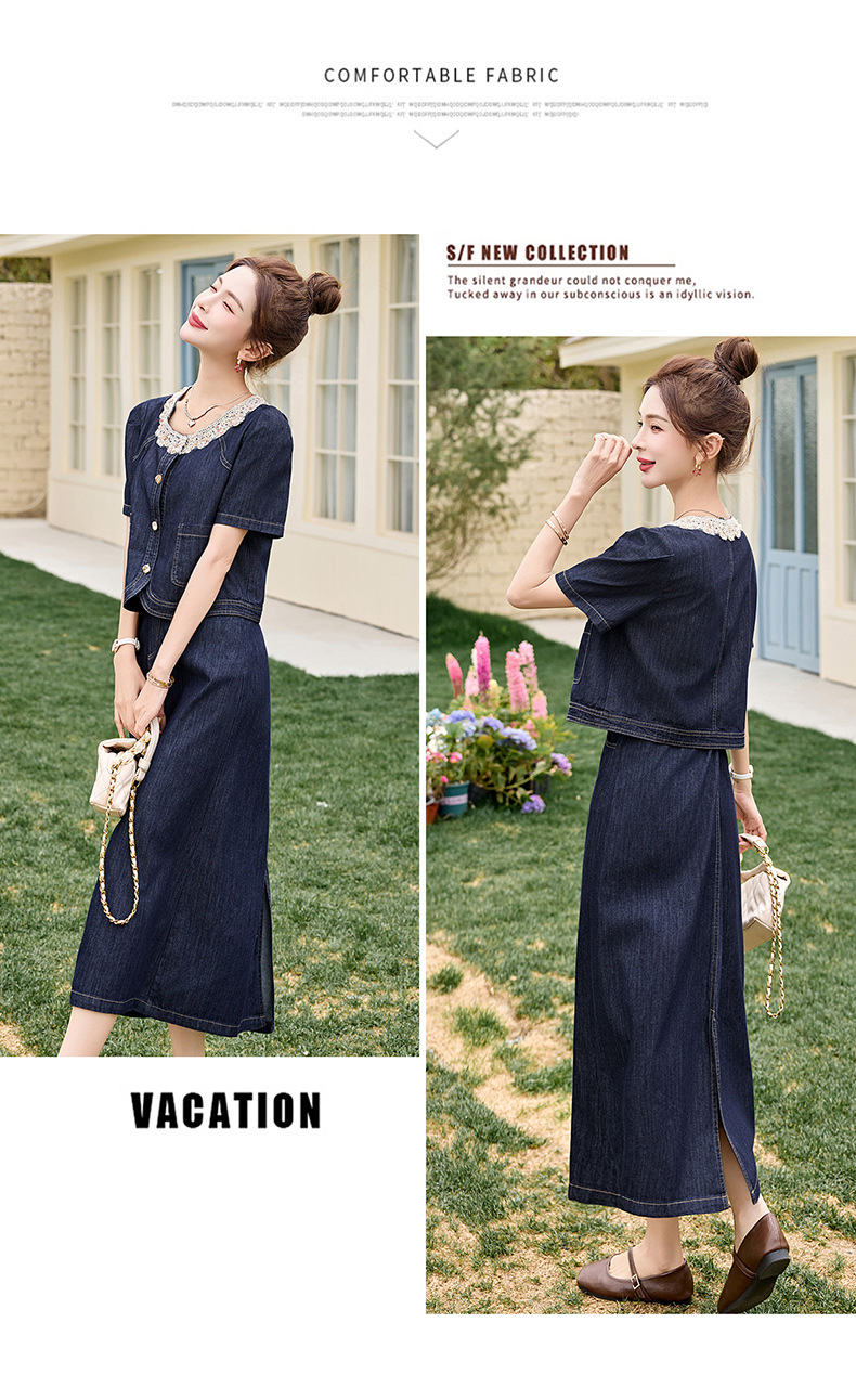 时尚甜美拼接牛仔套装两件套HRYZ2072