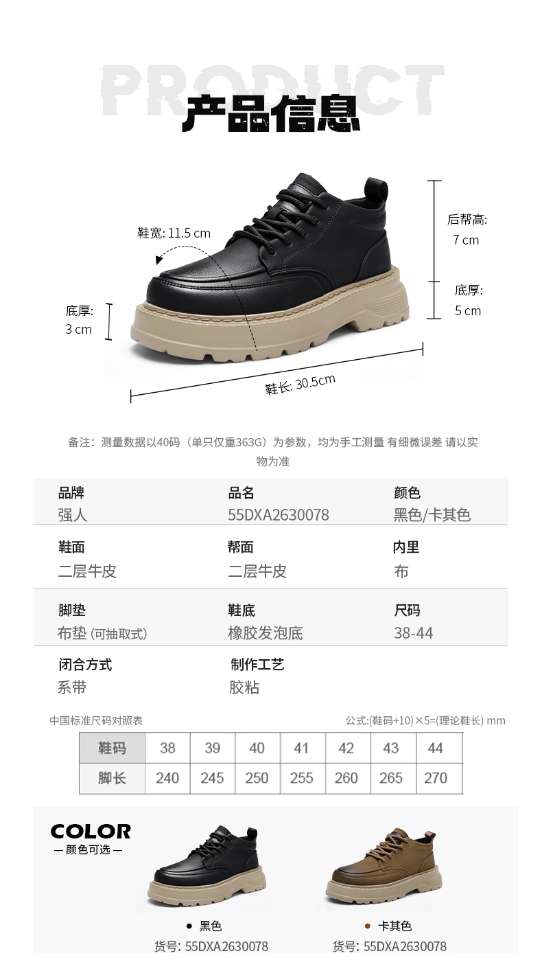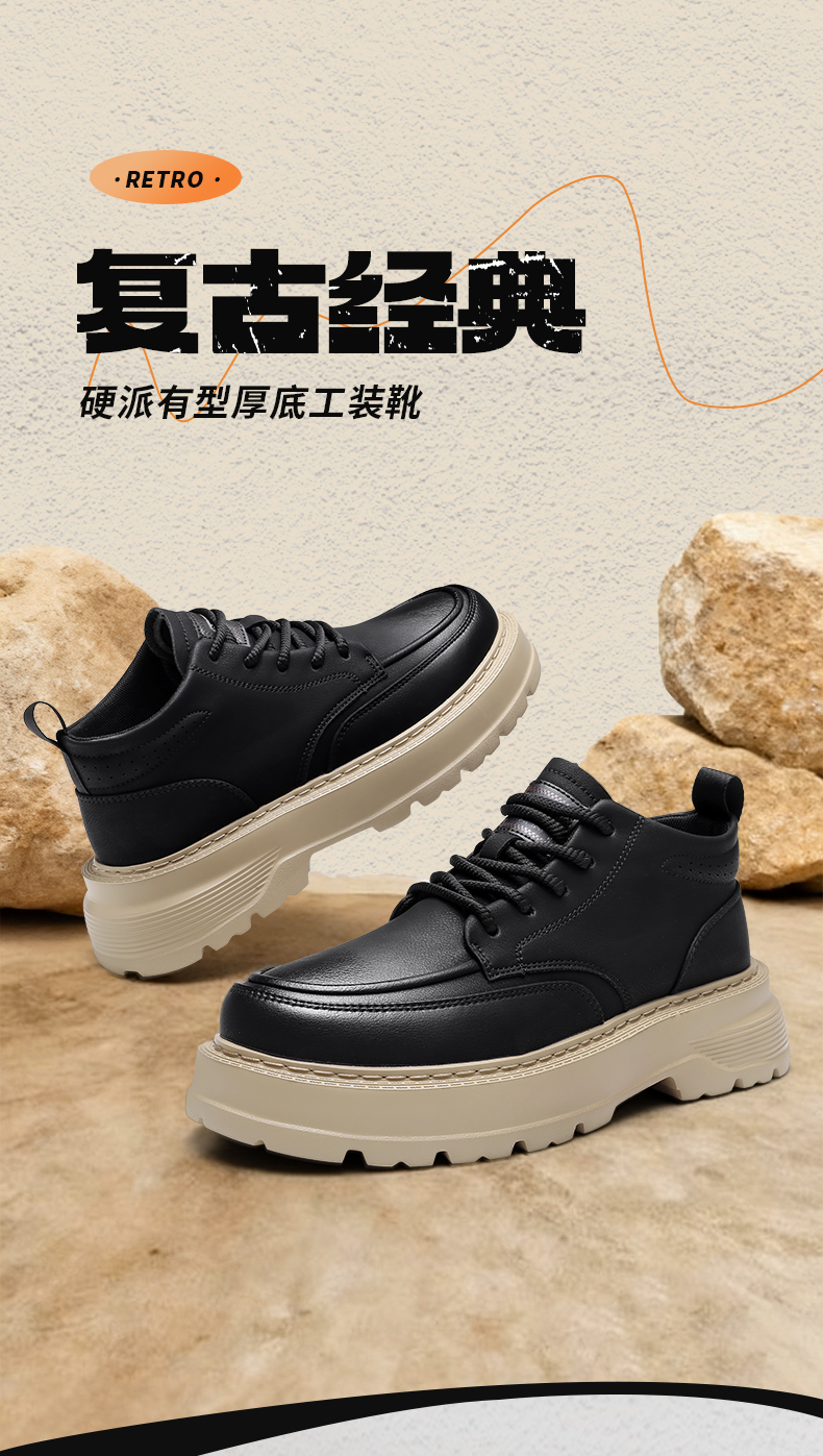 强人3515男靴新款厚底工装鞋户外高帮鞋耐磨复古时尚百搭马丁靴