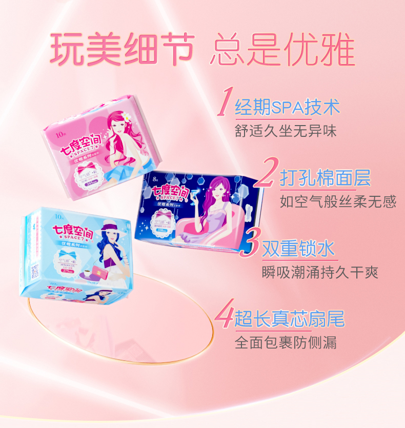 七度空间(SPACE7) 优雅系列 丝柔棉层超薄日用卫生巾245mm*32片