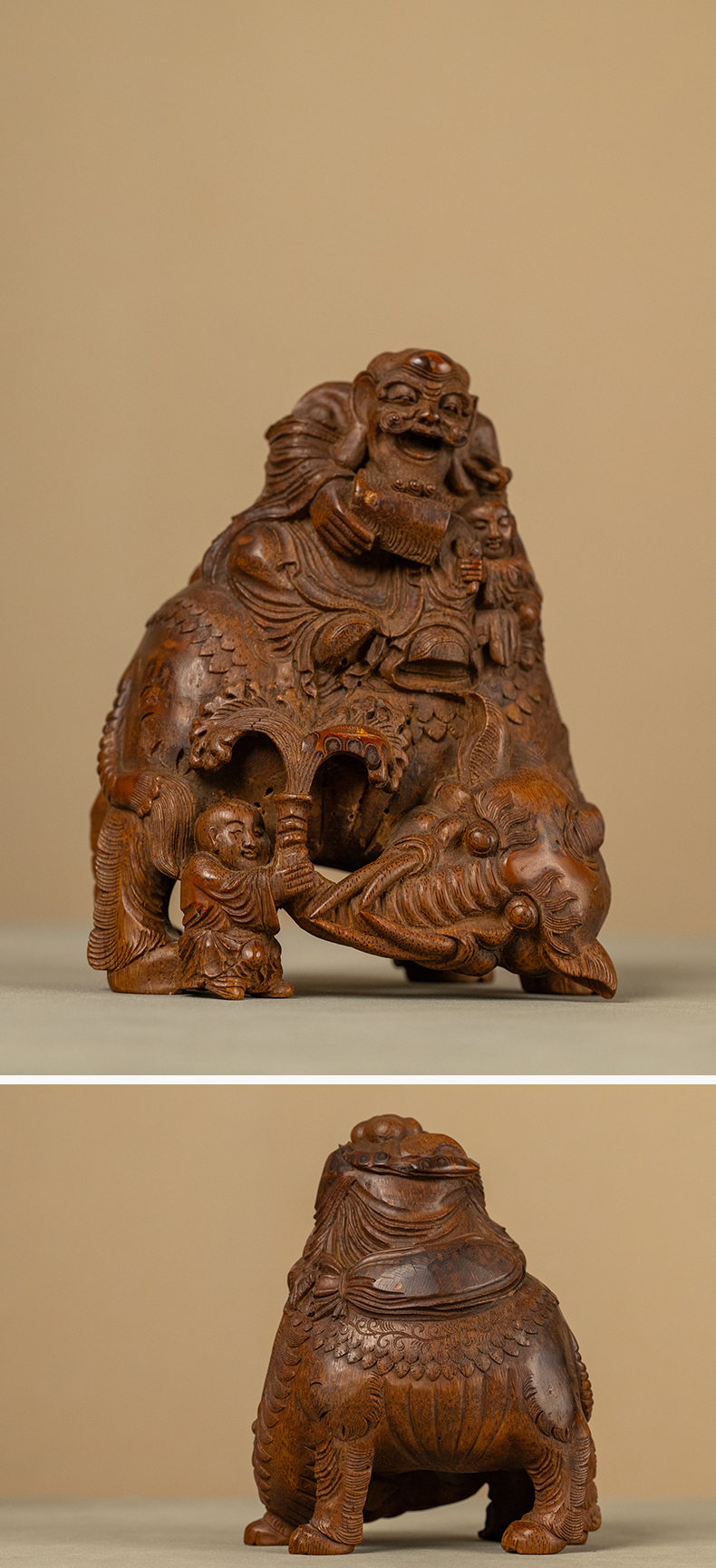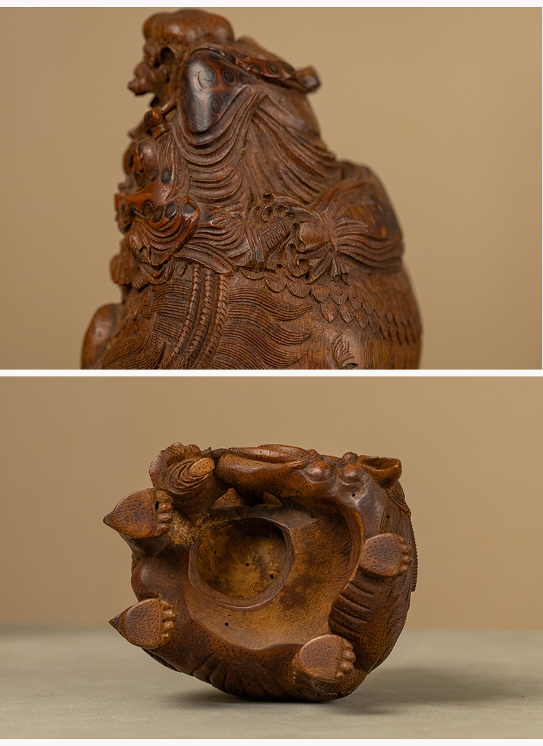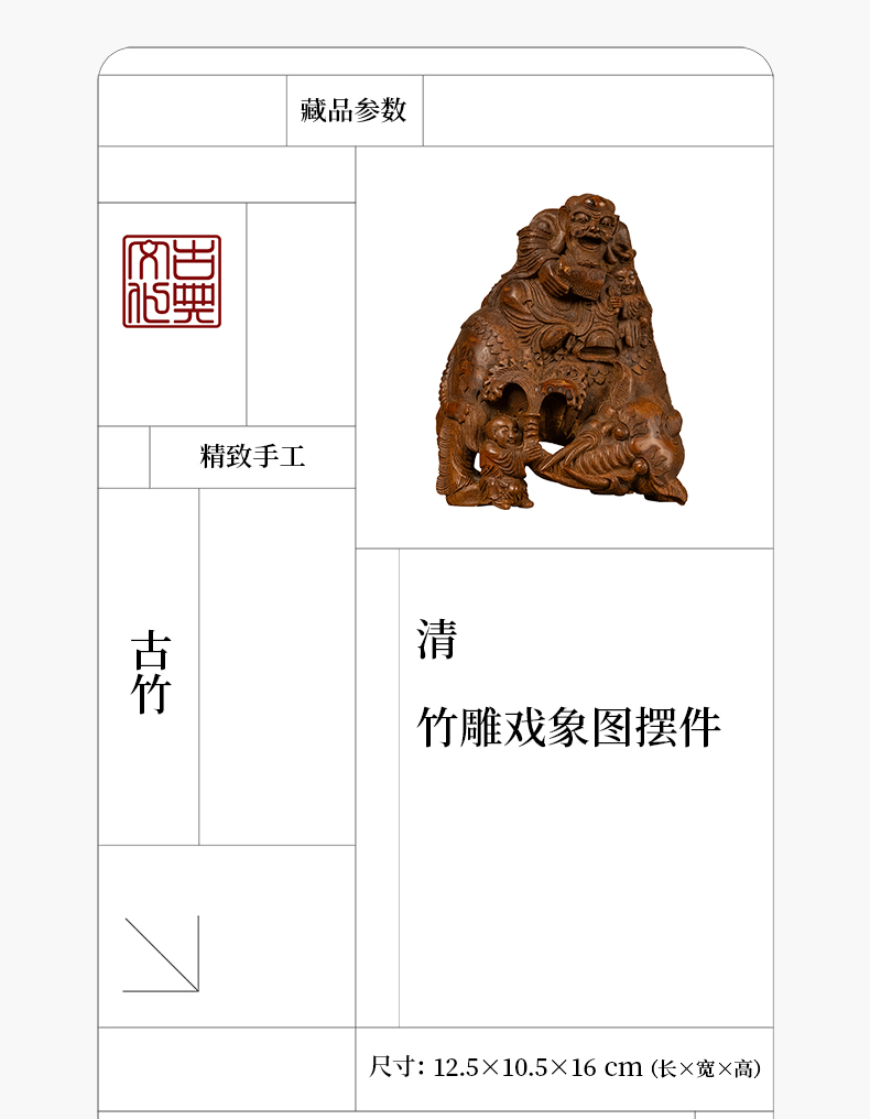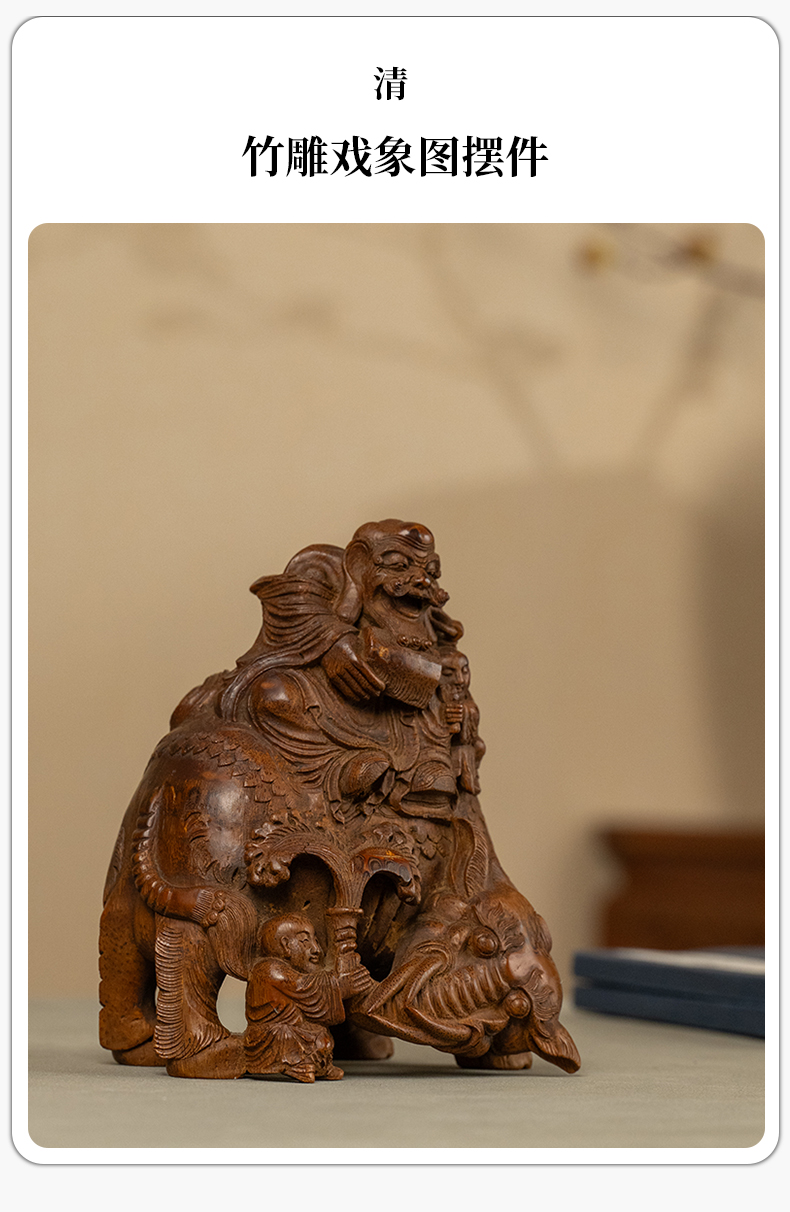 清 竹雕戏象图摆件