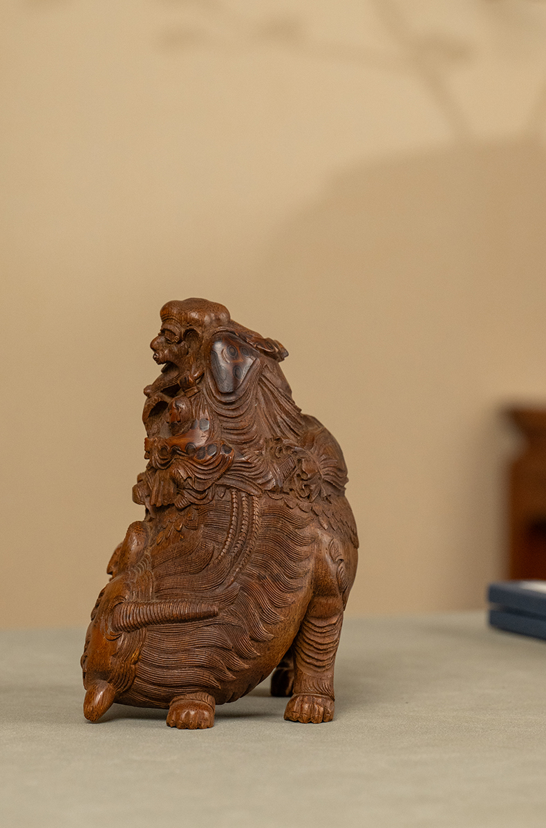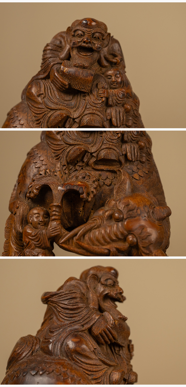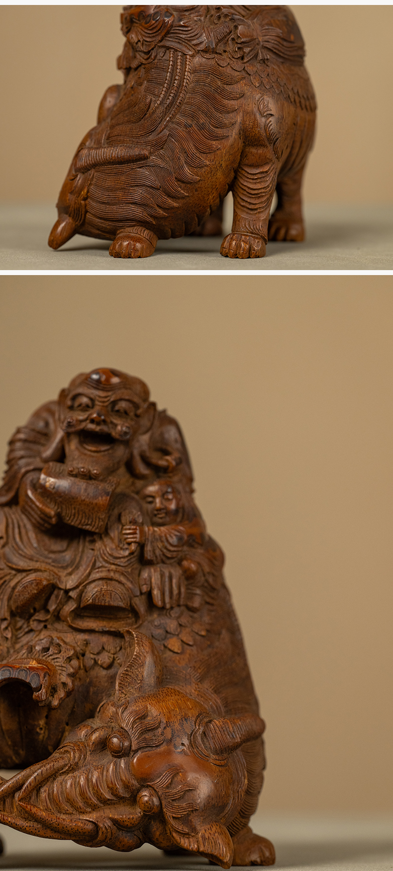 清 竹雕戏象图摆件