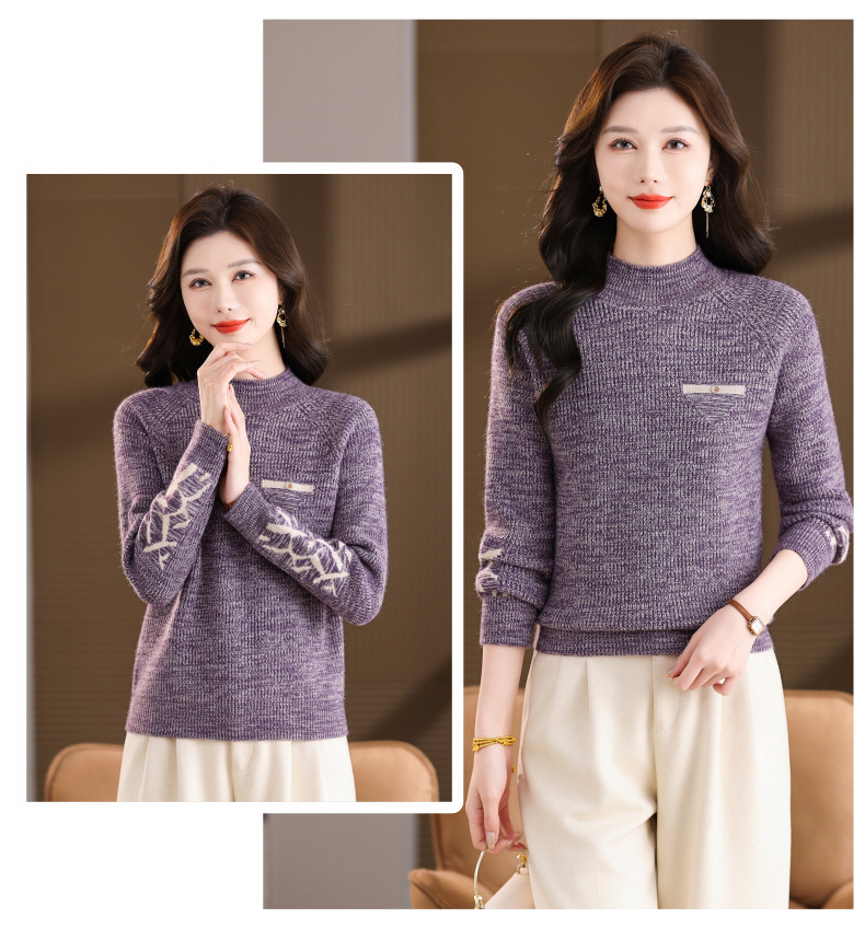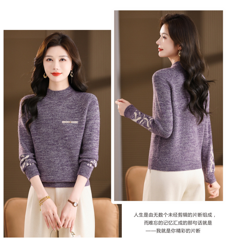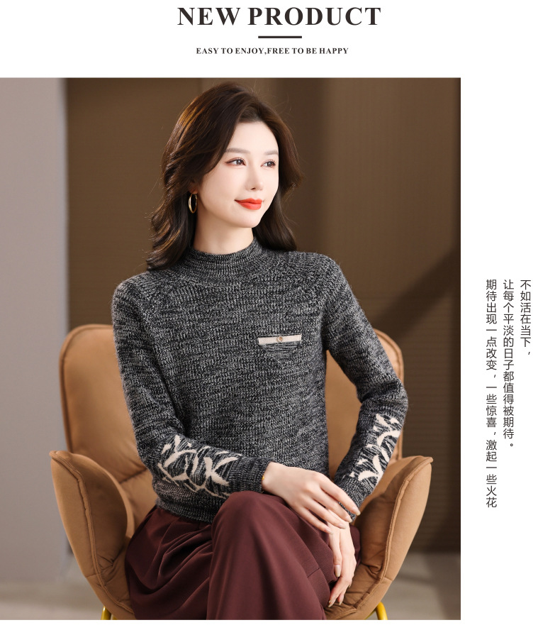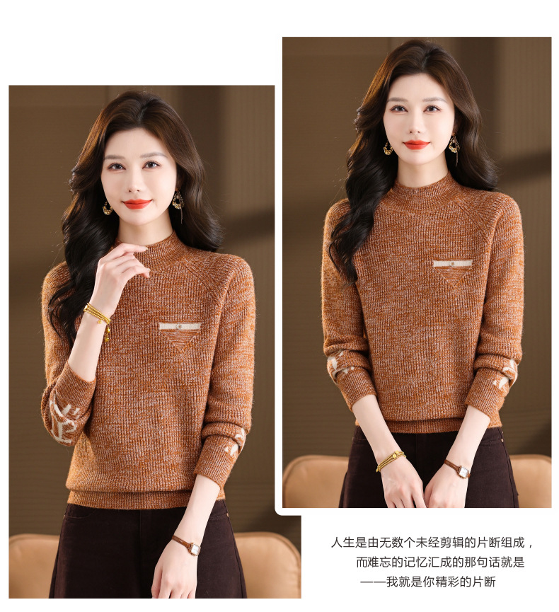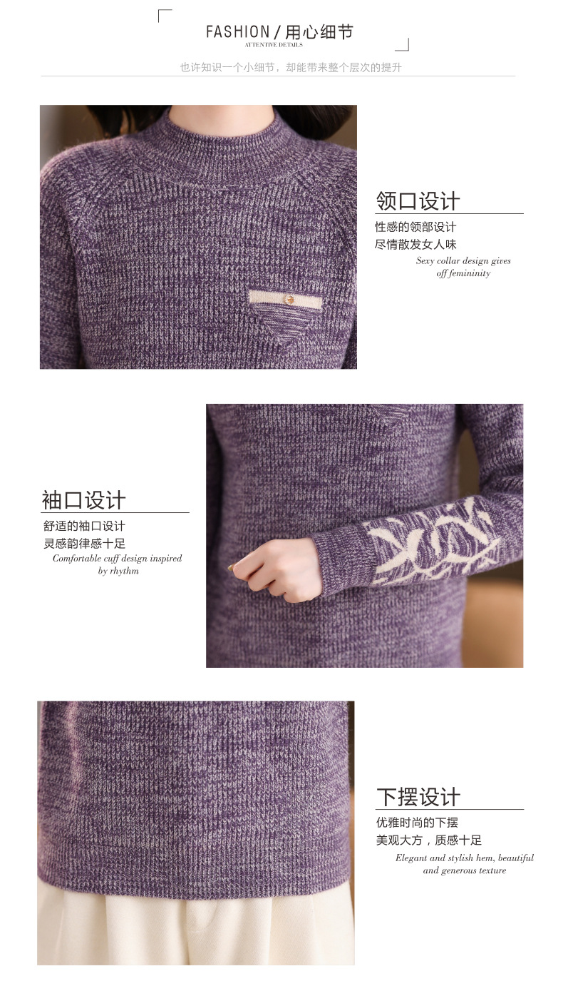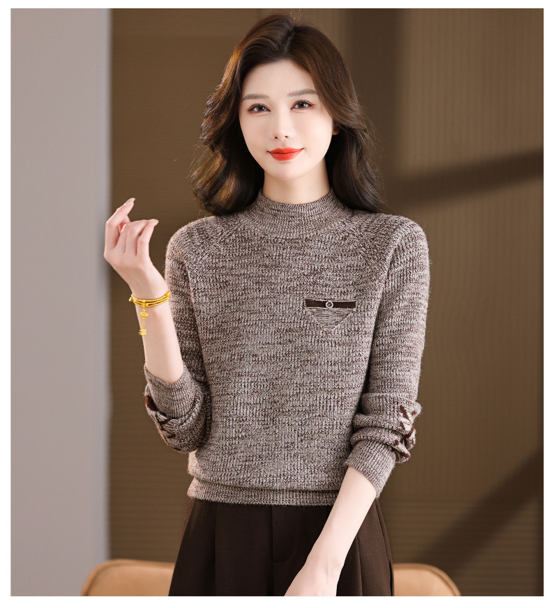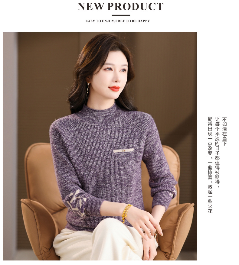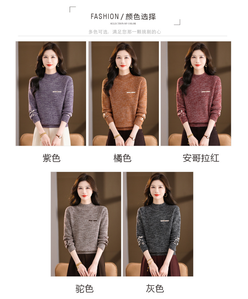 CC2025秋冬新款混色半高领毛衣女针织拼接口袋长袖显瘦内搭短款上衣