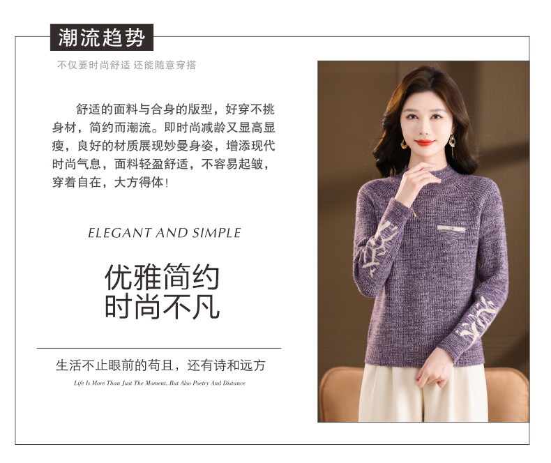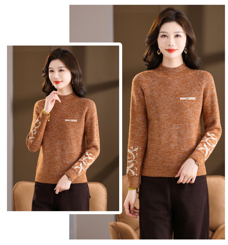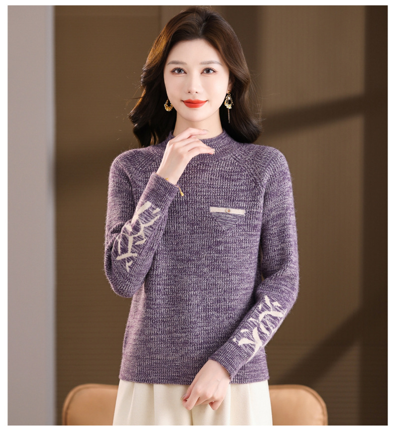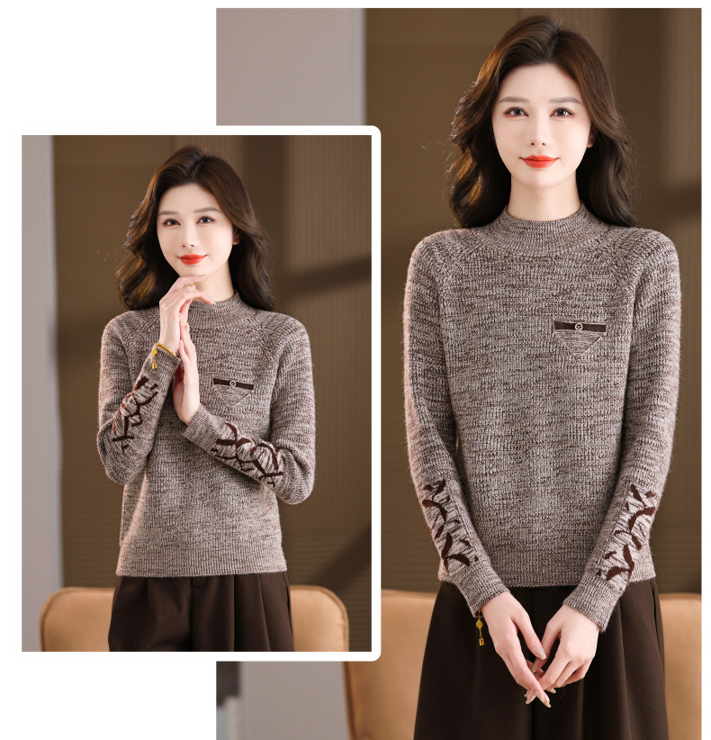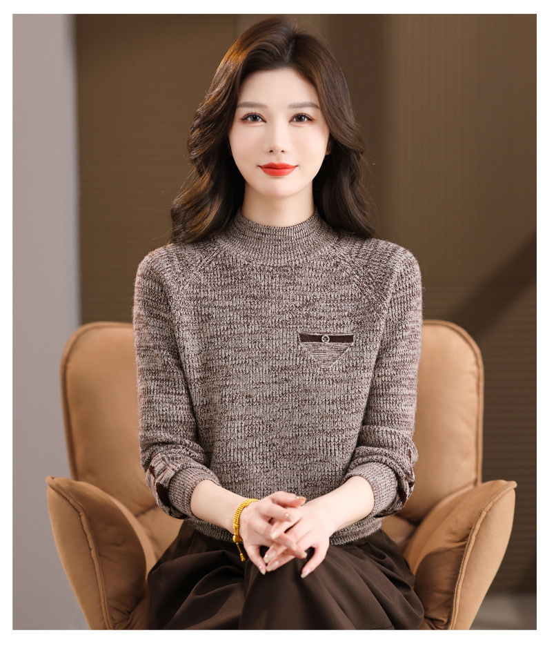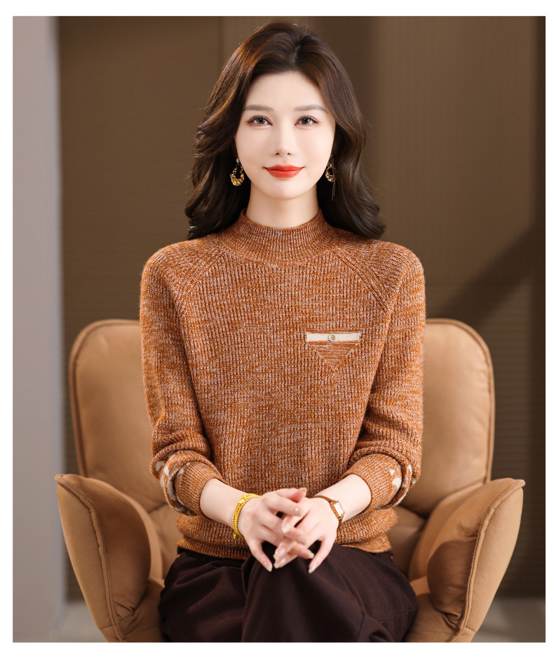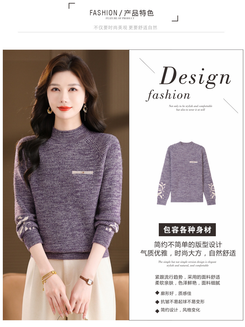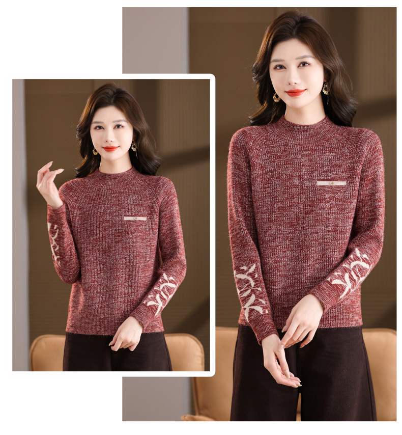 CC2025秋冬新款混色半高领毛衣女针织拼接口袋长袖显瘦内搭短款上衣