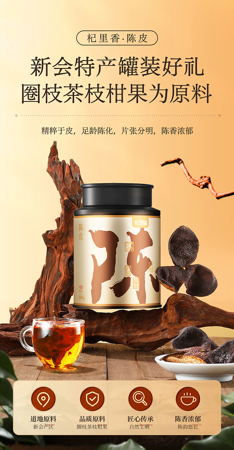杞里香 广东老陈皮100g罐 泡水、煲汤、熬粥皆可;陈皮礼盒杞里香200g(2罐)礼盒、80g铁罐陈皮(赠礼袋)送礼有面15