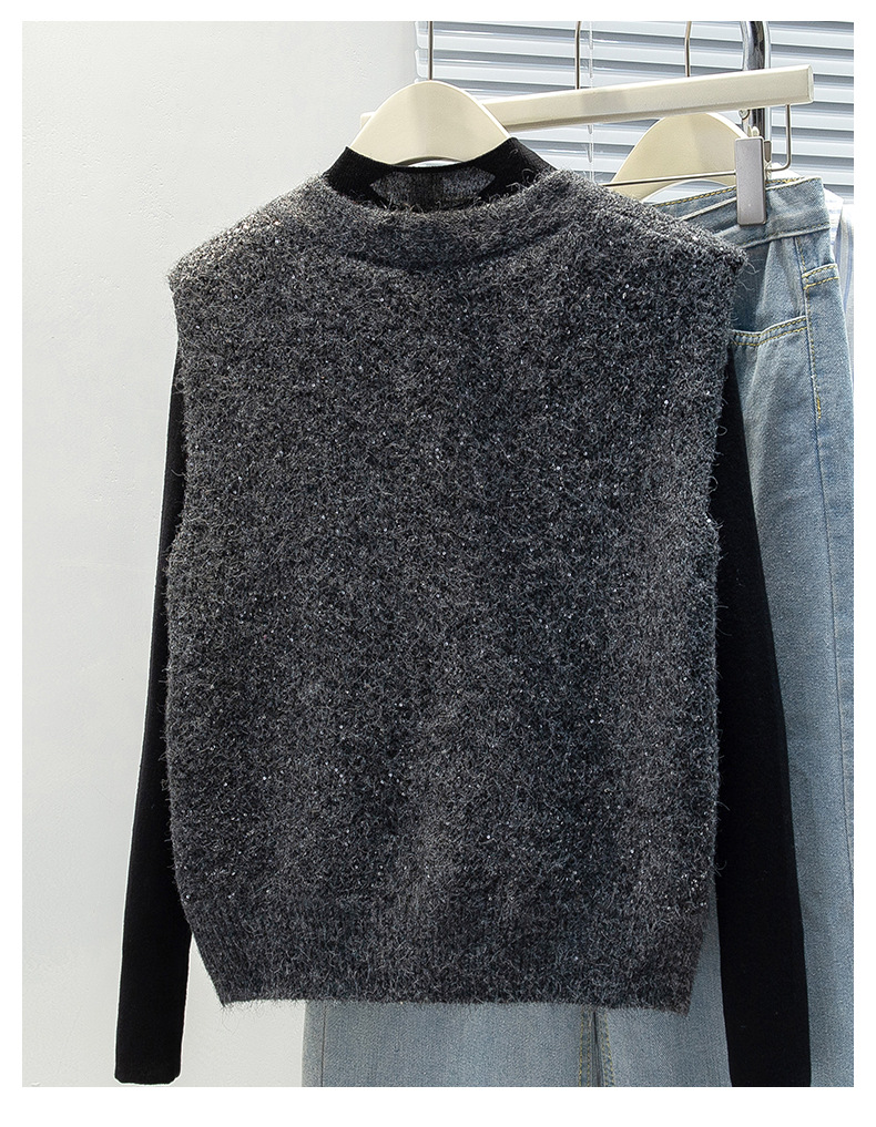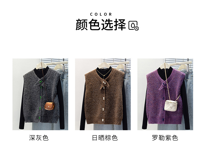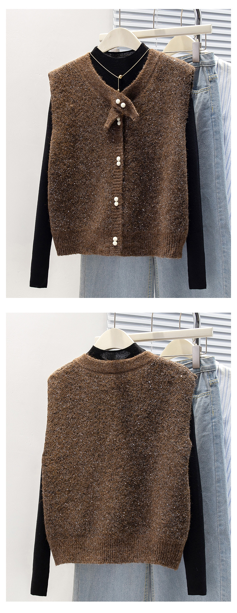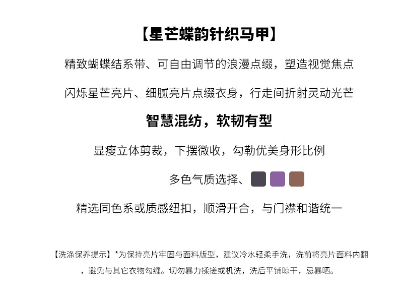 丁摩 蝴蝶领亮闪闪马甲女韩版秋冬新款针织坎肩时髦叠穿款5ZF-510024